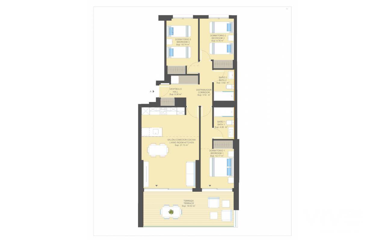 WOHNUNG IN EINER LUXURIÖSEN WOHNANLAGE AM MEER Stellen Sie sich einen Ort vor, an dem das Meer und die Natur zu den Protagonisten einer unglaublichen Geschichte werden: Ihrer. Stellen Sie sich eine Umgebung vor, in der Sie Ihrer Fantasie freien Lauf lassen und tausend Abenteuer zu Lande und zu Wasser erleben können. Willkommen in dieser neuen Residenz in Campoamor, dem Haus, in dem Sie das Leben leben können, von dem Sie immer geträumt haben, mit dem schönsten Horizont im Hintergrund: dem Mittelmeer. Eine 3-Schlafzimmer-Wohnung mit einer großen Terrasse, einer mit modernen Geräten ausgestatteten Küche, den exklusivsten Details und Gemeinschaftsbereichen, die für die ganze Familie gedacht sind. In dieser Wohnanlage zu leben bedeutet, das Mittelmeer in jedem Raum des Hauses zu spüren. Die Wohnanlage befindet sich im höchstgelegenen Teil von Campoamor, ganz in der Nähe des Strandes La Glea und des Yachthafens. Ein zeitgenössisches und modernes architektonisches Design, das exklusive Wohnungen mit hochwertigen Ausstattungen bietet, die Geräumigkeit und neue Technologien in Bezug auf Effizienz und Konstruktion miteinander verbinden. Die imposante Fassade, die Ausgewogenheit ihrer Formen, der Garten im Inneren und die riesige Terrasse der Wohnungen machen diese Wohnanlage zu einer schönen architektonischen Referenz im Mittelmeerraum. Sie werden Grünflächen zum Spazierengehen und Sonnenbaden genießen können. Zu den Gemeinschaftsbereichen gehören ein großer beheizter Innenpool, ein Chill-out-Bereich auf der Dachterrasse, ein Sportbereich für Bewegung im Freien, ein Fitnessraum, ein Kinderspielplatz und ein großer Außenpool sowie ein kleinerer Pool für Kinder und ein Gourmet-Raum. Und weil wir wissen, dass Sie gerne mit dem Fahrrad in der Gegend unterwegs sind, haben wir einen Raum für die Unterbringung von Fahrrädern vorgesehen. Die Bewohner kommen in den Genuss einer erstklassigen Wohnanlage, die für Menschen mit eingeschränkter Mobilität vollständig zugänglich ist und die Garantie bietet, in einem von privaten Sicherheitsdiensten geschützten Bereich zu wohnen. Nur 1000 m vom Strand und eine kurze Fahrt von Einkaufszentren, berühmten Golfplätzen, Restaurants mit exquisiter Gastronomie und Großstädten wie Alicante und Murcia entfernt. Und das alles in einem Klima mit 300 Sonnentagen im Jahr und einer durchschnittlichen Jahrestemperatur von fast 20ºC. Der perfekte Ort für Ihren Urlaub oder für Ihren ständigen Wohnsitz. *