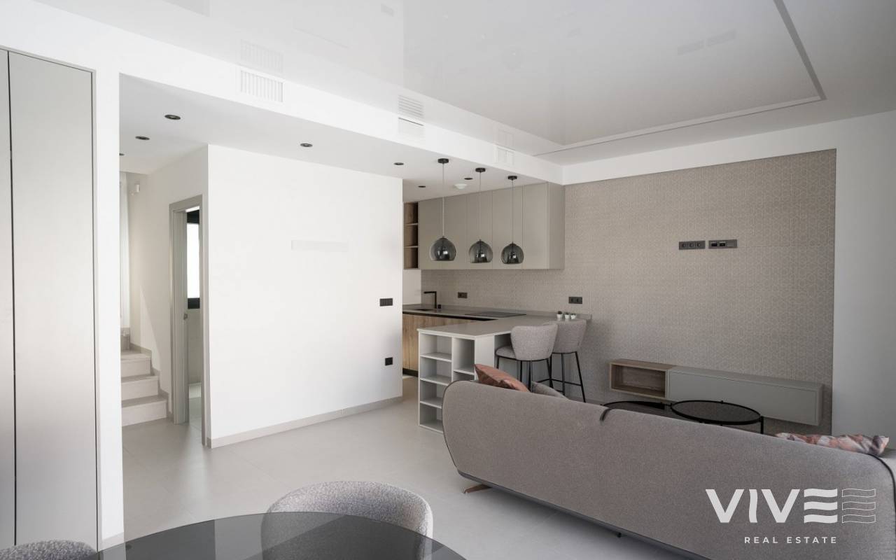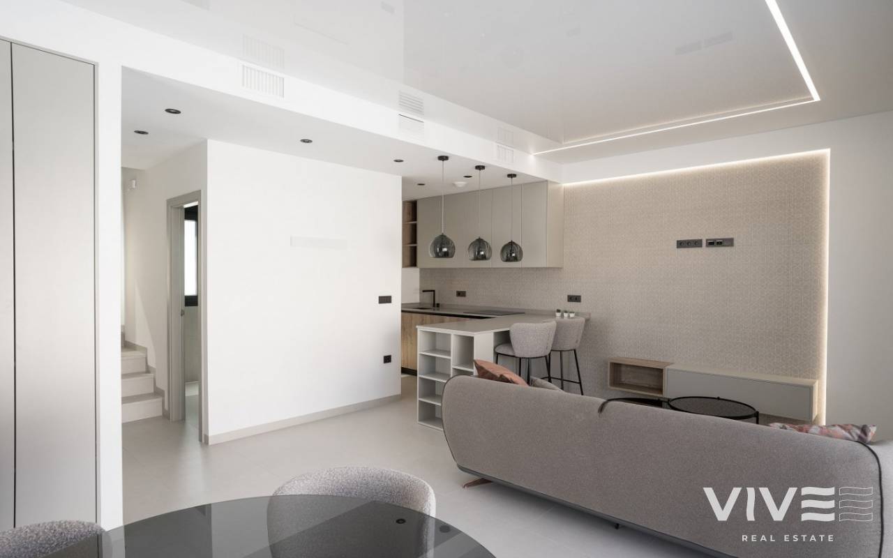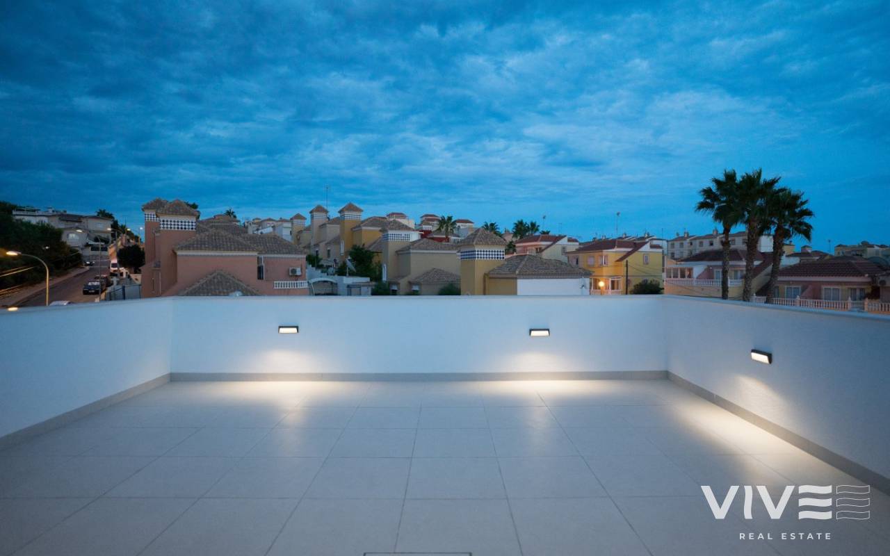 MODERNE VILLA MIT ALLEN ANNEHMLICHKEITEN Wohnanlage entworfen, um mehr als 300 Sonnentage im Jahr zu genießen, hat die Villa ein unabhängiges Grundstück, Parkplatz, Schwimmbad und offene Solarium. Die Häuser werden unter Verwendung hochwertiger Materialien und moderner Bautechnologien entworfen, sowohl bei der Ausstattung als auch bei der Installation aller Systeme im Haus. Vorinstallation von Klimaanlagen, Heizung und Aerothermie, CCTV und Domotiksystem. Drei Schlafzimmer (fünf Schlafzimmer optional), drei Bäder (vier Bäder optional), Wohnzimmer mit offener Küche. Die Gesamtfläche der Außenterrassen und Balkone umfasst eine große Sonnenterrasse mit spektakulärer Aussicht von 74,82 m² bis 93,47 m². Optional besteht die Möglichkeit, ein Untergeschoss von ca. 50,27 m² mit Fenstern, Tageslicht und Belüftung auszubauen. Die Wohnanlage befindet sich nur wenige Minuten von den Stränden von Campoamor und La Zenia entfernt, in einem konsolidierten Gebiet namens "El Galan" - Eagles `Nest, ein privilegierter Ort, wo internationale Familien wohnen: Engländer und Schotten, Norweger und Niederländer, Belgier und Spanier und mehr.... Die Lage ist unschlagbar: Sie befindet sich im Zentrum eines Gebiets mit entwickelter Infrastruktur, umgeben von 4 europaweit anerkannten Golfplätzen. Außerdem gibt es zwei Einkaufszentren in nur zwei Kilometern Entfernung: "La Zenia Boulevard" und "La Fuente" mit vielen Restaurants, Geschäften, Supermärkten und Bars. Besonders erwähnenswert ist die Nähe von "El Limonar", einer englisch-spanischen internationalen Schule, die von der NABSS (National Association of British Schools in Spain) anerkannt ist und in der Kinder von 3-18 Jahren verschiedener Nationalitäten lernen.