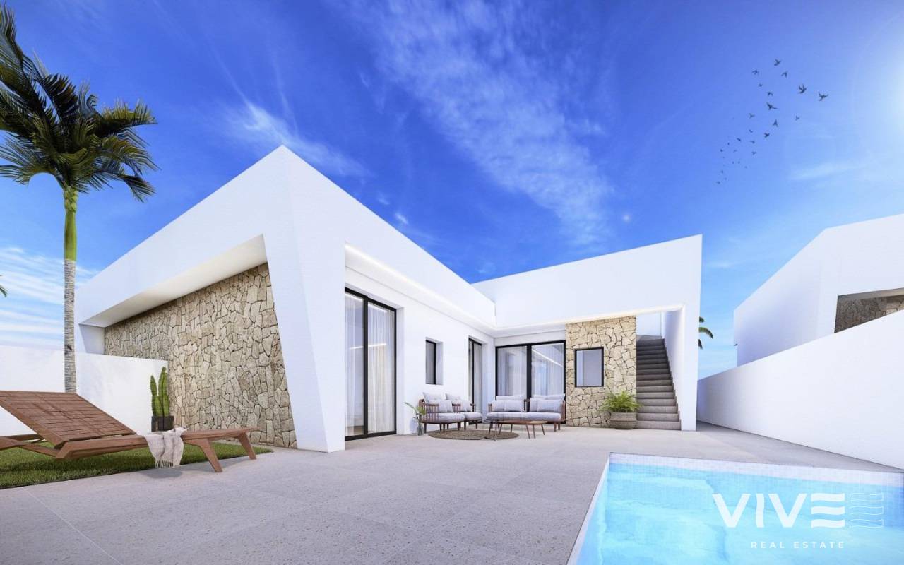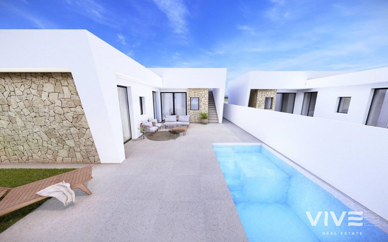 NEU GEBAUTE DOPPELHAUSHÄLFTEN IN ROLDAN Neubau von Villen mit 3 Schlafzimmern, Parkplätzen auf der Vorderseite, Steinmauern, privatem Swimmingpool auf der Rückseite, großer Dachterrasse und einem Abstellraum in Roldan, Torre-Pacheco. Die Villen sind auf einer Ebene mit erhöhter Decke in der Küche entworfen, jede Villa verfügt über Wrap-around-Terrasse / Sonne Zonen im Erdgeschoss und eine große private Sonnenterrasse im ersten Stock zu genießen Stunden der Sonne, das ganze Jahr über. 3 Schlafzimmer (Hauptschlafzimmer en-suite) und ein separates Familienbadezimmer... entworfen im zeitgenössischen "Öko"-Stil und mit einem offenen Konzept, bestehend aus einer Einbauküche und einem Wohn-Esszimmer, einem Abstellraum auf der Vorderseite und einem privaten Sommerterrassenbereich. Die Villen verfügen über einen privaten Swimmingpool auf der Rückseite mit Außendusche, Solarium, Terrassenbereiche, voll ausgestattete Küche und Bäder mit LED-Spiegeln, gefütterte Kleiderschränke mit Schubladen, Innen- und Außenbeleuchtung, vorinstallierte Klimaanlage. Abgewinkelte Wände und Steinverkleidungen an der Vorderseite und im Treppenhaus machen diese Villa zu einem echten Hingucker mit Stil. Die Anlage befindet sich in einem Wohngebiet von Roldan, umgeben von Dienstleistungen, Parks, Sportanlagen, zwei Golfplätzen und nur 12 Minuten von den herrlichen Stränden des Mittelmeers und des Mar Menor entfernt. Es handelt sich um ein ausgewähltes Projekt mit nur 20 modernen einstöckigen Villen, die alle über großzügige Grundstücke mit privatem Swimmingpool und Dachterrasse verfügen. Roldan selbst ist eine traditionelle Stadt mit allen lokalen Annehmlichkeiten, die Sie benötigen, einschließlich Supermärkte, Restaurants, Bars, Gesundheitsklinik, Apotheke, Polizeistation, Tankstelle, Mechaniker, Zahnärzte, Ärzte und mehr. Die nahegelegenen Golfplätze von La Torre und Terrazas sind leicht zu erreichen, der Flughafen Corvera ist 15 Minuten entfernt und die Strände des Mar Menor sind nur 20 Minuten Fahrt entfernt.