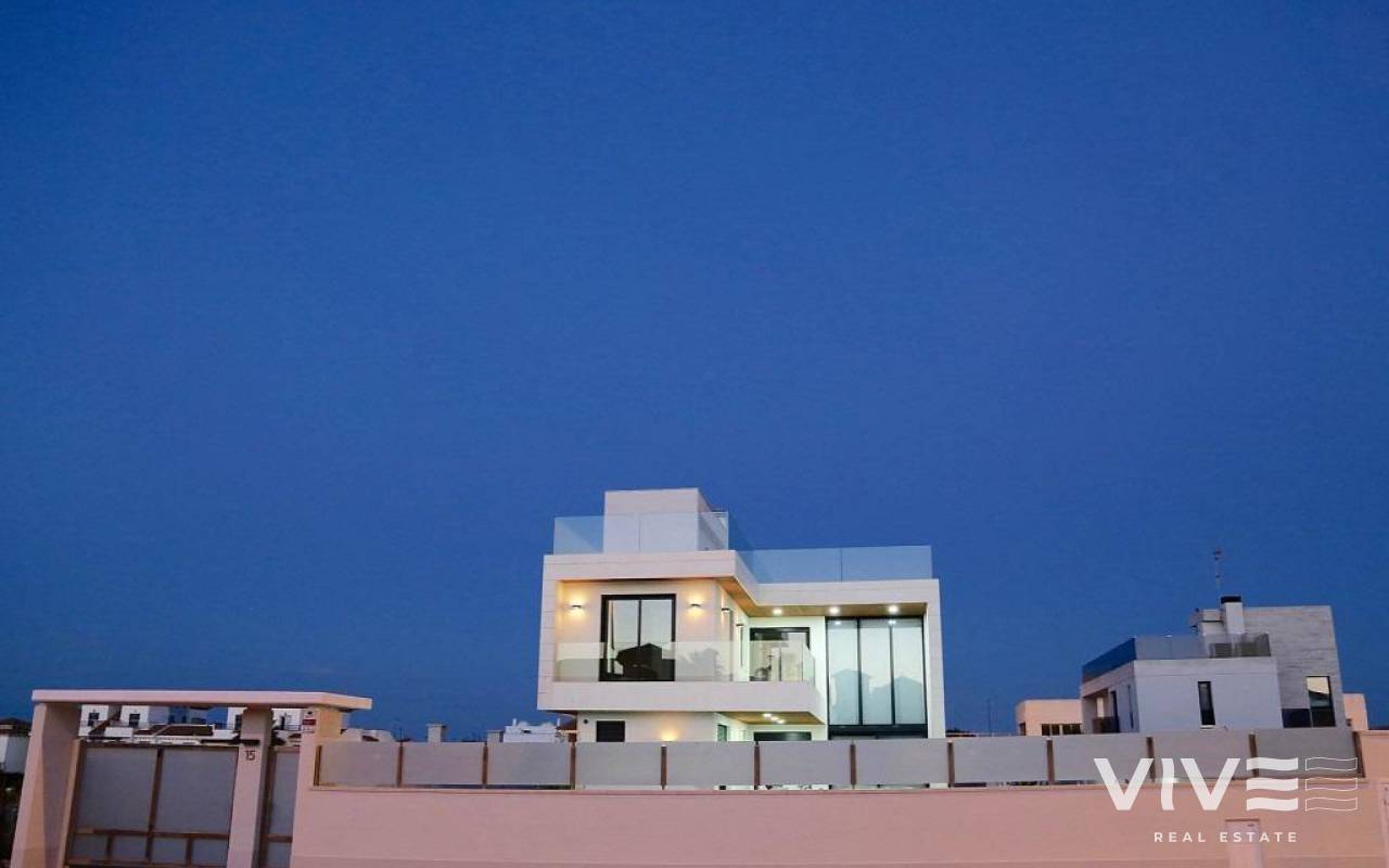 NEU GEBAUTE VILLEN IN CAMPOAMOR Wunderschön gestaltete, moderne Neubauvillen im beliebten Badeort Campoamor an der Orihuela Costa. Die Villen bieten einen luxuriösen Lebensstil, von der wunderschönen Gartenanlage und dem Poolbereich bis hin zur voll ausgestatteten Küche mit hochwertigen Elektrogeräten. Sie haben viele Optionen bei der Ausstattung der Villen, wie z.B. Bodenbeläge, Fliesen in Küche und Bad, Küchenschränke, Fenster und vieles mehr. Sie haben nicht nur die Flexibilität, die Oberflächen im Inneren der Immobilie zu wählen, sondern auch die Freiheit, den Grundriss des Hauses zu bestimmen. Gegen Aufpreis können Sie auch einen Whirlpool oder einen Aufzug in das Haus einbauen lassen. Die Villen befinden sich in einer unschlagbaren Lage, nur 700 m von den mit der blauen Flagge ausgezeichneten Stränden von Campoamor an der Costa Blanca entfernt. Hier haben Sie die Wahl zwischen 3 wunderschönen Sandstränden und einem hübschen Jachthafen, in dem viele schöne Yachten vor Anker liegen. Und nicht zu vergessen, nur eine kurze Autofahrt entfernt finden Sie 4 Meisterschaftsgolfplätze und Resorts, darunter den preisgekrönten "las Colinas" Golf & Country Club. Sie können von allen Einrichtungen profitieren, die diese Gegend zu bieten hat, darunter das Einkaufszentrum La Zenia Boulevard, internationale Restaurants, Sportzentren, Schulen, Gesundheitszentren, ein Krankenhaus und eine Busverbindung. Campoamor ist ein sehr gut angebundener Ort, 45 Minuten vom Flughafen Murcia Corvera und 35 Minuten vom internationalen Flughafen Alicante-Elche entfernt, mit einer schnellen Anbindung an die Autobahn.