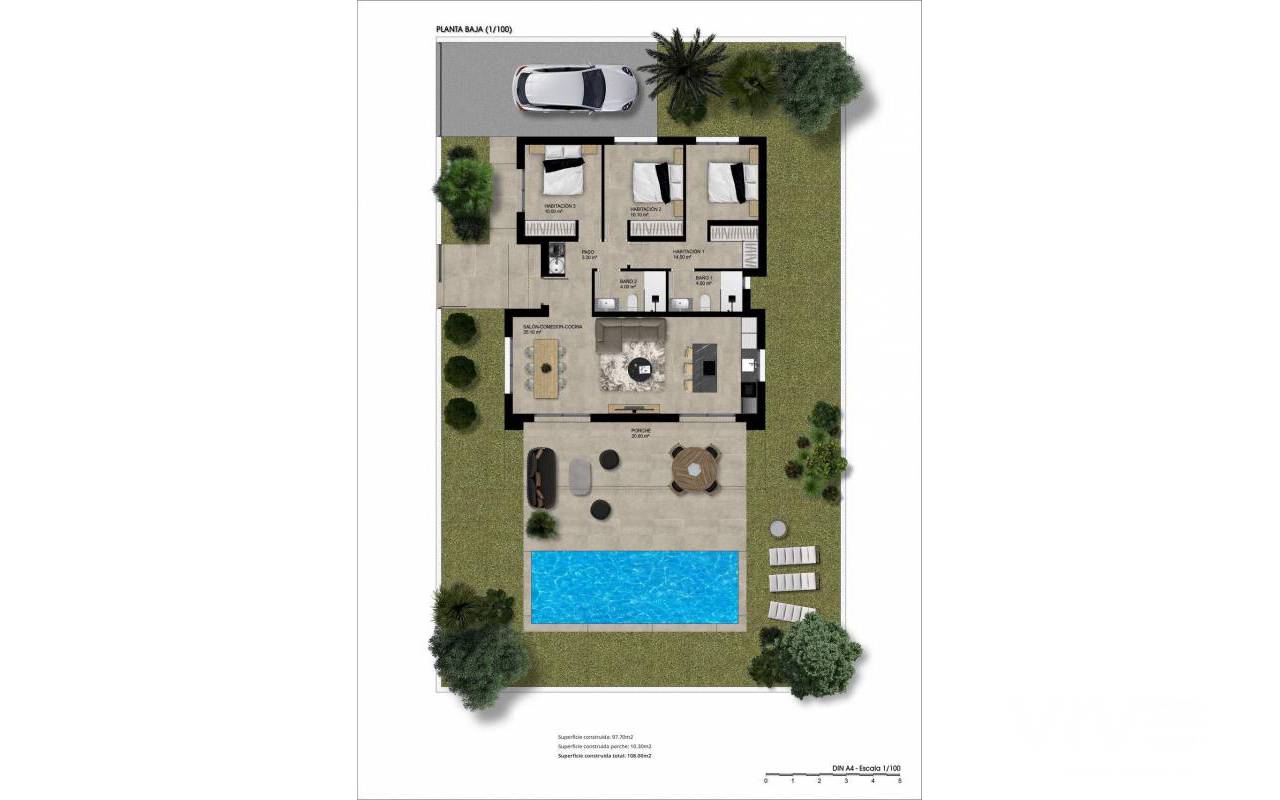 NEUE VILLEN MIT POOL IN HONDON DE LAS NIEVES Entdecken Sie die Eleganz und den Komfort dieser wunderschönen freistehenden Villen mit einer Fläche zwischen 108 und 128 m², die Ihnen einen außergewöhnlichen Lebensstil bieten und alle ebenerdig sind. Genießen Sie die Privatsphäre dieser Villa, in der Sie sich in Ihrem eigenen Garten entspannen, eine Oase der Ruhe schaffen oder sich in Ihrem privaten Pool erfrischen können, um die warmen Sommertage zu genießen. Das Anwesen ist in zwei große Bereiche unterteilt: Wohnbereich: Hier finden wir ein geräumiges Wohn-Esszimmer mit offener Küche (Küchenmöbel inklusive), das durch zwei große Fenster mit der großen modernen Veranda verbunden ist, die zum Gartenbereich und zum Pool führt. Als zusätzlicher Raum verfügt die Villa über einen Waschraum, der strategisch günstig in der Aufteilung des Hauses liegt und von jedem Punkt des Hauses aus leicht zu erreichen ist. Ruhebereich: In diesem Bereich befinden sich 3 Schlafzimmer. Das Hauptschlafzimmer verfügt über einen großen begehbaren Kleiderschrank und ein eigenes Bad. Es gibt auch ein zweites Badezimmer für die übrigen Schlafzimmer und den Rest des Hauses. In einer ruhigen Wohnlage gelegen, bietet Ihnen diese Villa die gewünschte Privatsphäre und Ruhe, während Sie gleichzeitig nur wenige Minuten von Dienstleistungen, Geschäften, Supermärkten und Restaurants entfernt sind. Es ist die perfekte Balance zwischen ruhiger Abgeschiedenheit und dem Komfort des modernen Lebens. In dieser Urbanisation in Hondón de las Nieves ist jeder Tag eine Gelegenheit, sich mit der Welt zu verbinden. Hondón de las Nieves ist eine Gemeinde in der Autonomen Gemeinschaft Valencia, Spanien. Sie liegt im Südwesten der Provinz Alicante, in der Region Vinalopó Medio. Die Strände und der Flughafen von Alicante sind nur 30 Autominuten entfernt.
