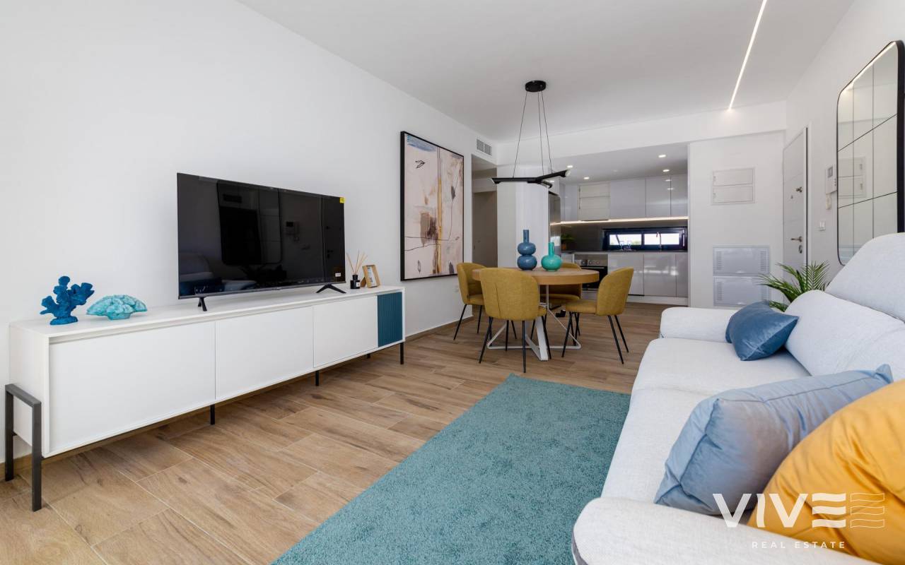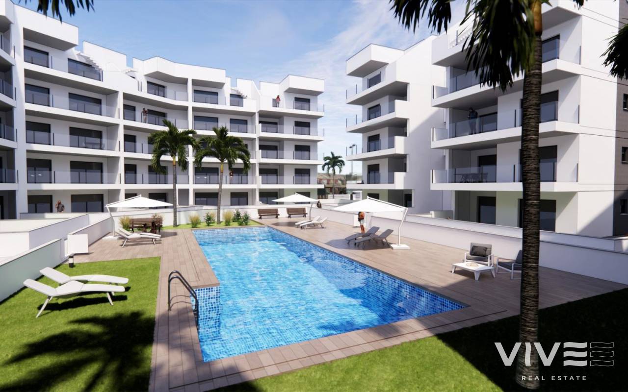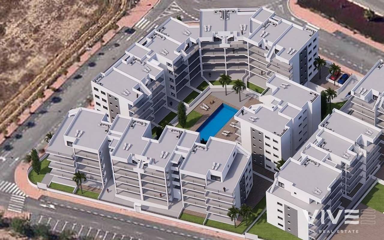 NEU GEBAUTE WOHNANLAGE IN EURO RODA Neubau-Wohnanlage mit 3 Blöcken, großen Grünflächen, Schwimmbädern und Spielplätzen. Gelegen in der schönen und entspannenden Gegend von Euro Roda, in der Nähe von Los Alcazares. 78 moderne und geräumige Wohnungen mit 2 oder 3 Schlafzimmern und 2 Bädern, Wohnzimmer mit offener Küche und Tiefgaragenstellplatz inklusive. Die Wohnungen im Erdgeschoss verfügen über eine große Terrasse und einen Garten, die Wohnungen im mittleren Stockwerk über große Terrassen und die Wohnungen im Dachgeschoss über Terrassen und ein privates Solarium. Die Costa Cálida ist ein Ort, an dem Sie die Sonne, den Strand und die Golfplätze genießen können. Euro Roda befindet sich in der Nähe von Los Alcázares, in der Region Murcia in der Nähe der Strände des Mar Menor. Es hat alle notwendigen Dienstleistungen zu Fuß erreichbar, Freizeitbereiche, Gesundheitszentrum, Einkaufsmöglichkeiten und den Strand. Die Golfplätze sind nur wenige Minuten mit dem Auto entfernt, die Stadt Cartagena weniger als 20 Minuten mit dem Auto und 40 km vom Flughafen Murcia, so dass ein breites kulturelles, gastronomisches und sportliches Angebot in Reichweite ist.