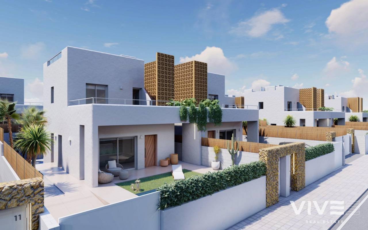 NEU GEBAUTE VILLEN IN PILAR DE LA HORADADA Neubauvillen in Pilar de la Horadada. Das Innere der Villen besteht aus 3 Schlafzimmern, 3 Bädern en suite, großes offenes Wohnzimmer mit Küche alle auf zwei Etagen. Die Außenanlagen verfügen über einen großen Garten mit privatem Swimmingpool und Parkplatz. New Build Villen, wo Sie die besten mediterranen Stil angepasst an modernes Design zu finden. Die Wohnanlage besteht aus 17 Villen in Pilar de la Horadada, umgeben von allen Dienstleistungen, die Sie benötigen, und nur wenige Minuten vom Strand entfernt. Pilar de la Horadada ist ein typisch spanisches Dorf im südlichsten Teil der Costa Blanca. In der großen Hauptstraße gibt es Supermärkte, viele Geschäfte, Restaurants und Bars sowie einige schöne Plätze. Die schönen Strände von Torre de la Horadada und Mil Palmeras mit feinem Sand und Promenade sind nur 5 Minuten entfernt. In Pilar de la Horadada gibt es außerdem ein gut ausgebautes Rad- und Wanderwegenetz und ein großes Angebot an verschiedenen sportlichen Aktivitäten. Der 18-Loch-Golfplatz Lo Romero ist nur eine kurze Autofahrt vom Ort entfernt. Die Flughäfen von Corvera (Murcia) und Alicante sind 40 bzw. 55 Minuten entfernt.