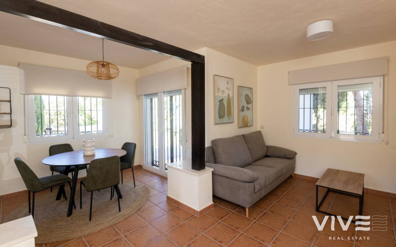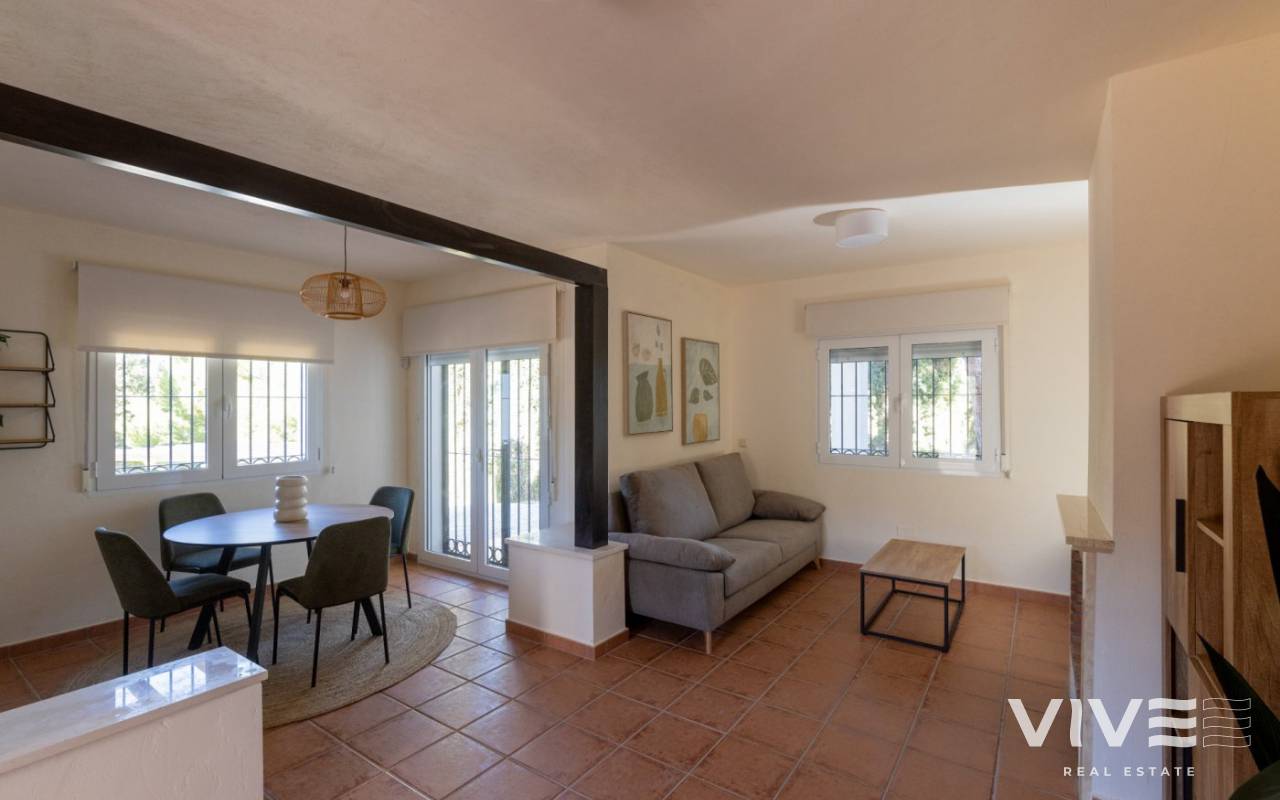 SCHLÜSSELFERTIGE HALB-FREISTEHENDE VILLA IN FUENTE ALAMO, MURCIA Wohnanlage mit Reihenhäusern, freistehenden Villen und Doppelhaushälften in Fuente Álamo, Murcia. Es gibt sieben verschiedene Modelle von Häusern zur Auswahl, die für jeden Geschmack geeignet sind. Rustikales Design, kombiniert mit hochwertigen Materialien und einem Schwerpunkt auf komfortablem Wohnraum, bietet für jeden etwas. Die Bewohner dieser privaten Wohnanlage mit schönen, geräumigen Häusern können auch ihre eigenen Gemeinschaftsgärten und Swimmingpools genießen. Diese ungewöhnlich gestaltete Doppelhaushälfte verfügt über 3 Schlafzimmer und 2 Badezimmer, eine separate Küche, ein Wohnzimmer mit Terrassentüren, die auf die überdachte Veranda und die halb überdachte Dachterrasse führen. Ein privater Pool ist gegen Aufpreis möglich. Fuente Álamo de Murcia ist eine Stadt und Gemeinde in der Region Murcia, Südspanien. Sie befindet sich 22 km nordwestlich von Cartagena und 35 km südwestlich von Murcia. Die Stadt liegt im Becken des Mar Menor, umgeben von den Bergen Algarrobo, Los Gómez, Los Victorias und dem Carrascoy. Das Wasser aus diesen Bergen fließt in die Rambla de Fuente Álamo und von dort in das Mar Menor. Fuente Álamo liegt 30 Minuten vom Flughafen Murcia - Corvera entfernt.