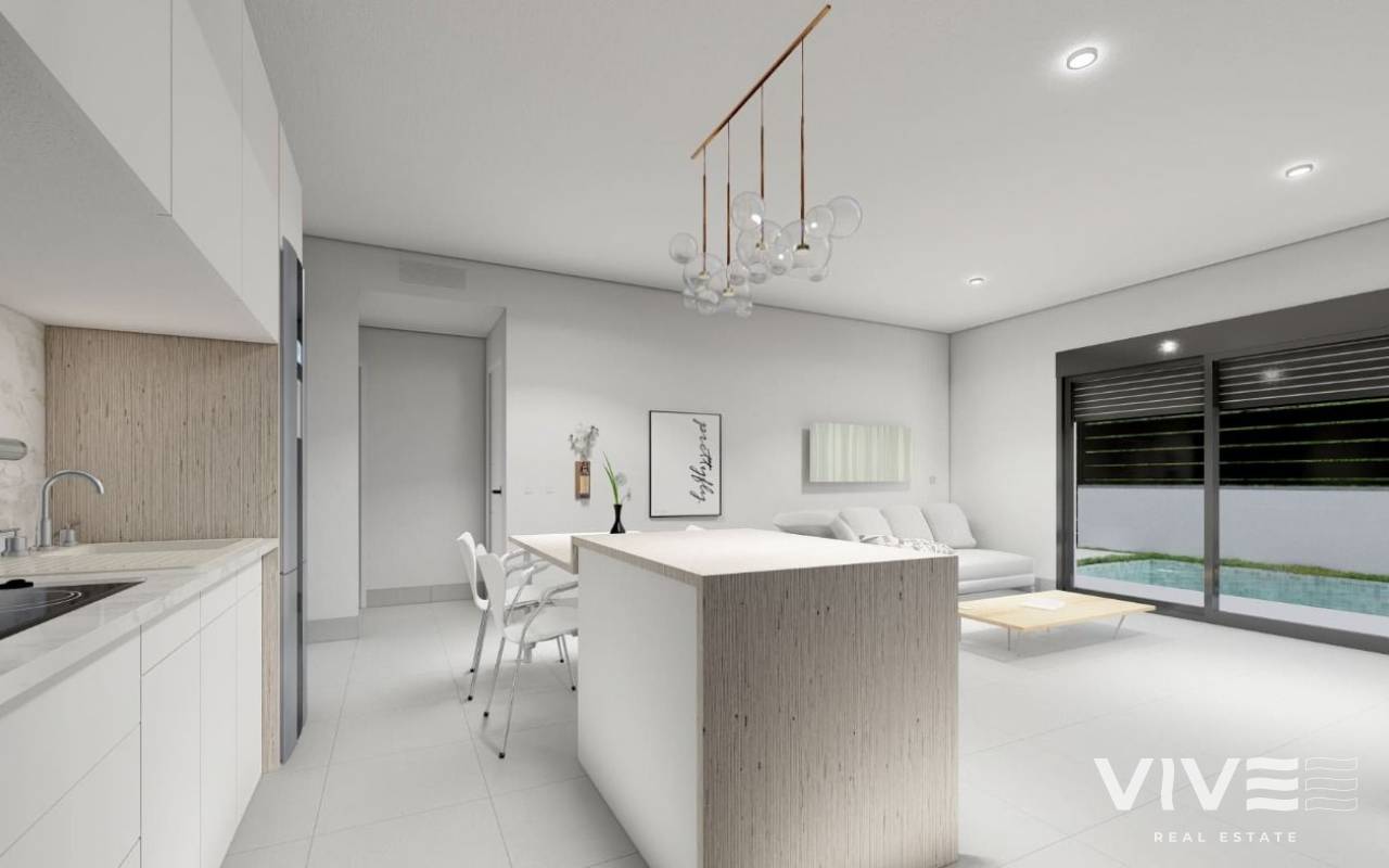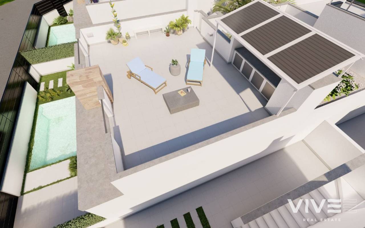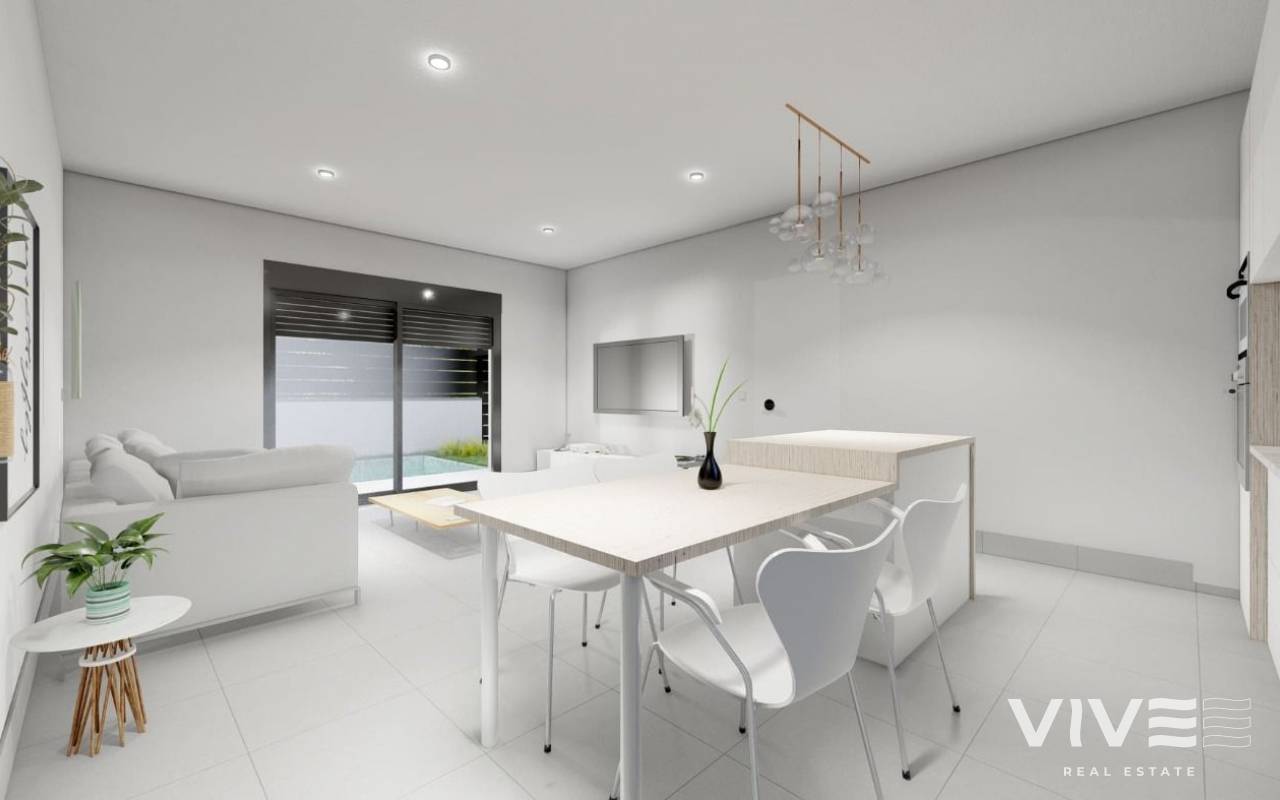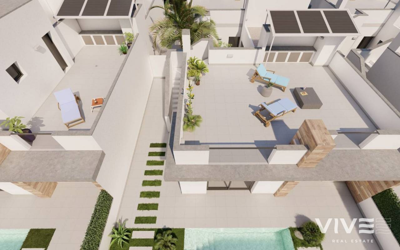 NEU GEBAUTE DOPPELHAUSHÄLFTEN IN ROLDAN Neubau eines Luxuskomplexes mit ein- oder zweistöckigen Doppelhaushälften in Roldan. Sie haben die Wahl zwischen Doppelhaushälften mit 2 Schlafzimmern, 2 Bädern auf einer Etage mit Solarium oder mit 3 Schlafzimmern, 3 Bädern auf zwei Etagen mit großer Terrasse. Auf der obersten Etage, auf der Terrasse oder dem Solarium haben Sie eine Sommerküche, die es Ihnen erlaubt, alle Sonnenstunden zu genießen, jeden Tag des Jahres. Alle Villen haben einen privaten Garten mit Pool und Parkplatz. Die Villen sind in einem zeitgenössischen Stil und mit einem offenen Konzept entworfen, das eine voll ausgestattete Küche und ein Wohn- und Esszimmer umfasst. Die Wohnanlage befindet sich in Roldán (Murcia), in einer bewachten und kontrollierten Anlage. Sie liegt in der Nähe des Strandes, umgeben von Dienstleistungen, Parks, Sportanlagen und mehreren Golfplätzen. Die Immobilie wird den höchsten Standards entsprechen und ist ausgestattet mit: Privates Schwimmbad vorinstalliert für Heizsystem und mit Solardusche. Küche komplett möbliert und ausgestattet mit Backofen, Mikrowelle, Kühlschrank, integrierter Spülmaschine und Dunstabzugshaube. Auch, zentrale Holzinsel. Beleuchtung: LED-Beleuchtung im Inneren des Hauses und im Außenbereich. Gefütterte Kleiderschränke mit Schubladen. Voll ausgestattete Bäder mit hängendem WC, Duschabtrennung, Waschtisch, Spiegel mit Licht und Regendusche. Sommerküche im Solarium. Vorinstallation für eine Kanal-Klimaanlage. Parkplatz auf dem Grundstück. Roldan selbst ist eine traditionelle Stadt mit allen lokalen Annehmlichkeiten, die Sie benötigen, einschließlich Supermärkte, Restaurants, Bars, Gesundheitsklinik, Apotheke, Polizeistation, Tankstelle, Mechaniker, Zahnärzte, Ärzte und mehr. Die nahegelegenen Golfplätze La Torre und Terrazas sind leicht zu erreichen, der Flughafen Corvera ist 15 Minuten entfernt und die Strände des Mar Menor nur 20 Minuten Fahrt.