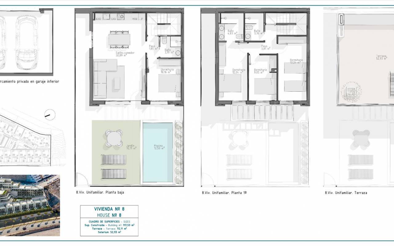 NEU GEBAUTE WOHNANLAGE IN AGUILAS Neubau einer exklusiven Wohnanlage mit Wohnungen und Villen in Aguilas. Der Neubaukomplex besteht aus 36 Wohnungen mit 3 und 2 Schlafzimmern, verteilt auf 4 moderne Blöcke, ausgestattet mit 2 Gemeinschaftspools und einer Gemeinschaftsgarage mit Parkplatz und Abstellraum für jede Immobilie; und 10 eleganten Villen mit 4 Schlafzimmern und 3 Bädern, jede mit eigenem Pool. Der Wohnkomplex wurde mit Blick auf Exzellenz entworfen und bietet geräumige Terrassen im Erdgeschoss und im ersten Stock sowie Solarien in den oberen Etagen, wo der Blick auf den Horizont zu einer Leinwand der Erlebnisse wird. Die Häuser verfügen über voll ausgestattete Küchen und Bäder sowie eine Vorinstallation für eine Kanal-Klimaanlage. Der Komplex befindet sich 800 Meter vom Meer entfernt, direkt neben einem Einkaufszentrum. Aguilas befindet sich in einer außergewöhnlichen Gegend an der Costa Cálida, nur 50 Minuten vom neuen Flughafen Murcia oder Almeria und 1h30 vom Flughafen Alicante entfernt. Aguilas ist eine kleine Stadt mit vielen Annehmlichkeiten, einem langen Strand zum Spazierengehen und Entspannen in der Sonne. Ist eine perfekte Enklave für Tauchen, Wassersport, Wandern und Golf. Es hat 28 Kilometer Küste, in denen es 35 Strände mit verschiedenen Arten von Sand Dicke in verschiedenen Landschaften, von Buchten und unberührte Strände in natürlichen Umgebungen zu den städtischen Stränden der Stadt Aguilas. Das warme Wüstenklima herrscht das ganze Jahr über mit einer durchschnittlichen Jahrestemperatur von 22º, wobei es im Winter mild und im Sommer sehr heiß ist.
