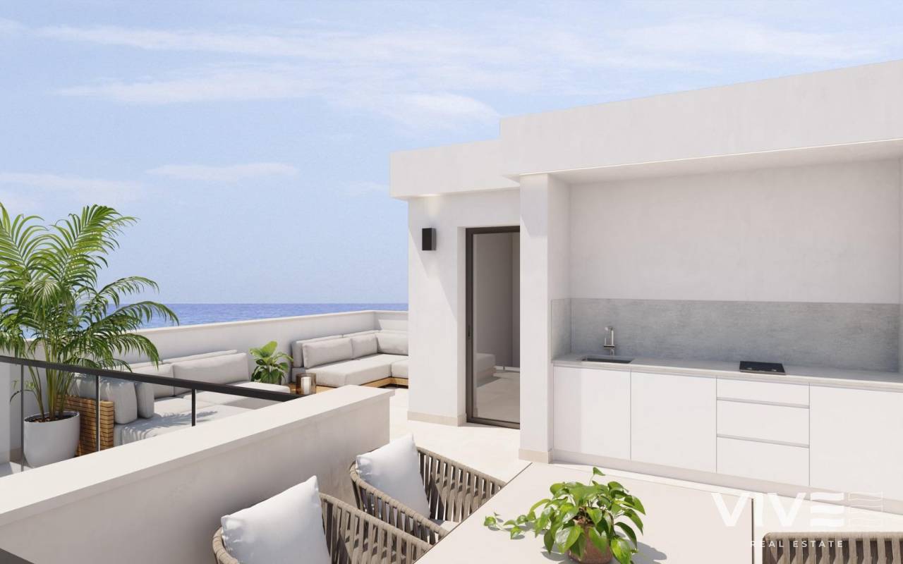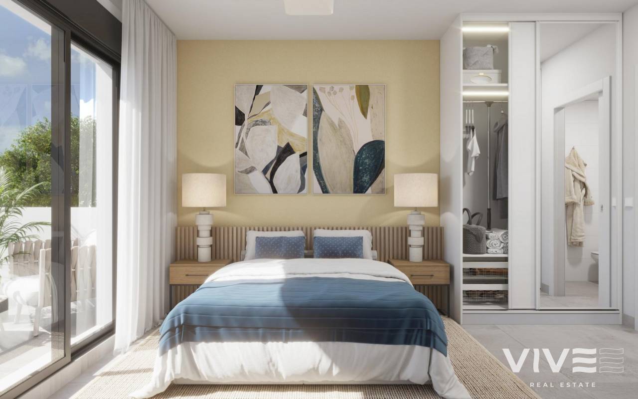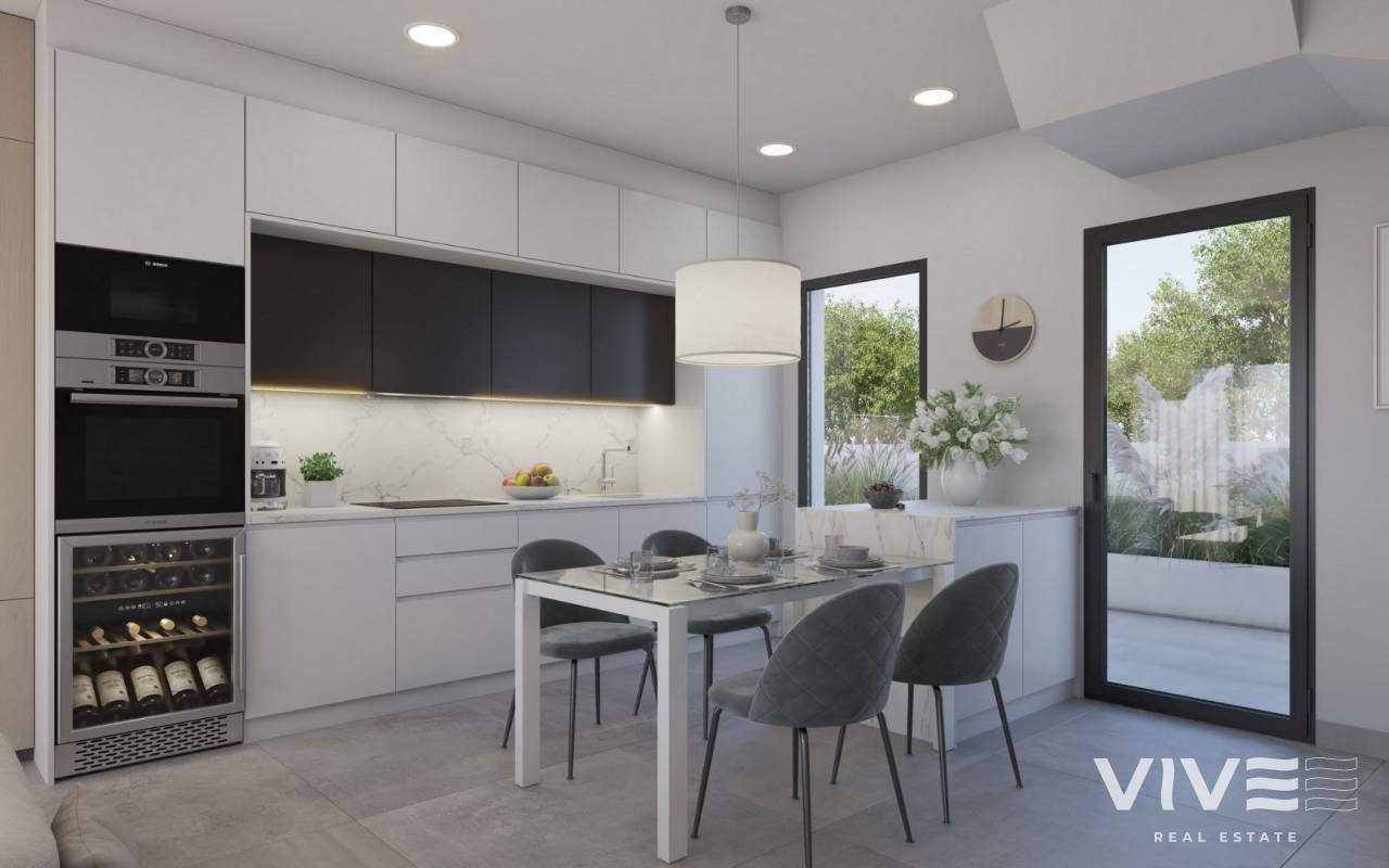 NEU GEBAUTE VILLEN IN LOS ALCAZARES Neubausiedlung mit 12 exklusiven, freistehenden Villen, jede mit privatem Pool und Dachterrasse, nur 150 m vom schönen Strand von Los Narejos und nur 2 Minuten zu Fuß vom belebten Rio Nalon mit seinen vielen Bars und Restaurants entfernt. Charakteristische Häuser, gebaut nach höchstem Standard in einer der besten Lagen am Mar Menor. Alle Villen haben eine Wohnfläche von über 120 m2 und einen privaten Garten von über 100 m2. Auf dem Grundstück steht ein Parkplatz zur Verfügung und ein 6 x 3 m großer privater Pool mit Sonnenterrasse ist ebenfalls vorhanden. Alle Haushaltsgeräte sind vorhanden: Kühlschrank mit Gefrierfach, Backofen, Mikrowelle, Glaskeramikkochfeld, Dunstabzugshaube, Geschirrspüler, Waschmaschine und Mini-Kühlschrank in der Sommerküche. Vorinstallation der gesamten Klimaanlage. Innen- und Außenbeleuchtung, abzüglich der Zierleuchten. Motorisierte Rollläden. Im Erdgeschoss befindet sich ein heller Wohn-Essbereich mit offener Küche, ein Badezimmer und ein zusätzlicher Raum von 13 m2, der als drittes Schlafzimmer, als separates Esszimmer oder als Garage genutzt werden kann; dieser Raum hat Glastüren mit Panoramablick, die sich nach außen öffnen lassen und in denen bei Bedarf ein Auto geparkt werden kann (*Obwohl dieser Innenraum von den Eigentümern nach Belieben genutzt werden kann und als Schlafzimmer hergerichtet wird, wird er in der Urkunde als Garage eingetragen). Es gibt auch einen Außenlagerraum und eine Poolpumpe im hinteren Innenhof. Im ersten Stock befindet sich das Hauptschlafzimmer mit eigenem Bad, zwei Einbauschränken und direktem Zugang zu einem Balkon, sowie ein weiteres Doppelschlafzimmer mit Einbauschränken und Zugang zu Balkonen. Ein drittes Familienbadezimmer befindet sich ebenfalls in der ersten Etage. Eine Treppe führt vom ersten Stock zu einer privaten Dachterrasse mit Sommerküche mit Spüle, Arbeitsfläche und einem Schrank mit einem Mini-Kühlschrank. Dank der Lage am Meer hat man von der Sonnenterrasse aus eine fantastische Aussicht. Energieeffiziente Wärmedämmung und hohe Schallisolierung. Duschabtrennungen in zwei Varianten verfügbar. TV- und Telefonanschlüsse im Wohnzimmer, in den Schlafzimmern und auf der Sonnenterrasse. Innentüren, Schreinerei und Einbauschränke in Weiß. Doppelverglasung mit optimalem Sonnenschutz. Warmwassersystem über einen elektrischen, regelbaren Boiler und 1,5-kW-Photovoltaik-Solarzellen. Vorinstallation für ein Ladegerät für Elektroautos. Los Alcazares ist ein beliebter Küstenort, in dem Sie Geschäfte, Bars, Restaurants, Supermärkte, Apotheken, ein Gesundheitszentrum, einen Taxistand und Bushaltestellen finden. Die Verkehrsanbindung ist hervorragend, die Autobahn AP7 ist ganz in der Nähe. Der internationale Flughafen von Murcia ist weniger als eine halbe Stunde entfernt (40 km) und der Flughafen von Alicante ist in weniger als einer Stunde zu erreichen (93 km). Das prestigeträchtige Roda Golf & Beach Resort mit seinem von Dave Thomas entworfenen 18-Loch-Platz ist nur 2,5 km entfernt.