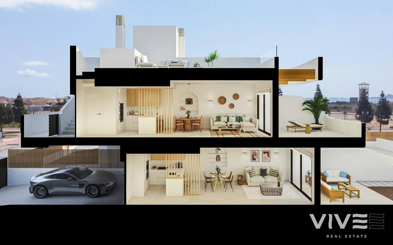 NEU GEBAUTE WOHNANLAGE IN LOS ALCAZARES Wohnanlage in der idyllischen Umgebung von Los Alcázares an der schönen Costa Cálida. New Build Exclusive Residential Komplex besteht aus 30 eleganten Wohnungen und Penthäuser mit 2 und 3 Schlafzimmern, kombiniert zeitgenössisches Design mit außergewöhnlicher Qualität und Funktionalität. Die schönen Penthäuser haben eine private Sonnenterrasse. Die unvergleichliche Lage bietet einen Panoramablick auf den Golfplatz und das Mar Menor und ist eine Oase der Ruhe und Raffinesse. Das Neubaugebiet liegt nur 25 Minuten vom Flughafen Murcia und 55 Minuten vom Flughafen Alicante entfernt und bietet eine hervorragende Autobahnanbindung nach Cartagena, Murcia, Alicante und zu den herrlichen Stränden der Costa Cálida und Costa Blanca. Das Mar Menor ist einer der großen Schätze der Costa Cálida und die größte Salzwasserlagune Europas. Europas mit einer Fläche von 170 km² und fünf Inseln. Die klimatischen Bedingungen, das warme Wasser und das Fehlen von Strömungen und großen Wellen machen das Mar Menor zu einem einzigartigen Ziel zum Schwimmen und für alle Arten von Wassersport. Die Wohnanlage befindet sich in einer der exklusivsten Wohngegenden mit einem Golfplatz direkt am Meer. In dieser Umgebung vereinen sich Ruhe und natürliche Schönheit zu einem idealen Ort für ein Traumleben unter der Sonne.