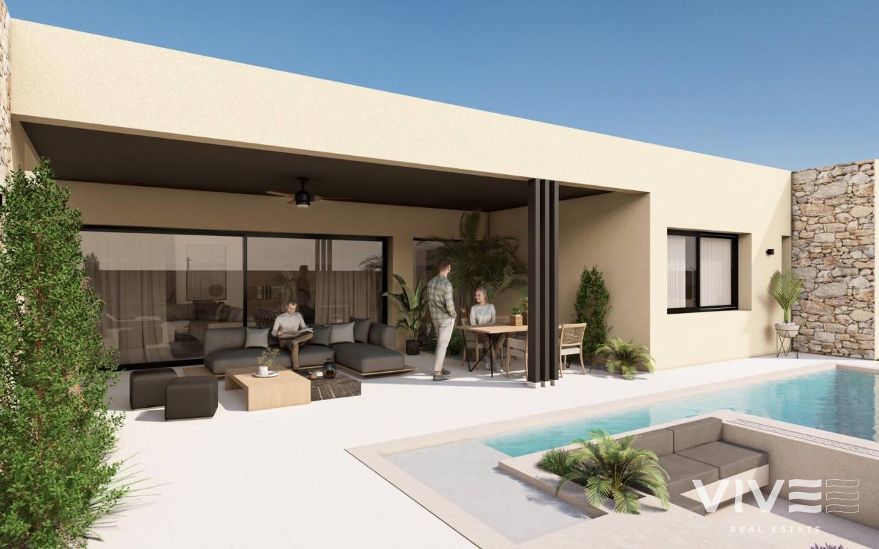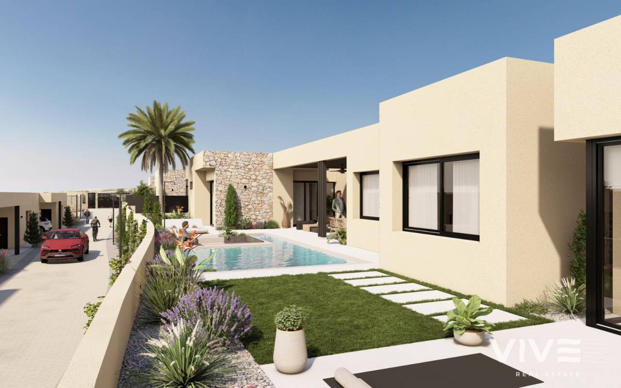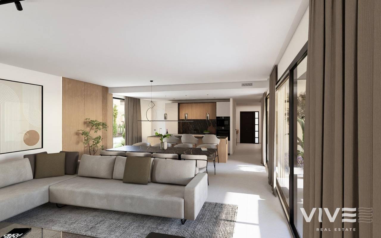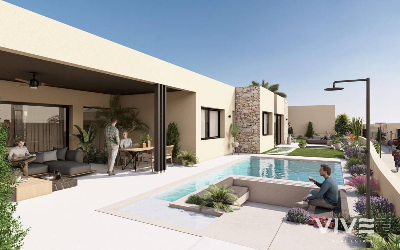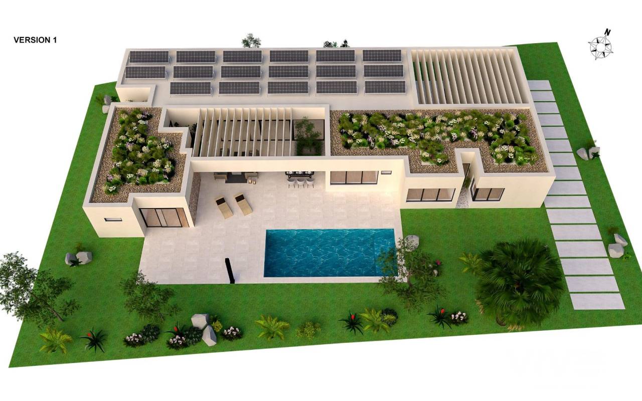 NEU GEBAUTE VILLEN IN ALTAONA GOLF RESORT, MURCIA Neubau von schönen Villen in Altaona Golf Resort, Murcia. Neubauvillen mit offener Küche, 5 Schlafzimmern, 3 Bädern, Gäste-WC, Terrasse, Privatgarten mit Pool und Parkplatz. Die Kalt-/Warm-Klimaanlage ist mit einem voll installierten Kanal-Klimagerät ausgestattet. Die Eingangstür zum Haus hat ein Panzerschloss mit Anti-Jemmy-Scharnieren. Die Einbauschränke sind mit einem Zwischengeschoss, einer Hängestange, einer Kommode und einem Zwischenboden ausgestattet. Das Projekt verfügt über großzügige Gemeinschaftsbereiche mit vielen Grünflächen, Wegen und Ruhezonen. In einer privilegierten Umgebung gelegen, in der man ruhig, in Kontakt mit der Natur und den Bergen leben kann, erreicht man Lebensqualität, frische Luft und Freiräume. Merkmale: - Garten, Schwimmbad und Privatparkplatz - 24/7 Sicherheit und Ruhe - Energieeffizienz A+ - Innovative Bauweise - Gemeinsame Grünflächen und Gärten mit Obstgarten Optionale Ausstattung: - Sonnenkollektoren - Küche Weiße Ware - Gasanlage - Ladestation für Elektroautos - Kamin - Aufzug (für Villen mit 2 Etagen) - Zusätzlicher Stauraum im Hausflur Die Wohnanlage befindet sich in Altaona Golf, nur 15 Autominuten vom Zentrum der Hauptstadt Murcia und 20 Minuten von den Stränden entfernt. Genießen Sie die Ruhe und Sicherheit, die Ihnen der Golfplatz mit seinen 18 Löchern bietet und den Komfort, in der Nähe aller Dienstleistungen zu wohnen. Murcias Flughafen Corvera ist nur 15 Autominuten entfernt.