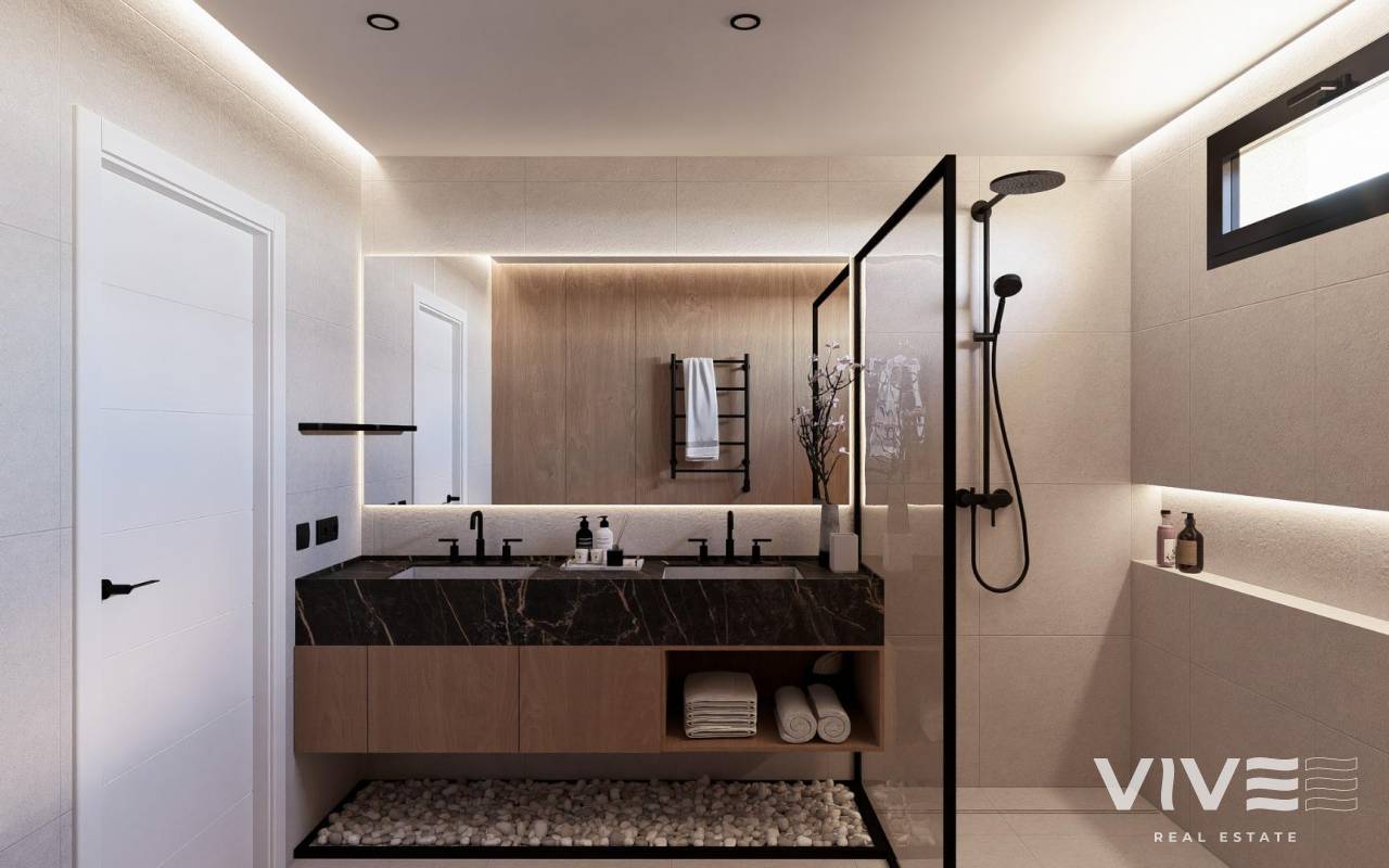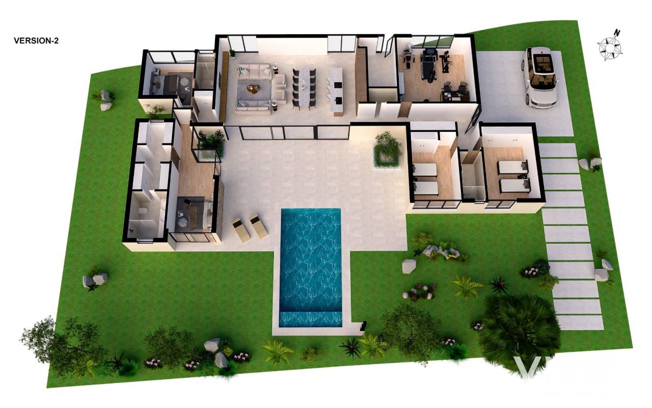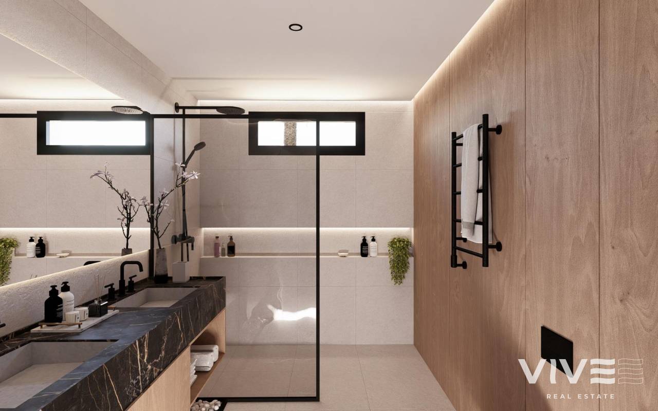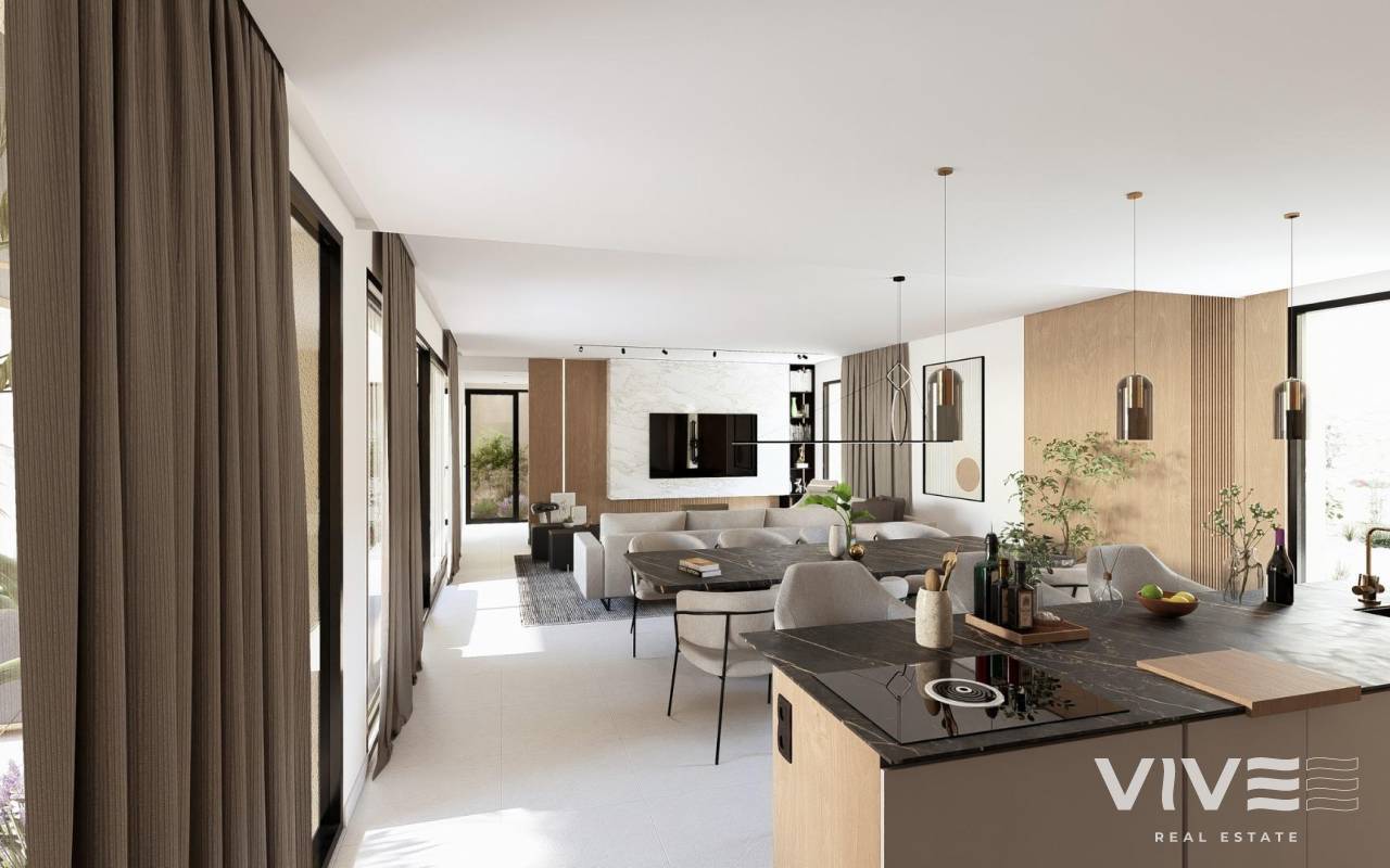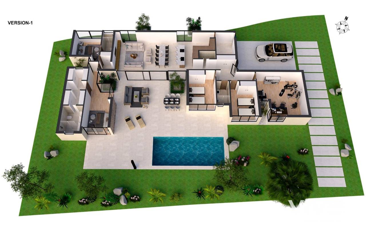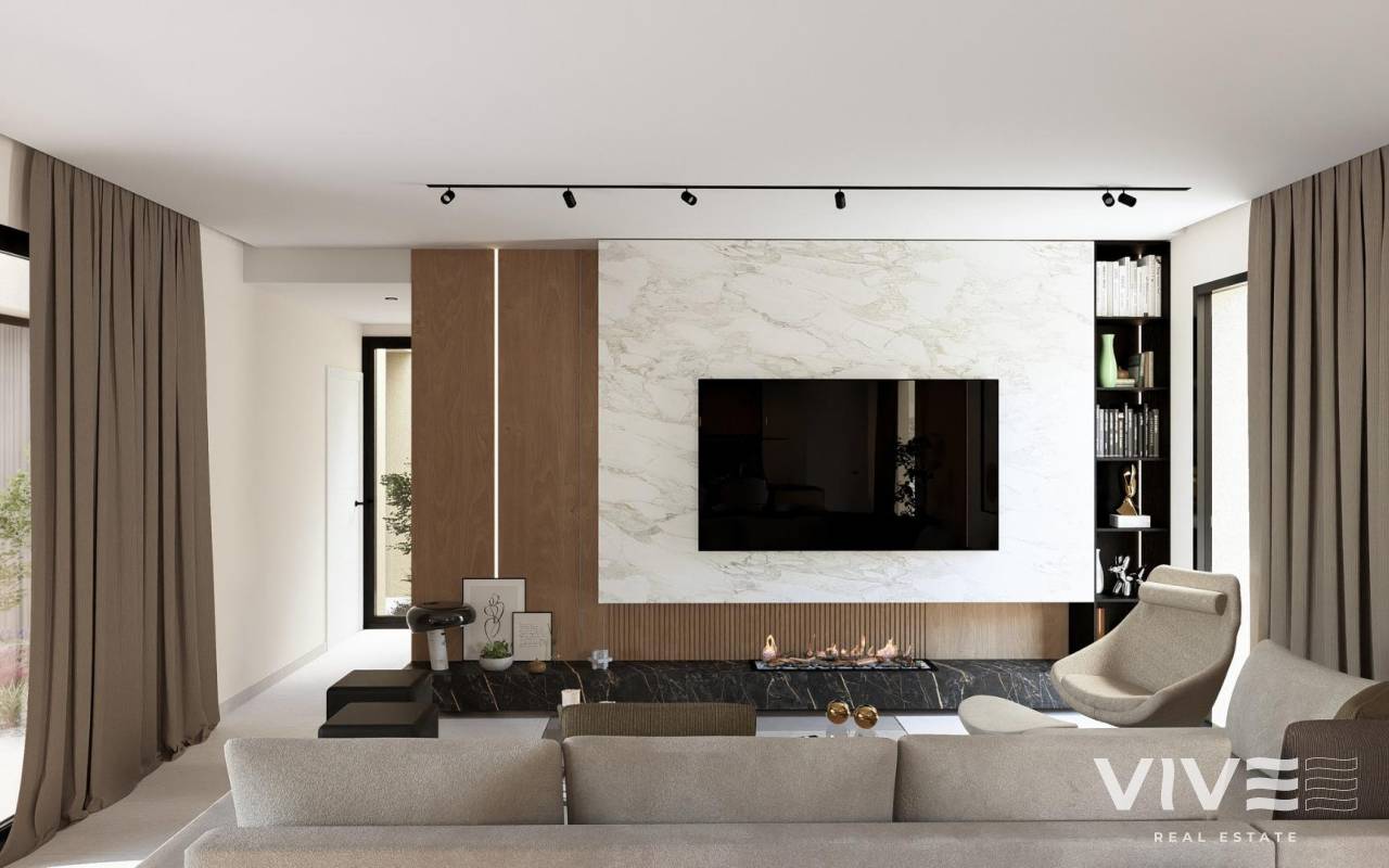 NEU GEBAUTE VILLEN IN ALTAONA GOLF RESORT, MURCIA Neubau von schönen Villen in Altaona Golf Resort, Murcia. Neubauvillen mit offener Küche, 5 Schlafzimmern, 3 Bädern, Gäste-WC, Terrasse, Privatgarten mit Pool und Parkplatz. Die Kalt-/Warm-Klimaanlage ist mit einem voll installierten Kanal-Klimagerät ausgestattet. Die Eingangstür zum Haus hat ein Panzerschloss mit Anti-Jemmy-Scharnieren. Die Einbauschränke sind mit einem Zwischengeschoss, einer Hängestange, einer Kommode und einem Zwischenboden ausgestattet. Das Projekt verfügt über großzügige Gemeinschaftsbereiche mit vielen Grünflächen, Wegen und Ruhezonen. In einer privilegierten Umgebung gelegen, in der man ruhig, in Kontakt mit der Natur und den Bergen leben kann, erreicht man Lebensqualität, frische Luft und Freiräume. Merkmale: - Garten, Schwimmbad und Privatparkplatz - 24/7 Sicherheit und Ruhe - Energieeffizienz A+ - Innovative Bauweise - Gemeinsame Grünflächen und Gärten mit Obstgarten Optionale Ausstattung: - Sonnenkollektoren - Küche Weiße Ware - Gasanlage - Ladestation für Elektroautos - Kamin - Aufzug (für Villen mit 2 Etagen) - Zusätzlicher Stauraum im Hausflur Die Wohnanlage befindet sich in Altaona Golf, nur 15 Autominuten vom Zentrum der Hauptstadt Murcia und 20 Minuten von den Stränden entfernt. Genießen Sie die Ruhe und Sicherheit, die Ihnen der Golfplatz mit seinen 18 Löchern bietet und den Komfort, in der Nähe aller Dienstleistungen zu wohnen. Murcias Flughafen Corvera ist nur 15 Autominuten entfernt.