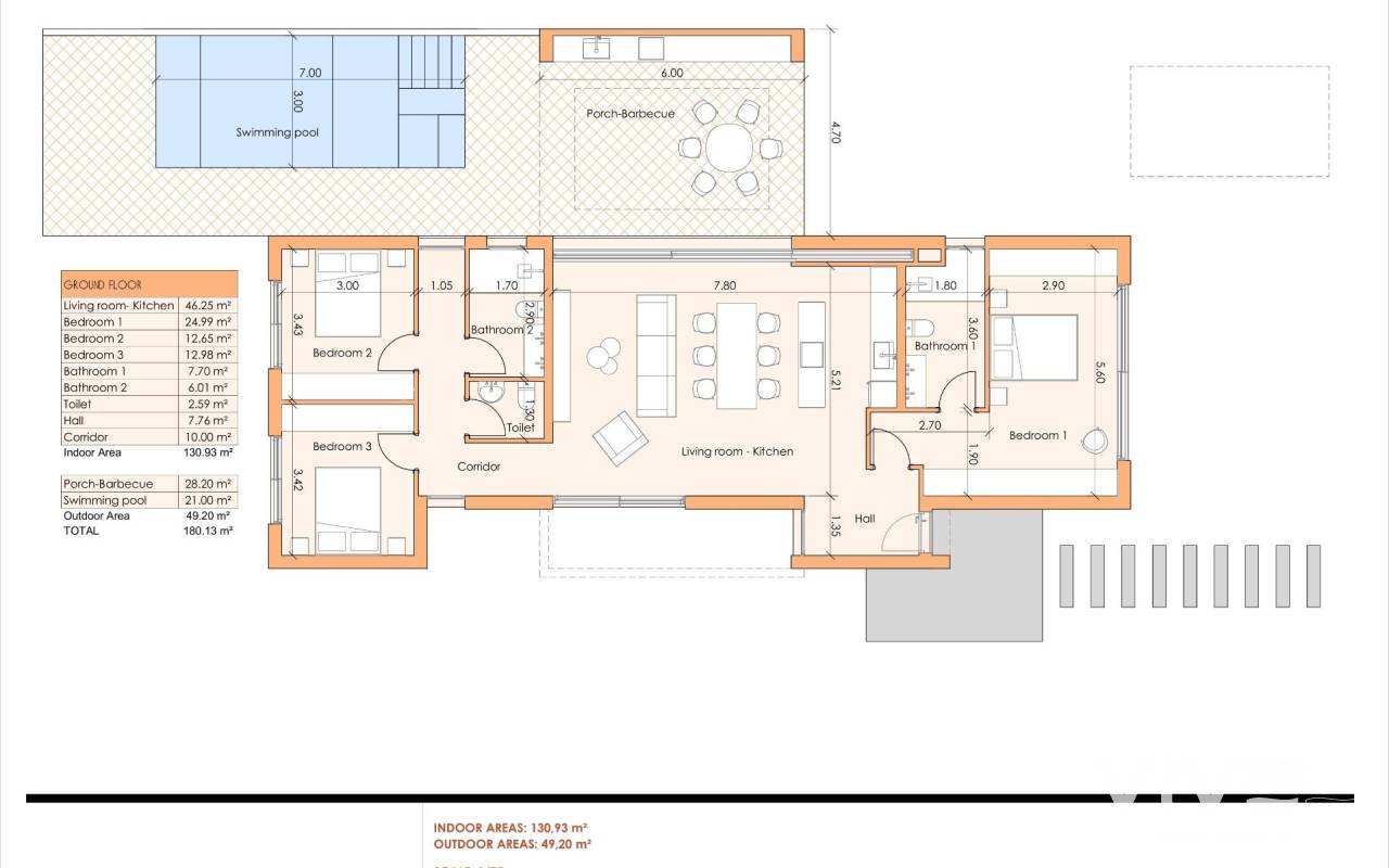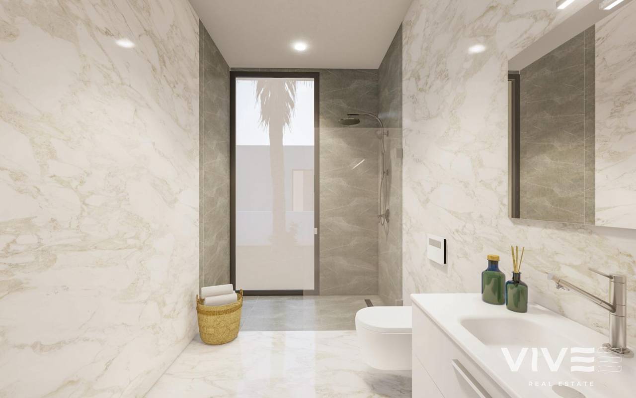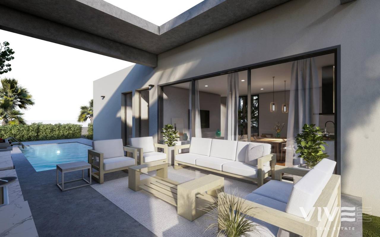 NEU GEBAUTE VILLEN IM ALTAONA GOLF RESORT, MURCIA Neubau einer außergewöhnlichen Villenanlage inmitten des wunderschönen Altaona Resorts in Murcia. Diese exklusive Enklave bietet einen idealen Rahmen, um die nahtlose Verschmelzung von luxuriösem Wohnen und dem ruhigen mediterranen Lebensstil zu erleben. Spüren Sie, wie die Landschaft durch die großen Fenster in das Haus eindringt. Der Garten erhält eine große Präsenz und ist Teil des Wesens der Villa. Im Inneren sind sie geräumig und hell, so dass das mediterrane Licht die Räume durchfluten kann. Neubauvillen mit offener Küche, 3 Schlafzimmern, 2 Bädern, Gäste-WC, Terrasse, Privatgarten mit Pool und Parkplatz. Merkmale: - Die Häuser haben einen Energieausweis der Klasse A. - Klimaanlage mit Kanalisation und Wärmepumpe. Im ganzen Haus, außer in den Bädern. - Elektrische Fußbodenheizung im Wohnzimmer und in den Bädern mit individuellem Thermostat pro Zone. - Lufterneuerungsanlage in der Küche, den Bädern, der Waschküche und der Gästetoilette. - Küche Inklusive Dunstabzugshaube und elektrischem Induktionskochfeld mit 3 Kochstellen. - Inklusive LED-Beleuchtung im Wohnzimmer, Flur und Außenbereich. Der Rest der Räume ist für den zukünftigen Eigentümer vorbereitet, um seine Beleuchtung zu installieren. - USB-Steckdosen in allen Schlafzimmern. - Elektronische Gegensprechanlage für den Zugang von außen zum Innenweg. Türklingel am Eingang des Hauses. - Hausautomatisierungssystem mit zwei intelligenten Schaltern. - Privater Landschaftsgarten mit Tropfbewässerungssystem und Pool. - Außenumzäunung der Urbanisation. - Zufahrtstore zur Urbanisation: Schiebetor aus Metall mit Fernöffnungssystem. Die Wohnanlage befindet sich in Altaona Golf, nur 15 Autominuten vom Zentrum der Hauptstadt Murcia und 20 Minuten von den Stränden entfernt. Genießen Sie die Ruhe und Sicherheit, die Ihnen der Golfplatz mit seinen 18 Löchern bietet, und den Komfort, in der Nähe aller Dienstleistungen zu wohnen. Murcias Flughafen Corvera ist nur 15 Autominuten entfernt.