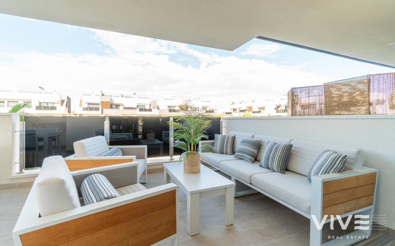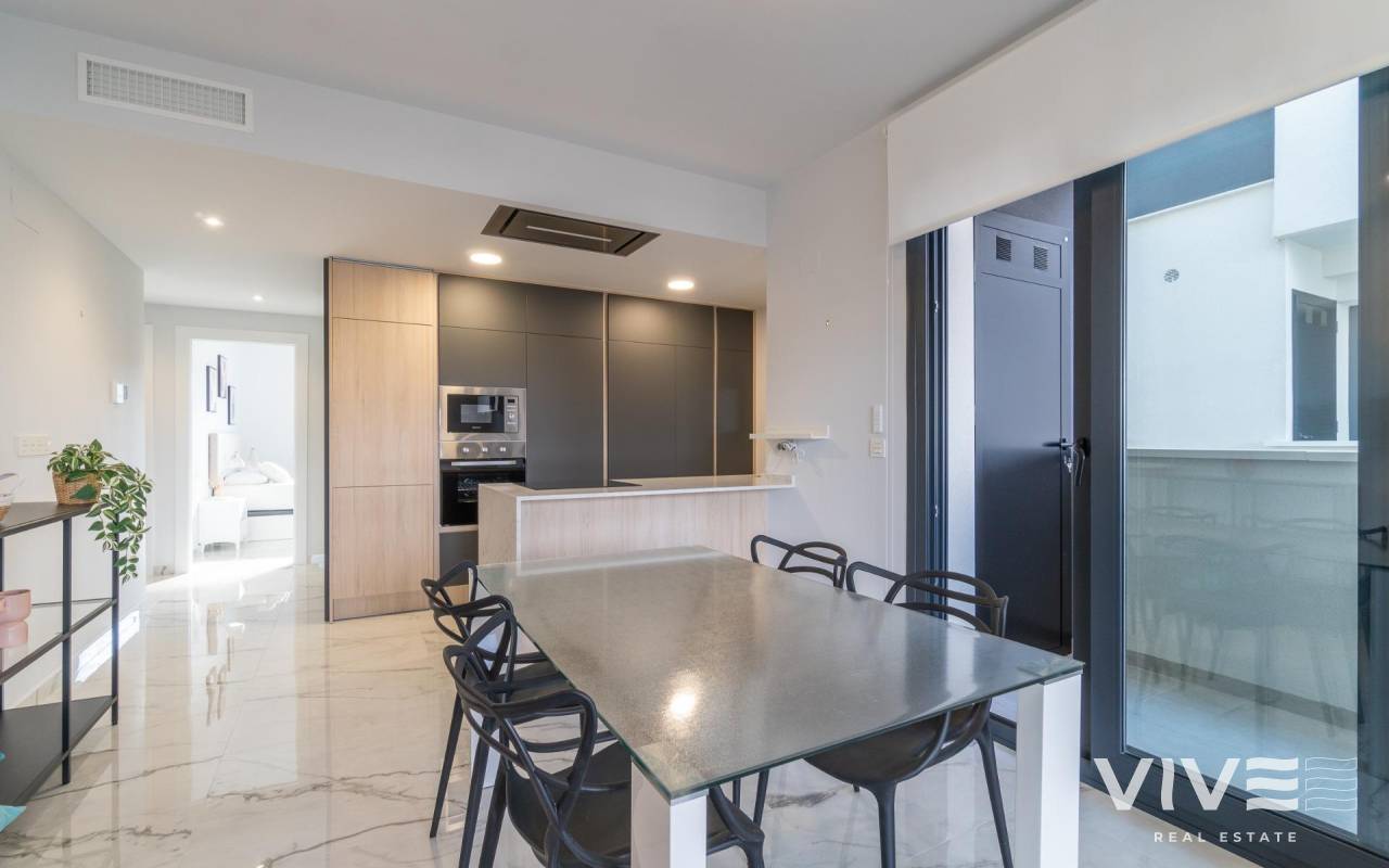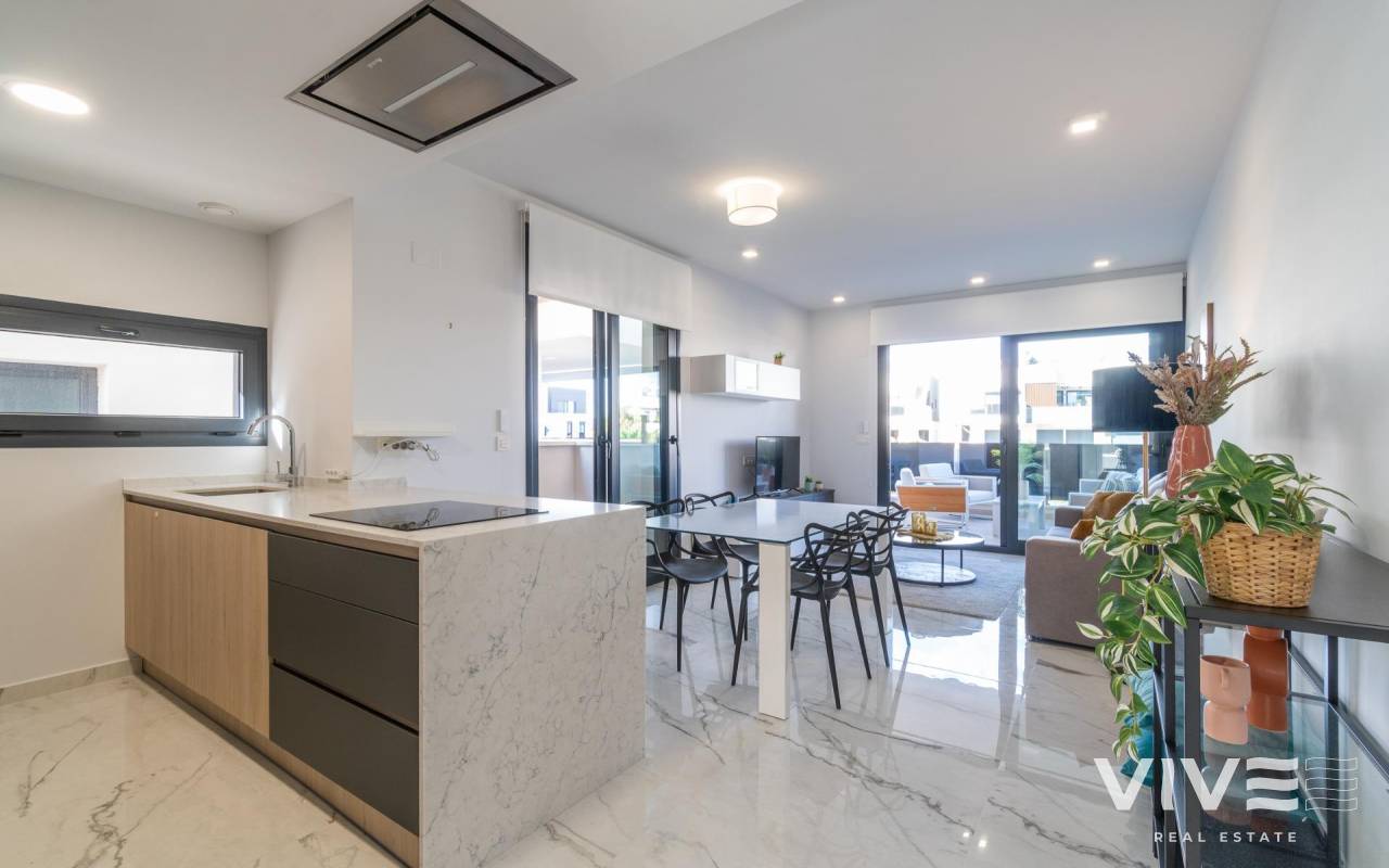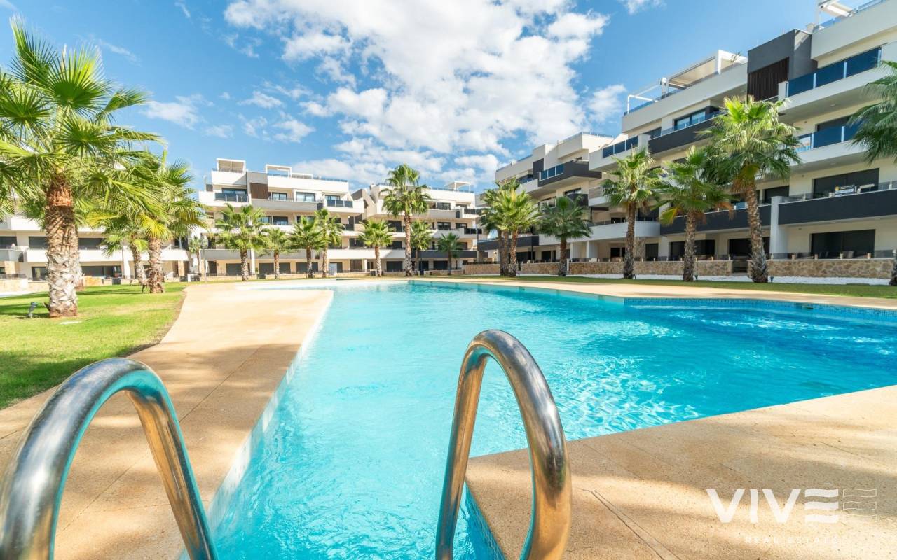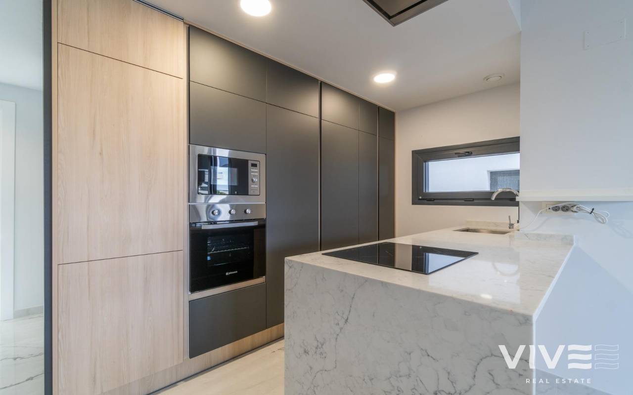 Willkommen in Ihrem neuen Zuhause in der exklusiven Wohnanlage Amanecer IX in Orihuela Costa! Dieses beeindruckende Luxusapartment aus dem Jahr 2024 bietet einen unvergleichlichen Lebensstil in einer privilegierten Umgebung. Mit einer Fläche von 80 m² ist dieser Raum auf maximalen Komfort und Funktionalität ausgelegt.. . Beim Betreten werden Sie von einer hellen und einladenden Atmosphäre begrüßt, dank der Ost-West-Ausrichtung, die jede Ecke mit natürlichem Licht durchflutet. Das Apartment im zweiten Stock des Gebäudes verfügt über 2 große Doppelzimmer, die zum Ausruhen und Entspannen einladen, sowie 2 elegante Badezimmer, eines davon en Suite, die für einen Hauch von Raffinesse sorgen.. . Die komplett mit hochwertigen Oberflächen ausgestattete Küche ist ein Traum für Feinschmecker und fügt sich perfekt in das Wohnzimmer ein und schafft so einen idealen Raum, um Momente mit Familie und Freunden zu teilen. Vom Wohnzimmer aus gelangen Sie auf eine bezaubernde 14 m² große Terrasse, von der aus Sie die freie Aussicht und das mediterrane Klima genießen können.. . Dieses Apartment verfügt außerdem über eine Reihe außergewöhnlicher Annehmlichkeiten: eine Klimaanlage mit Airzone-System für individuellen Komfort, Einbauschränke, die den Platz optimieren, und einen zusätzlichen 5 m² großen Abstellraum auf dem Garagenboden für zusätzlichen Stauraum. Darüber hinaus garantieren der Zugang für Personen mit eingeschränkter Mobilität und der Aufzug den Komfort aller Bewohner.. . Genießen Sie die Gemeinschaftseinrichtungen, darunter ein erfrischendes Schwimmbad, ein Fitnessstudio, ein Whirlpool und eine Sauna, die sich perfekt zum Entspannen und Aktivbleiben eignen. Die Lage ist unschlagbar, nur 4000 m vom Strand entfernt und umgeben von Dienstleistungen wie Einkaufszentren (ALDI-Supermarkt 10 Minuten zu Fuß), Ärzten, Schulen und Parks, was es zu einem idealen Wohnort macht.. . Mit einer enthaltenen Garage und Zugang zu Kinderbereichen (im selben Wohnkomplex) ist diese Wohnung perfekt für Familien und diejenigen, die einen aktiven und komfortablen Lebensstil suchen. Verpassen Sie nicht die Gelegenheit, in dieser wundervollen Wohnung in Orihuela Costa zu wohnen! Kontaktieren Sie uns für weitere Informationen und um einen Besuch zu vereinbaren. Ihr neues Zuhause wartet auf Sie!