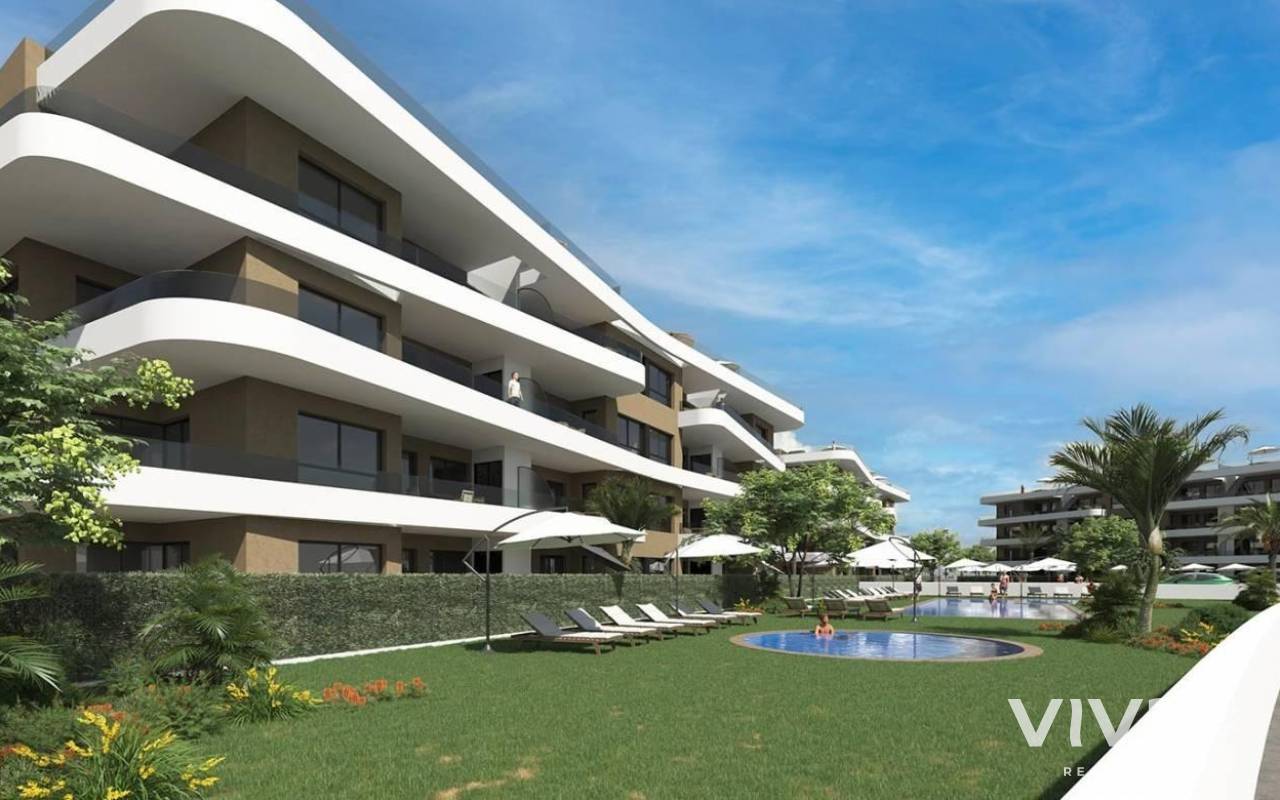 Exklusiver Wohnkomplex in Punta Prima (Orihuela Costa) - nur 1 km vom Meer entfernt Willkommen in einer neuen und exklusiven Wohnanlage in Punta Prima, Orihuela Costa. Nur 1 km vom Mittelmeer entfernt, bietet dieser moderne Komplex eine Reihe von 2- und 3-Schlafzimmer-Apartments und 3-Schlafzimmer-Bungalows, die den ultimativen Komfort und Lebensstil bieten. Geräumige Apartments mit herrlichen Außenbereichen Die Wohnungen in diesem Komplex verfügen über große Terrassen, auf denen Sie das sonnige mediterrane Klima genießen können. Zu jeder Wohnung gehören ein Stellplatz in der Tiefgarage und ein Abstellraum für zusätzlichen Komfort. Die Wohnungen im Erdgeschoss verfügen über private Gärten, während die Penthäuser mit großzügigen Sonnenterrassen ausgestattet sind - ideal, um die Sonne zu genießen und die Aussicht zu bewundern. Luxuriöse Bungalows mit privaten Gärten und Solarien Die Bungalows im Erdgeschoss verfügen über weitläufige Eckgärten mit Parkplätzen, die zusätzlichen Platz und Privatsphäre bieten. Die Bungalows im Obergeschoss verfügen ebenfalls über einen Garten mit Parkplatz und ein privates Solarium, in dem Sie in völliger Abgeschiedenheit entspannen und die Sonne genießen können. Außergewöhnliche Gemeinschaftsbereiche für Entspannung und Unterhaltung Die Wohnanlage ist eine Oase der Ruhe und bietet eine Reihe von Annehmlichkeiten, die Sie genießen können. Den Bewohnern stehen drei Swimmingpools, zwei Whirlpools, wunderschön angelegte Gärten, Spazierwege, ein Fitnessstudio und ein Spielbereich für Kinder zur Verfügung. Alles, was Sie für einen erholsamen Lebensstil brauchen, finden Sie hier, nur wenige Schritte von Ihrem Haus entfernt. Erstklassige Lage mit einfachem Zugang zu Annehmlichkeiten Punta Prima ist eine sehr gefragte Gegend in Orihuela Costa, die für ihre hervorragende Lage und ihre Annehmlichkeiten bekannt ist. Die atemberaubenden Strände der Costa Blanca sind nur wenige Minuten entfernt, und Einkaufszentren wie Punta Marina (2 km) und La Zenia Boulevard (4 km) befinden sich in der Nähe. Golfliebhaber werden die Nähe zu mehreren Golfplätzen zu schätzen wissen, und der internationale Flughafen von Alicante ist nur 50 km entfernt.