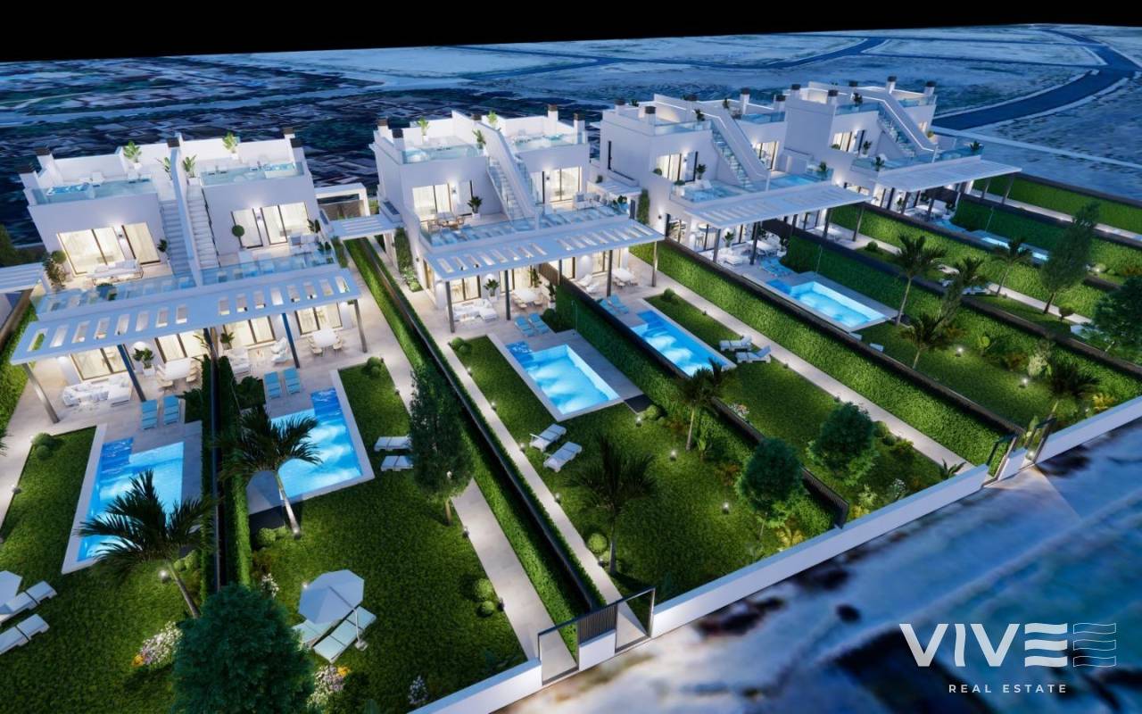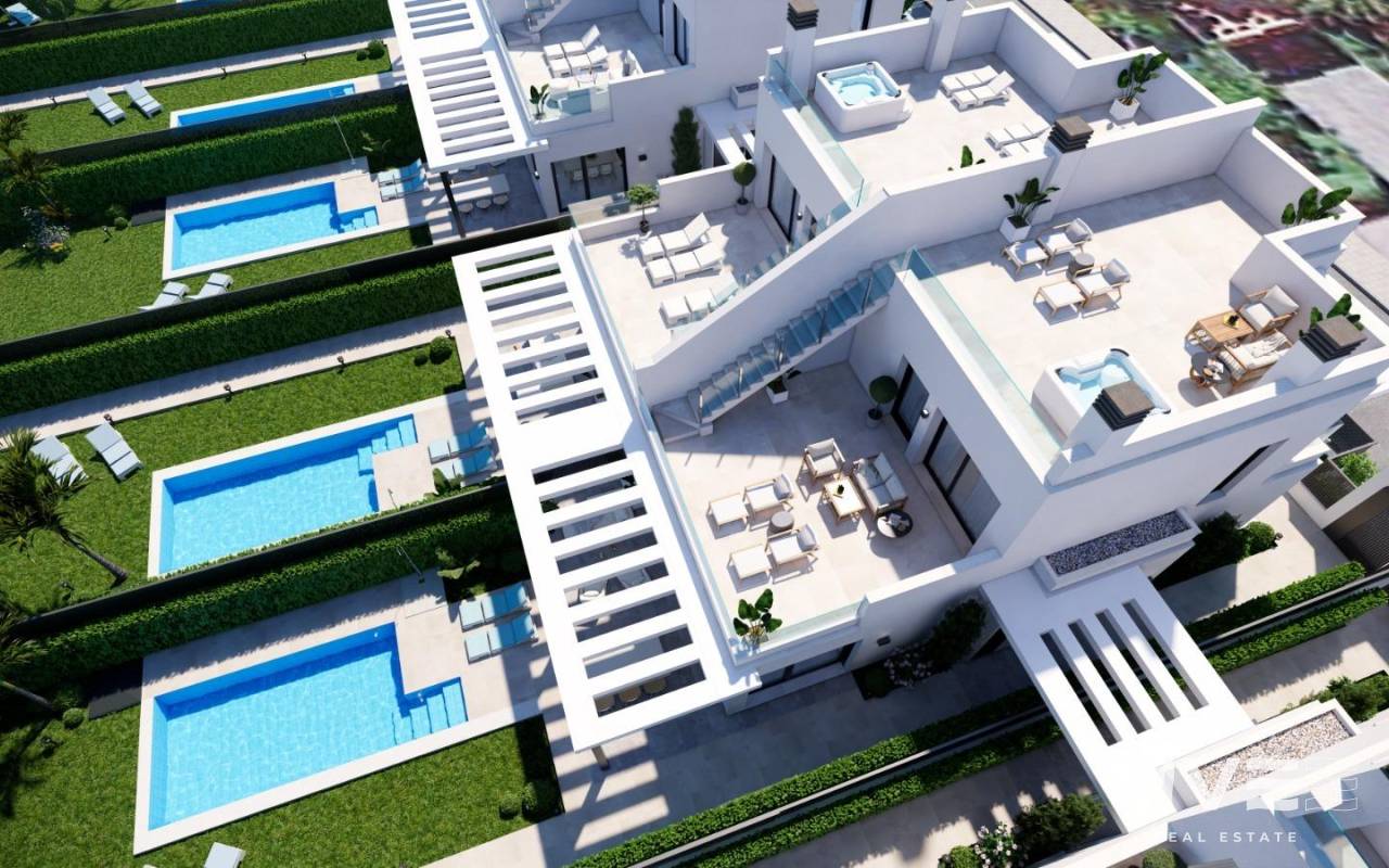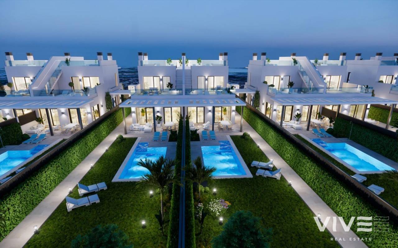 Luxuriöse Neubauvillen am Wasser in Los Alcázares Entdecken Sie das ultimative mediterrane Leben mit diesem exklusiven Wohnprojekt, das neun moderne Villen direkt am Wasser in der wunderschönen Küstenstadt Los Alcázares in Murcia umfasst. Die Villen befinden sich in der begehrten Gegend Nueva Ribera und sind auf Luxus, Privatsphäre und Bequemlichkeit ausgelegt. Golfplätze, Einkaufszentren und Verkehrsknotenpunkte sind von hier aus bequem zu erreichen. Jede Villa bietet eine hochwertige Ausstattung, einen atemberaubenden Meerblick und einen privaten Pool und ist damit die ideale Wahl für alle, die einen modernen Rückzugsort an der Küste suchen. Erstklassige Lage in Los Alcázares Eingebettet in Los Alcázares, einer charmanten Stadt an der spanischen Costa Cálida, genießt dieses Wohnprojekt eine beneidenswerte Lage mit direktem Zugang zur Strandpromenade. Diese friedliche Gegend verbindet die Ruhe des Lebens am Meer mit dem einfachen Zugang zu allen Annehmlichkeiten. Das pulsierende Stadtzentrum von Los Alcázares ist nur 2 km entfernt, während der internationale Flughafen von Murcia nur 35 km entfernt ist, was eine bequeme Anreise ermöglicht. Der renommierte Roda Golf Club liegt nur 4 km entfernt und bietet Freizeitmöglichkeiten in der Nähe des Hauses, und die Autobahn AP-7 ermöglicht einen schnellen Zugang zu den nahe gelegenen Städten und Sehenswürdigkeiten. Exklusive Villen mit erstklassigen Annehmlichkeiten Das Projekt umfasst insgesamt neun Villen: acht Doppelhaushälften und eine freistehende Villa mit jeweils über 300 Quadratmetern Grundstücksfläche. Diese geräumigen Villen sind mit Eleganz und Komfort ausgestattet und verfügen über: Privater Pool und Solarium: Jede Villa verfügt über einen privaten Salzwasser-Pool und eine Dachterrasse mit Whirlpool, LED-Beleuchtung und Vorinstallation für eine Außenküche - ideal, um Gäste zu unterhalten und dabei den Blick auf das Mar Menor zu genießen. Moderne, voll ausgestattete Küche: Die Küche verfügt über integrierte Geräte von Bosch, darunter ein Backofen, eine Mikrowelle, ein Induktionskochfeld und eine Dunstabzugshaube. Das elegante Design umfasst eine Halbinsel und Arbeitsflächen aus Silestone oder Porzellan. Anspruchsvolle Klimatisierung: Genießen Sie das ganze Jahr über den Komfort einer kanalisierten Klimaanlage auf jeder Etage, die mit Hochleistungsgeräten von Mitsubishi oder Daikin ausgestattet ist. Stilvolle Badezimmer: Zu den hochwertigen Badezimmern gehören hängende Waschtische, Duschwannen aus Harz und eingebaute Duschabtrennungen. Energieeffizientes Design: Jede Villa verfügt über eine fortschrittliche Isolierung, Guardian-Sun-Akustikfenster mit Doppelverglasung und ein aerothermisches Wassererwärmungssystem für optimale Energieeffizienz. Intelligente Hausausstattung: Elektrische Rollläden, LED-Außenbeleuchtung und die Vorinstallation für eine Ladestation für Elektrofahrzeuge sorgen für modernen Komfort. Sichere und private Gemeinschaft Diese Villen befinden sich in einer privaten, bewachten Wohnanlage mit 24-Stunden-Sicherheitsdienst und bieten von jedem Garten aus einen direkten Zugang zur Strandpromenade, was sowohl Privatsphäre als auch Anbindung gewährleistet. Erleben Sie das Küstenleben in Los Alcázares - vereinbaren Sie noch heute einen Besichtigungstermin! Genießen Sie den Luxus des Lebens an der Küste in Los Alcázares. Mit der Nähe zu Roda Golf und Einkaufszentren im Umkreis von 5 km bieten diese Villen einen unvergleichlichen Lebensstil. Kontaktieren Sie uns noch heute, um einen Besichtigungstermin zu vereinbaren und sich Ihre Traumimmobilie am Wasser zu sichern.