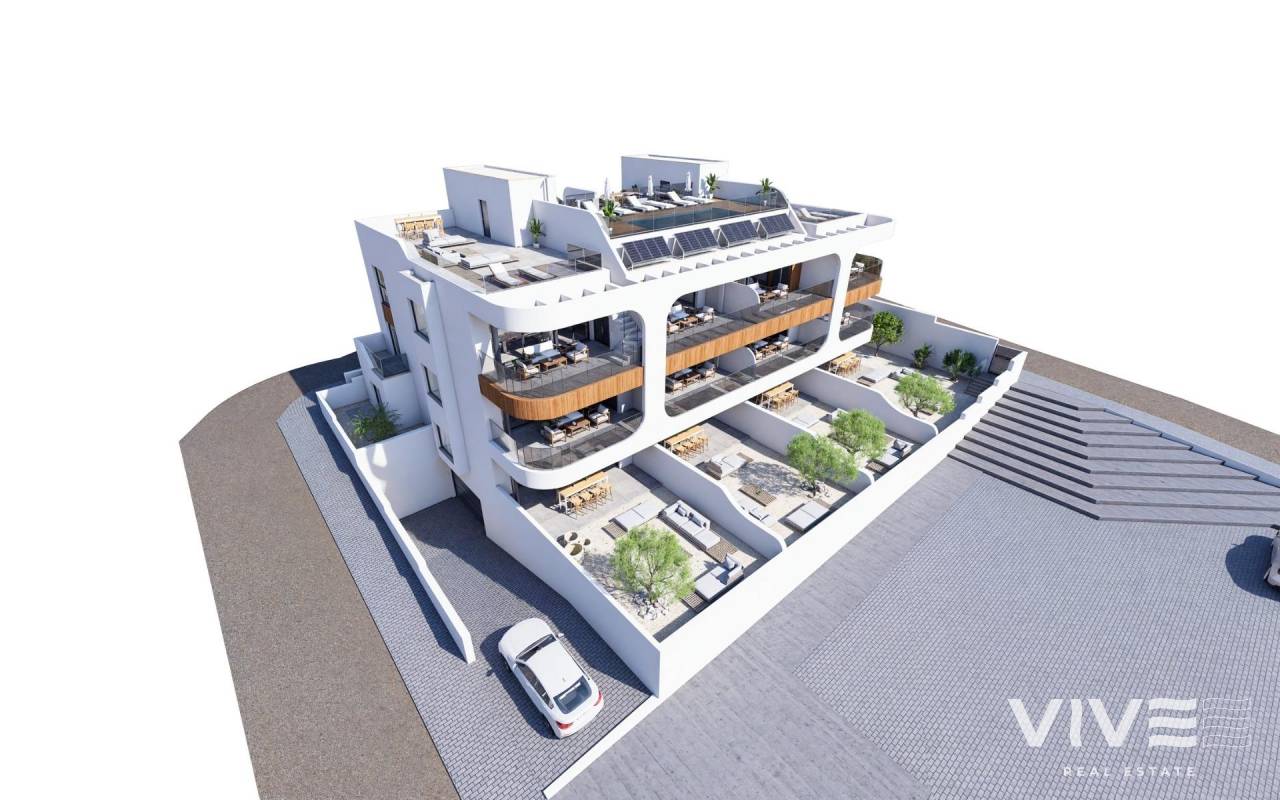 Neubauwohnungen in Benijófar - Design, Komfort und privilegierte Lage Exklusive Wohnungen in einem stark wachsenden Gebiet Am Ortseingang von Benijófar, in einer der sich am schnellsten entwickelnden Gegenden der Costa Blanca Süd, gelegen, vereinen diese Wohnungen zeitgenössische Architektur, hochwertige Materialien und eine strategische Lage. Diese Wohnanlage eignet sich sowohl für diejenigen, die ein modernes und funktionales Zuhause suchen, als auch für diejenigen, die eine sichere Investition in einer Gegend mit großem Potenzial tätigen möchten. Modernes Design und maximaler Komfort Jede Wohnung wurde so konzipiert, dass sie eine geräumige und helle Umgebung bietet, mit erstklassigen Oberflächen und einem avantgardistischen Stil. Die Wohnungen verfügen über: 3 Schlafzimmer und 2 Bäder mit hochwertigen Materialien. Geräumiges Wohn-Esszimmer mit innovativer Aufteilung. Offene Küche, komplett ausgestattet mit Ober- und Unterschränken. Drehbarer TV-Schrank und Sitzfenster, ein exklusiver Ort, um die Aussicht zu genießen. Zugang zum spektakulären Gemeinschaftsbereich auf dem Dach mit Swimmingpool und Solarium, ideal zum Entspannen. Darüber hinaus beinhaltet jede Wohnung: Vorinstallation von Klimaanlage und Kanalheizung. Außenschreinerei mit thermischer Trennung und Doppelverglasung. Warmwasseraufbereitung durch aerothermische Heizung. Sicherheitseingangstür für ein sicheres Gefühl. Parkplatz und Abstellraum im Keller, mit Aufzug zur Dachterrasse. Benijófar: Ein charmantes Dorf mit allen Annehmlichkeiten Benijófar ist ein Dorf mit einer perfekten Kombination aus Tradition und Modernität. Die Kirche, die örtlichen Geschäfte, Supermärkte, Apotheken und Restaurants sorgen das ganze Jahr über für eine gemütliche Atmosphäre. Für Naturliebhaber gibt es einen Naturpark, der zum Wandern und Erkunden einlädt. Die strategische Lage ermöglicht einen einfachen Zugang zu: Guardamar del Segura Strände - 8 km. La Finca und La Marquesa Golfplätze - 6 km. Die Wasserparks von Rojales und Torrevieja - 4 km und 12 km. Einkaufszentrum Zenia Boulevard - 17 km. Flughafen Alicante - 35 km. Ihr neues Zuhause an der Costa Blanca erwartet Sie Genießen Sie den Luxus, den Komfort und die hervorragende Lage dieser modernen Wohnungen in Benijófar. Lassen Sie sich diese Gelegenheit nicht entgehen und kontaktieren Sie uns noch heute, um einen Besichtigungstermin zu vereinbaren und Ihr zukünftiges Zuhause an der Costa Blanca zu entdecken.