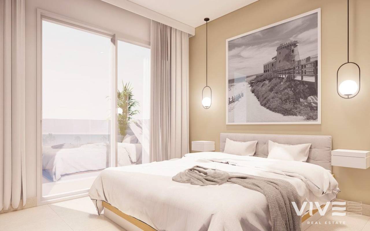 Luxuriöse Ferienwohnungen nur 150 m vom Strand Las Higuericas entfernt - Torre de la Horadada Exklusive neue Wohnanlage mit Mietlizenz Willkommen in einer neuen Wohnanlage in Torre de la Horadada, nur 150 m vom goldenen Sandstrand von Las Higuericas entfernt. Dieses moderne Projekt bietet 48 voll möblierte Ferienwohnungen, die alle mit einer Kurzzeit-Vermietungslizenz geliefert werden, was sie zu einer idealen Investition für die Ferienvermietung oder den persönlichen Gebrauch macht. Sie haben die Wahl zwischen 42 Einheiten mit 3 Schlafzimmern und 2 Bädern oder 6 Einheiten mit 2 Schlafzimmern und 2 Bädern, die alle sorgfältig entworfen wurden, um Komfort, Stil und Funktionalität zu maximieren. Grundrisse für das Leben an der Küste Jede Wohnung ist auf die unterschiedlichen Lebensbedürfnisse zugeschnitten: Die Wohnungen im Erdgeschoss verfügen über großzügige private Gärten mit Blick auf die Gemeinschaftsbereiche. Die Wohnungen im ersten Stock bieten große Terrassen, einige davon mit Teilmeerblick. Die Penthäuser verfügen über private Solarien mit Meerblick und Außenküchen, Pergolen, Whirlpools und Kunstrasen. Zu allen Wohnungen gehören ein privater Tiefgaragenstellplatz und ein Abstellraum. Die Fertigstellung der ersten Phase ist für Sommer 2026 geplant. Vollständig ausgestattet und bezugsfertig Diese Häuser sind vollständig ausgestattet und können sofort bezogen werden, einschließlich Komplette Möbel und Dekoration im mediterranen Stil Voll ausgestattete Küchen mit Geräten Eigene Hauswirtschaftsräume Fußbodenheizung in allen Räumen Klimaanlage mit Luftkanälen (warm/kalt) Bettwäsche und Haushaltswaren Die Fenster sind mit elektrischen Rollläden und Climasun-Wärmeschutzglas ausgestattet, während energieeffiziente aerothermische Systeme für die Warmwasserbereitung sorgen. Gemeinschaftsbereiche im Resort-Stil für ganzjähriges Vergnügen Die Anlage verfügt über umfangreiche Gemeinschaftseinrichtungen, wie z. B: Außenschwimmbad für Erwachsene und Kinder Kinderspielplatz Grünflächen Wellnessbereich im Untergeschoss mit beheiztem Innenpool, Massagedüsen, Sauna und einem voll ausgestatteten Fitnessstudio Jedes Detail wurde entwickelt, um Bewohnern und Gästen ein entspannendes und luxuriöses mediterranes Erlebnis zu bieten. Erstklassige Lage mit einfachem Zugang zu den Top-Attraktionen Diese unschlagbare Lage bietet die Nähe zu den besten Attraktionen der Costa Blanca und der Costa Cálida: Strand Las Higuericas - 150 m Golfplatz Lo Romero - 10 km Einkaufszentrum Dos Mares - 11 km Hafen von San Pedro del Pinatar - 8 km Flughafen Murcia - 30 km Flughafen Alicante - 65 km Sichern Sie sich noch heute Ihre Investition an der Küste Wenn Sie auf der Suche nach einem Ferienhaus oder einer Mietinvestition sind, ist dies Ihre Gelegenheit, eine erstklassige Immobilie in Strandnähe in einer der begehrtesten Gegenden zu besitzen. Kontaktieren Sie uns jetzt, um mehr zu erfahren, oder vereinbaren Sie einen Termin für Ihren Besuch in Torre de la Horadada!