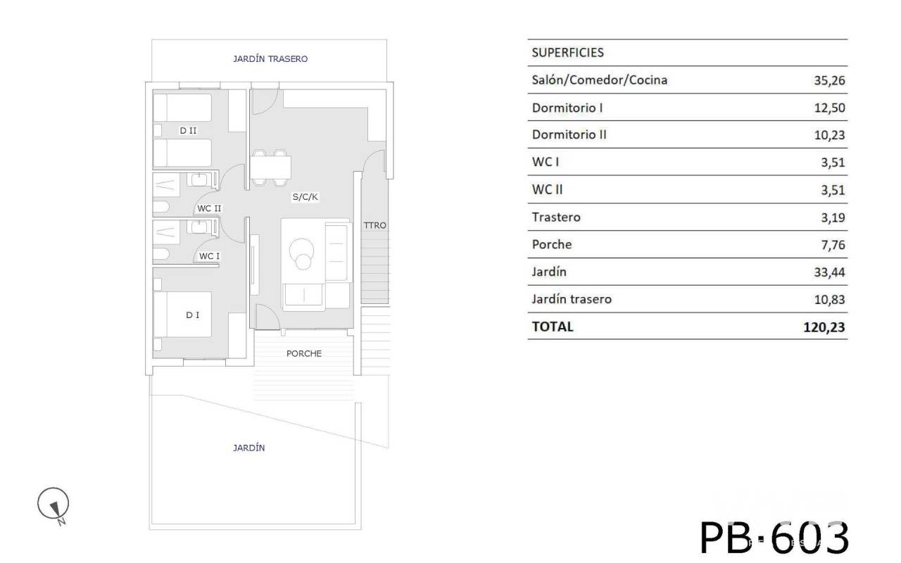 Neubau-Bungalows in San Miguel de Salinas mit 2 Gemeinschaftspools Mediterranes Leben in natürlicher Umgebung Entdecken Sie diese moderne Wohnanlage mit neu gebauten Bungalows in San Miguel de Salinas, einer Ortschaft im Süden der Provinz Alicante, die zur Region Vega Baja del Segura gehört. Diese charmante Gemeinde verbindet die Nähe zum Meer mit der Ruhe der Natur und ist somit ein idealer Ort sowohl zum Wohnen als auch für den Urlaub. Wohnmöglichkeiten für jeden Lebensstil Die Wohnanlage bietet Bungalow-Apartments mit 2 oder 3 Schlafzimmern, die in zwei Optionen unterteilt sind: Erdgeschoss mit privatem Garten und Abstellraum Obergeschoss mit privater Sonnenterrasse Jede Wohnung wurde mit einem modernen und funktionalen Ansatz entworfen und bietet Komfort, Tageslicht und Außenbereiche, um das ganze Jahr über das mediterrane Klima zu genießen. Gemeinschaftsbereiche für die ganze Familie Die Wohnanlage ist komplett umzäunt und verfügt über hervorragende Gemeinschaftsbereiche: 2 große Gemeinschaftspools für Erwachsene und Kinder Über 2.600 m² begrünte Außenanlagen Kinderspielplatz Diese Einrichtungen machen die Wohnanlage zu einem idealen Ort für Familien, Paare und Rentner, die Lebensqualität in einer sicheren und entspannten Umgebung suchen. Moderne Ausstattung und Energieeffizienz Die Wohnungen sind mit hochwertigen Materialien und sorgfältigen Oberflächen ausgestattet: Komplett eingerichtete Küche Außenschreinerei mit thermischer Trennung und Doppelverglasung Sicherheitstür Badezimmermöbel inklusive Vorinstallation für Split-Klimaanlage im Wohnzimmer und in den Schlafzimmern Ausgezeichnete Lage in der Nähe von Golfplätzen, Stränden und Dienstleistungen San Miguel de Salinas liegt strategisch günstig in der Nähe von touristischen und natürlichen Sehenswürdigkeiten: Golfplätze wie Vistabella, Las Colinas und Campoamor in weniger als 10 km Entfernung Strände von Orihuela Costa in 11 km Entfernung Lagunen von Torrevieja und La Mata in nur 8 km Entfernung Einkaufszentrum La Zenia Boulevard in 9 km Entfernung Flughafen Alicante-Elche 58 km (35 Minuten mit dem Auto) Internationaler Flughafen Murcia 63 km (1 Stunde mit dem Auto) Ihr neues Zuhause an der Costa Blanca Diese Immobilien sind eine ausgezeichnete Gelegenheit für alle, die Qualität, Komfort und eine gute Lage suchen. Kontaktieren Sie uns jetzt für weitere Informationen oder um einen Besichtigungstermin zu vereinbaren und den ersten Schritt in Ihr Leben an der Costa Blanca zu machen.