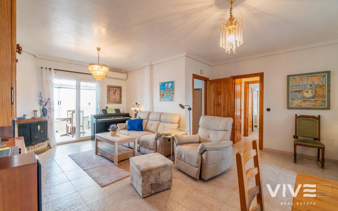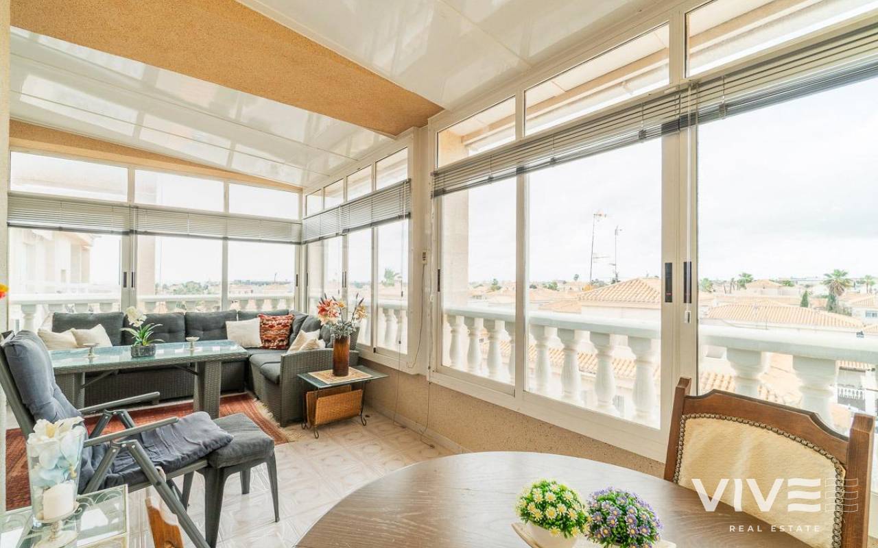 Schöne, geräumige und helle Penthouse mit spektakulärer Aussicht im Herzen von Playa Flamenca, wo zusätzlich zu Sonne den ganzen Tag können Sie auf mehr als 120 m2 und eine Doppelgarage für Fahrzeuge und Abstellraum zählen, für Sie und Ihre Familie.. . Das Gebiet in Playa Flamenca, wo es sich befindet, ist perfekt, da es nur wenige Gehminuten von der Zenia Boulevard Einkaufszentrum, kommunale Sportanlagen, Schulen, Geschäfte, Freizeitbereiche und natürlich, 10 Minuten von den besten Stränden von Orihuela Costa.. Die Wohnanlage ist eingezäunt und mit automatischen Toren für den Zugang von Fahrzeugen, und hat in ihr Parkplatz, wo Sie Ihr Auto auf der Straße zu verlassen, mit einem olympischen Größe Schwimmbad, 25x12 plus Gärten um ihn herum, und reichlich Parkplätze für Fahrzeuge.. . Das Anwesen ist sehr geräumig und offen, mit einer Hauptterrasse mit einer Aluminium- und Glasüberdachung, die nach Süden ausgerichtet ist und praktisch den ganzen Tag Sonne hat, so dass sie im Winter geschlossen werden kann und die Temperatur beibehält und das ganze Haus mit der Wärme der Aluminiumüberdachung heizt, aber auch durch die Fenster auf beiden Seiten des Hauses kann sie geöffnet werden und hat die Brise, die die Atmosphäre während der heißen Monate erfrischt und durch das Öffnen der Fenster der Überdachung, ist das Haus gut belüftet und kühl. Von allen Fenstern aus hat man das Gefühl von Unabhängigkeit und Privatsphäre, da es das höchstgelegene Haus in der Gegend ist und von keiner anderen Immobilie übersehen wird.. . Das Penthouse hat eine sehr gute Größe, praktisch 120 m2 gebaut, mit einem schönen Wohn-Esszimmer mit Kamin, eine geräumige Küche mit Frühstücksbar und eine Speisekammer-Waschküche, drei große Schlafzimmer mit Einbauschränken, der Master mit eigenem Bad und ein zweites komplettes Bad für den Rest der Wohnung. Von überall her hat man das Gefühl von Großzügigkeit und Geräumigkeit.. . Zusätzlich zu den Parkplätzen auf der Straße neben der Wohnung, auf denen Sie Ihr Fahrzeug vorübergehend abstellen können, um Ihre Einkäufe zu erledigen und direkt zur Wohnung zu gelangen, verfügt die Wohnung über eine eigene geschlossene Garage mit automatischem Gemeinschaftstor und einer privaten Tür mit Schloss, in der Sie Ihr Fahrzeug oder Ihre Fahrräder dauerhaft abstellen oder als Abstellraum auf sichere und bequeme Weise nutzen können.. . Die Wohnung hat Fußbodenheizung, ist möbliert, in perfektem Erhaltungszustand und sofort bezugsfertig.. . Es lohnt sich, die Immobilie zu besichtigen, um all ihre Vorteile zu prüfen und zu genießen.