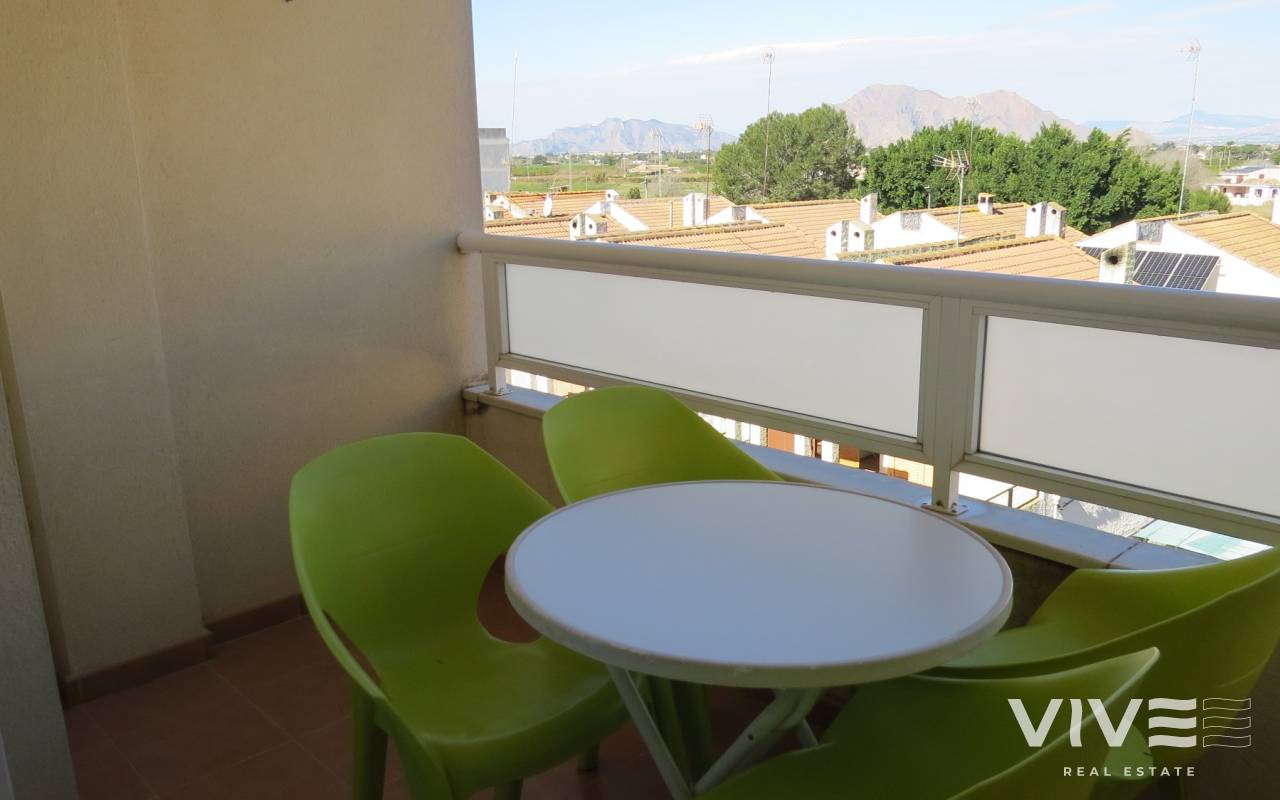 Almoradi ist eine charmante Stadt im Herzen der südlichen Costa Blanca, nur 16 km von den schönen Sandstränden entfernt, die diese Region zu bieten hat. Das Stadtzentrum bietet eine schöne Mischung aus Kulturen und alles, was Sie für Ihr tägliches Leben benötigen. Es gibt eine große Auswahl an Geschäften, Fachgeschäften, Restaurants, Bars und vieles mehr. Dank der zentralen Lage sind Sie in der Nähe verschiedener anderer schöner Städte, Golfplätze, Einkaufszentren, Naturschutzgebiete und Sehenswürdigkeiten. Die Wohnung verfügt über ein gemütliches Wohnzimmer, eine separate Küche, ein Hauptschlafzimmer mit eigenem Bad, ein zweites Schlafzimmer und ein Familienbad sowie eine schöne Terrasse mit Blick auf die Berge. Die Urbanisation verfügt über ein großes gemeinschaftliches Solarium mit Swimmingpool und Liegewiese. Zur Wohnung gehört auch ein Abstellraum. Dieses Haus verfügt über eine Klimaanlage (warm/kalt), Rollläden, eine Gegensprechanlage und wird möbliert verkauft. Zögern Sie nicht und vereinbaren Sie bald einen Besichtigungstermin! Summe: 173 Euro/Jahr Gemeinschaftsgebühren: 564 Euro/Jahr