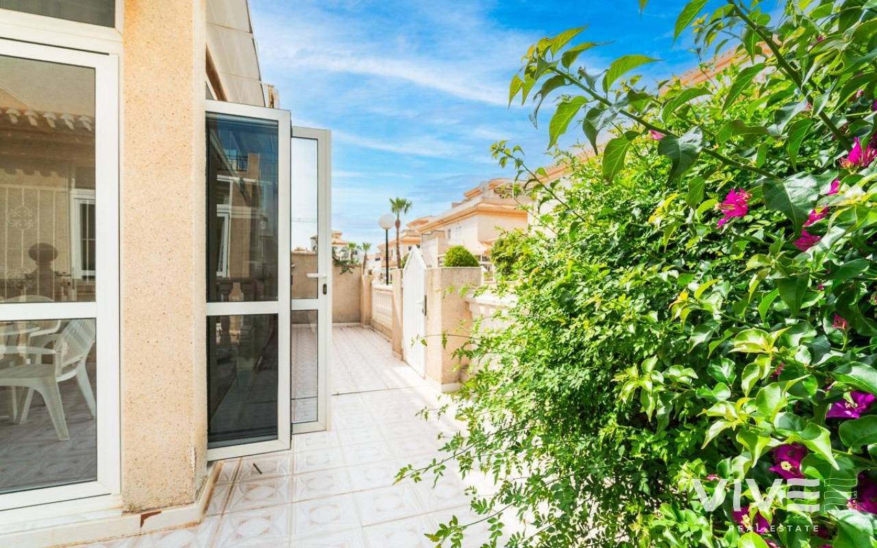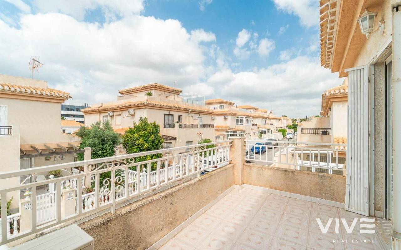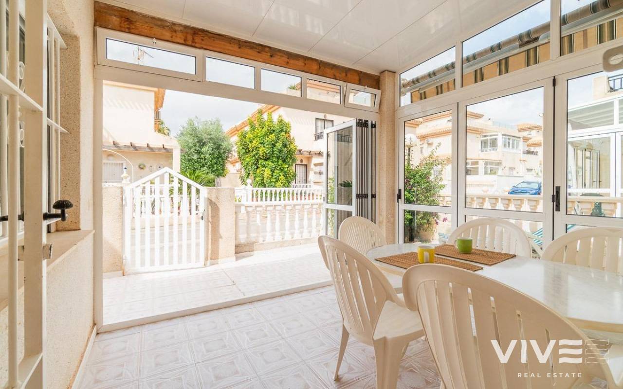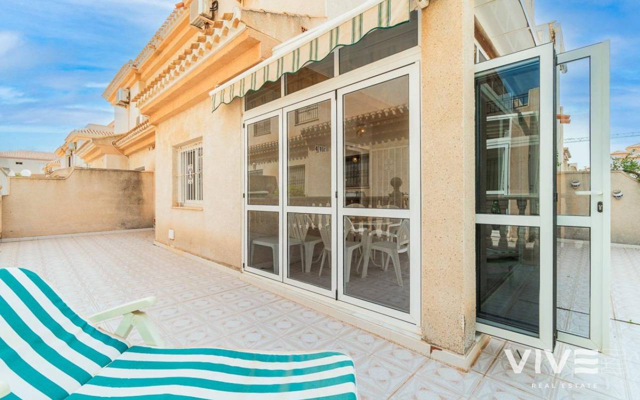 Geräumiges Vier-Ecken-Stadthaus, in einer Urbanisation mit Gemeinschaftspool im Zentrum von Playa Flamenca.. Ganz in der Nähe von Sport- und Freizeitanlagen, dem Einkaufszentrum Zenia Boulevard und anderen Einkaufsmöglichkeiten, nur wenige Gehminuten von den Stränden von Playa Flamenca und den öffentlichen Schulen in der Umgebung, dem Samstagsmarkt und Bars und Restaurants, aber zur gleichen Zeit in einer bewachten und ruhigen Anlage, mit Gemeinschaftspool mit Gärten, private Straßen nur von den Nachbarn und Parkplätze am Fuße der Häuser verwendet, um leicht mit Ihrer Familie, Koffer und andere Gegenstände von Ihrem Fahrzeug zu Ihrem Haus in ein paar Schritten zu erreichen.. . Das Anwesen verfügt über eine geflieste Eckterrasse, mit Pflanzen und genügend Platz zum Grillen, Lesen, Chillen oder wie Sie die mehr als 30 m2 davon nutzen möchten.. Im Eingangsbereich des Hauses wurde eine Überdachung aus Aluminium und Glas gebaut, die sich aufgrund der unschlagbaren SÜD-SÜDWEST-Lage des Hauses, die das ganze Jahr über Sonne garantiert, perfekt als Winterlounge eignet. Im Winter können Sie mit der oben erwähnten Überdachung einen warmen Bereich genießen, der wiederum den Rest des Hauses beheizt, und im Sommer können alle Glasfenster geöffnet werden, um frische Luft hereinzulassen.. . Das Anwesen bestand ursprünglich aus 3 Schlafzimmern, aber die Eigentümer beschlossen, das Schlafzimmer im Erdgeschoss in eine große unabhängige Küche mit Frühstücksbar zu ändern, so dass der Rest der Immobilie mit einem größeren Wohn- und Esszimmer mit einem sehr bequemen Layout für alle Arten von Familien.. . Wir beginnen, indem wir durch die bereits erwähnte verglaste Veranda durch die Sicherheitseingangstür in das L-förmige Wohn-Esszimmer mit großen Fenstern eintreten, um den Raum mit großer Helligkeit und Sonnenschein zu maximieren, der in das gesamte Erdgeschoss eintritt, in das Wohnzimmer mit Platz für eine Leseecke, einen TV-Bereich mit einem dekorativen Kamin und einen Essbereich, Im Erdgeschoss gibt es eine große U-förmige Küche mit Frühstücksbar, Möbeln und Elektrogeräten, ein Bad mit Dusche für die Nutzung des gesamten Erdgeschosses, sowie einen geräumigen Abstellraum unter dem Treppenhaus, um alle Gerümpel des Hauses zu verlassen.. . Im ersten Stock befinden sich die beiden Hauptschlafzimmer, beide mit Einbauschränken, eines davon mit Frühstücksbalkon, und ein komplettes Badezimmer, sowie eine Waschküche mit Waschmaschine und 80-Liter-Elektroheizung.. . Auf dem Dach des Anwesens haben wir eine Sonnenterrasse von 30 Quadratmetern, mit unverbaubarem Blick und Platz für Erholungsgebiete, Lesen oder einfach nur die Sonne und den freien Blick zu genießen.. Die Immobilie wurde gerade gestrichen und dekoriert und ist möbliert, so dass sie sofort genutzt werden kann und Sie sofort anfangen können, sie zu genießen.. . Es lohnt sich, das Haus zu besichtigen, um die vielen Möglichkeiten zu sehen, die es bietet: die sonnige Lage, die sehr ruhige Umgebung, die Parkmöglichkeiten, der perfekte Zustand und die sofortige Verfügbarkeit des Hauses.