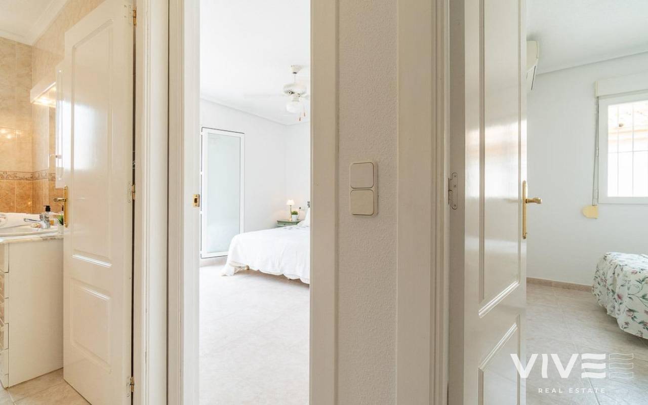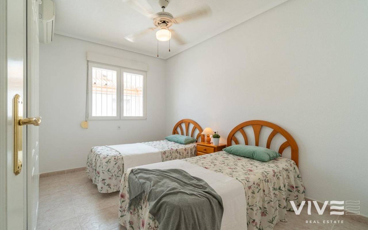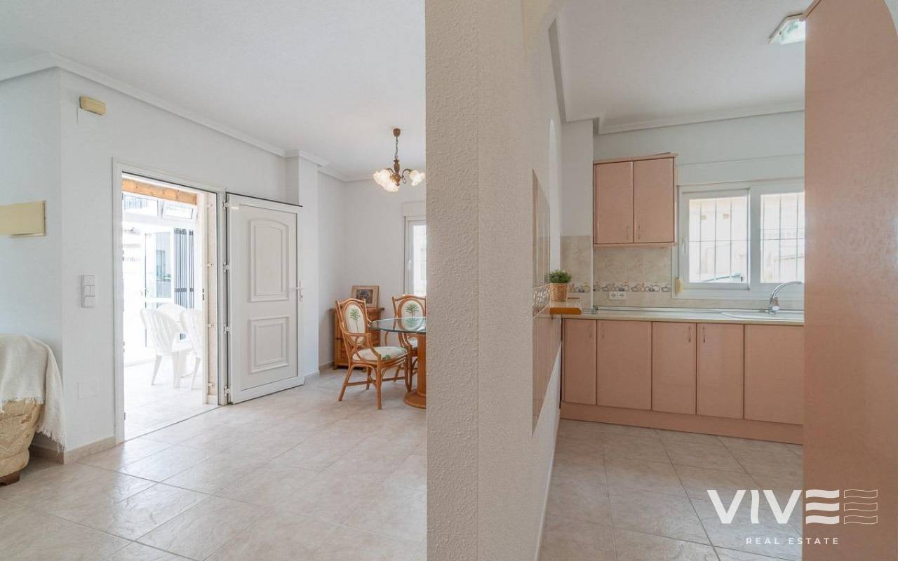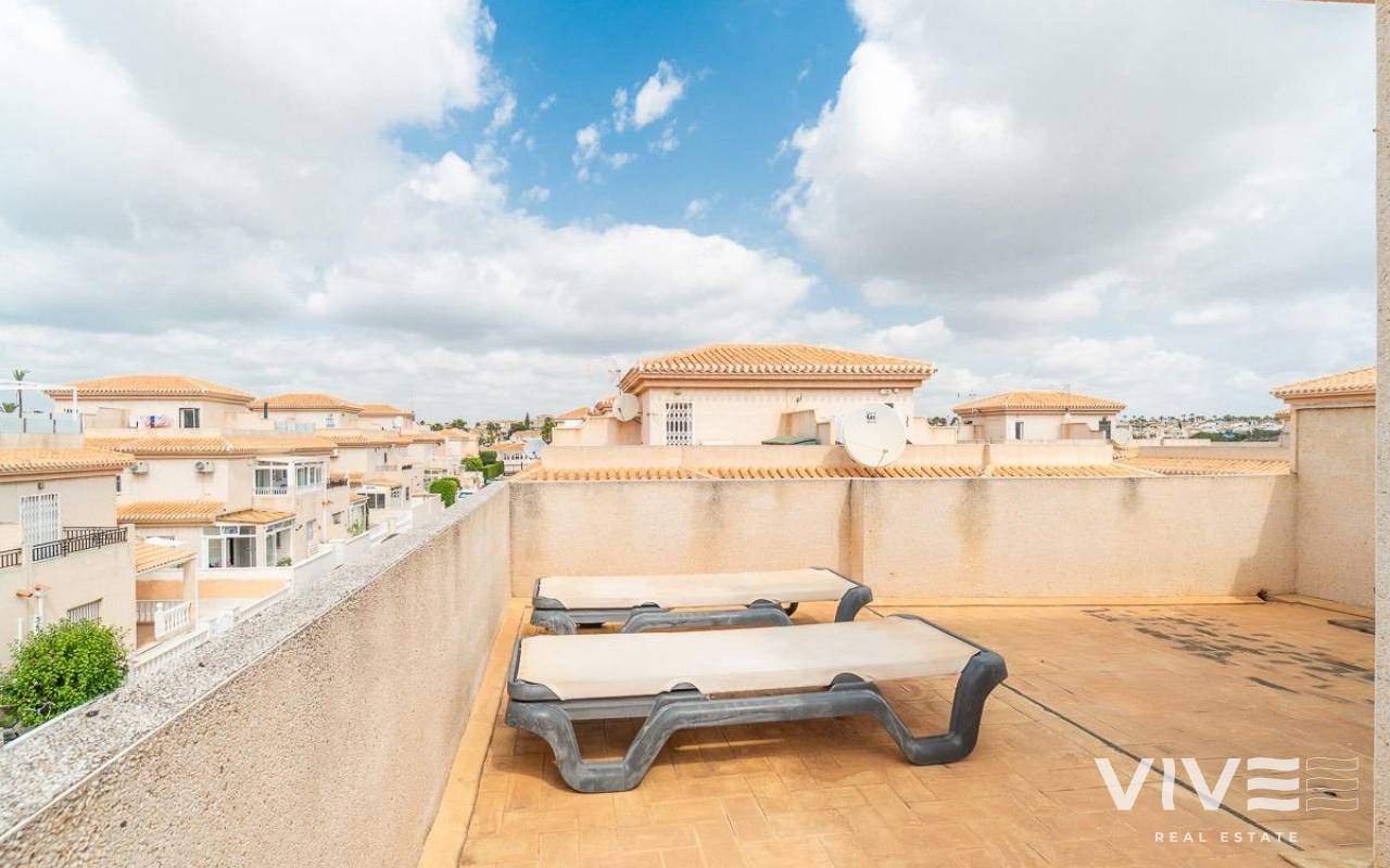 Geräumiges Vier-Ecken-Stadthaus, in einer Urbanisation mit Gemeinschaftspool im Zentrum von Playa Flamenca.. Ganz in der Nähe von Sport- und Freizeitanlagen, dem Einkaufszentrum Zenia Boulevard und anderen Einkaufsmöglichkeiten, nur wenige Gehminuten von den Stränden von Playa Flamenca und den öffentlichen Schulen in der Umgebung, dem Samstagsmarkt und Bars und Restaurants, aber zur gleichen Zeit in einer bewachten und ruhigen Anlage, mit Gemeinschaftspool mit Gärten, private Straßen nur von den Nachbarn und Parkplätze am Fuße der Häuser verwendet, um leicht mit Ihrer Familie, Koffer und andere Gegenstände von Ihrem Fahrzeug zu Ihrem Haus in ein paar Schritten zu erreichen.. . Das Anwesen verfügt über eine geflieste Eckterrasse, mit Pflanzen und genügend Platz zum Grillen, Lesen, Chillen oder wie Sie die mehr als 30 m2 davon nutzen möchten.. Im Eingangsbereich des Hauses wurde eine Überdachung aus Aluminium und Glas gebaut, die sich aufgrund der unschlagbaren SÜD-SÜDWEST-Lage des Hauses, die das ganze Jahr über Sonne garantiert, perfekt als Winterlounge eignet. Im Winter können Sie mit der oben erwähnten Überdachung einen warmen Bereich genießen, der wiederum den Rest des Hauses beheizt, und im Sommer können alle Glasfenster geöffnet werden, um frische Luft hereinzulassen.. . Das Anwesen bestand ursprünglich aus 3 Schlafzimmern, aber die Eigentümer beschlossen, das Schlafzimmer im Erdgeschoss in eine große unabhängige Küche mit Frühstücksbar zu ändern, so dass der Rest der Immobilie mit einem größeren Wohn- und Esszimmer mit einem sehr bequemen Layout für alle Arten von Familien.. . Wir beginnen, indem wir durch die bereits erwähnte verglaste Veranda durch die Sicherheitseingangstür in das L-förmige Wohn-Esszimmer mit großen Fenstern eintreten, um den Raum mit großer Helligkeit und Sonnenschein zu maximieren, der in das gesamte Erdgeschoss eintritt, in das Wohnzimmer mit Platz für eine Leseecke, einen TV-Bereich mit einem dekorativen Kamin und einen Essbereich, Im Erdgeschoss gibt es eine große U-förmige Küche mit Frühstücksbar, Möbeln und Elektrogeräten, ein Bad mit Dusche für die Nutzung des gesamten Erdgeschosses, sowie einen geräumigen Abstellraum unter dem Treppenhaus, um alle Gerümpel des Hauses zu verlassen.. . Im ersten Stock befinden sich die beiden Hauptschlafzimmer, beide mit Einbauschränken, eines davon mit Frühstücksbalkon, und ein komplettes Badezimmer, sowie eine Waschküche mit Waschmaschine und 80-Liter-Elektroheizung.. . Auf dem Dach des Anwesens haben wir eine Sonnenterrasse von 30 Quadratmetern, mit unverbaubarem Blick und Platz für Erholungsgebiete, Lesen oder einfach nur die Sonne und den freien Blick zu genießen.. Die Immobilie wurde gerade gestrichen und dekoriert und ist möbliert, so dass sie sofort genutzt werden kann und Sie sofort anfangen können, sie zu genießen.. . Es lohnt sich, das Haus zu besichtigen, um die vielen Möglichkeiten zu sehen, die es bietet: die sonnige Lage, die sehr ruhige Umgebung, die Parkmöglichkeiten, der perfekte Zustand und die sofortige Verfügbarkeit des Hauses.