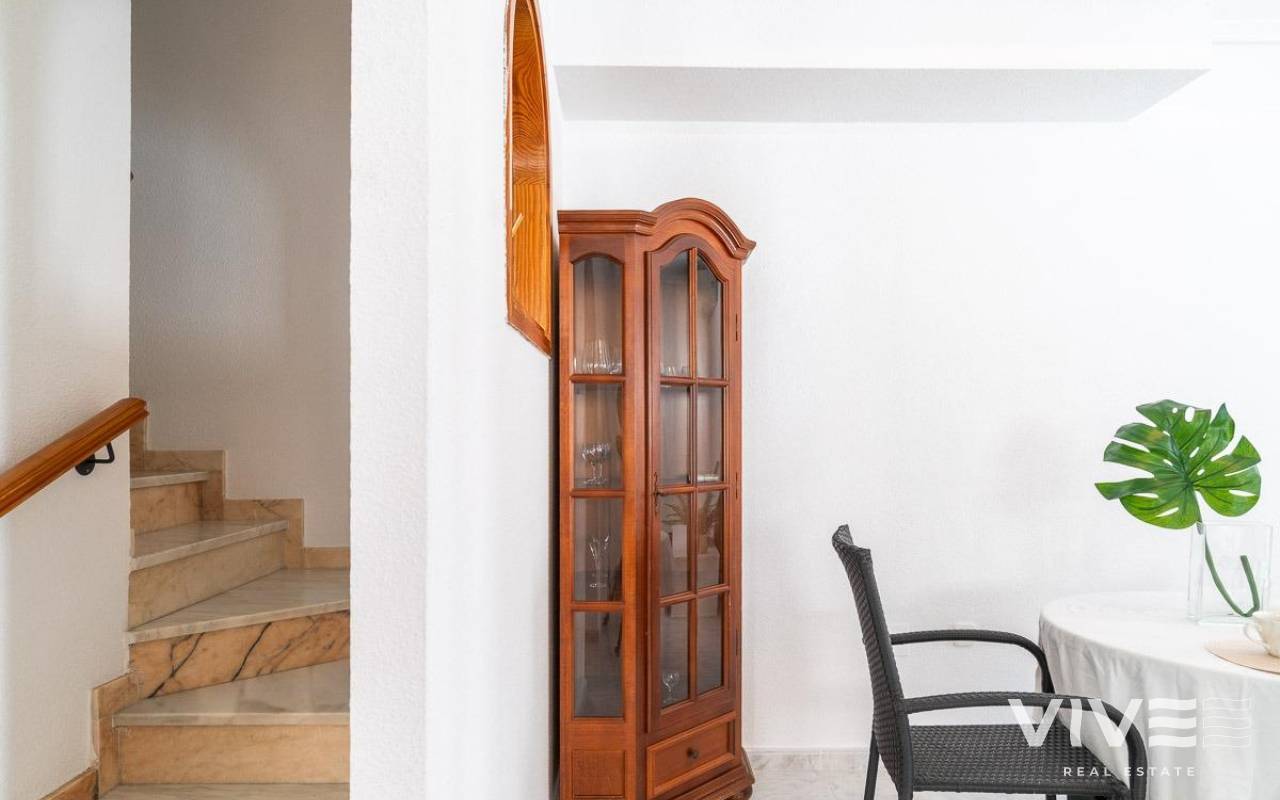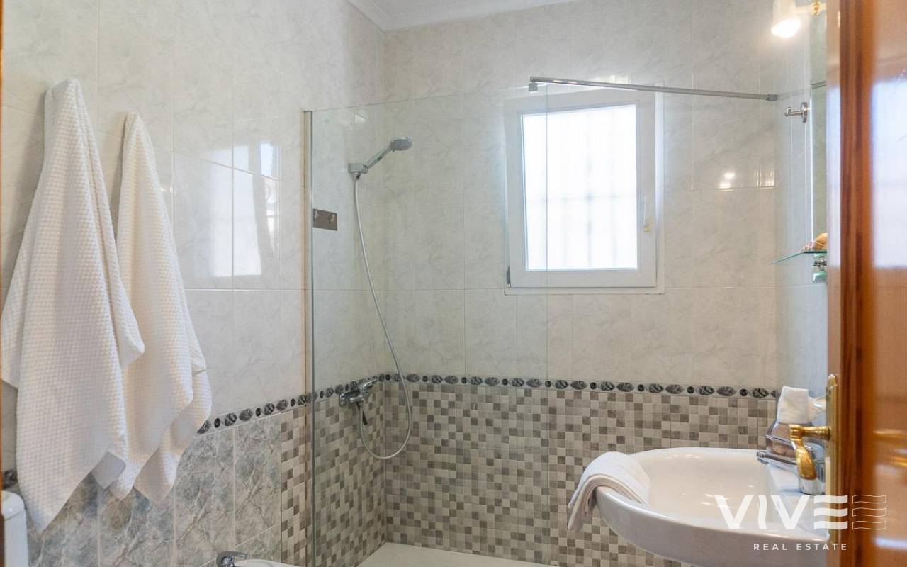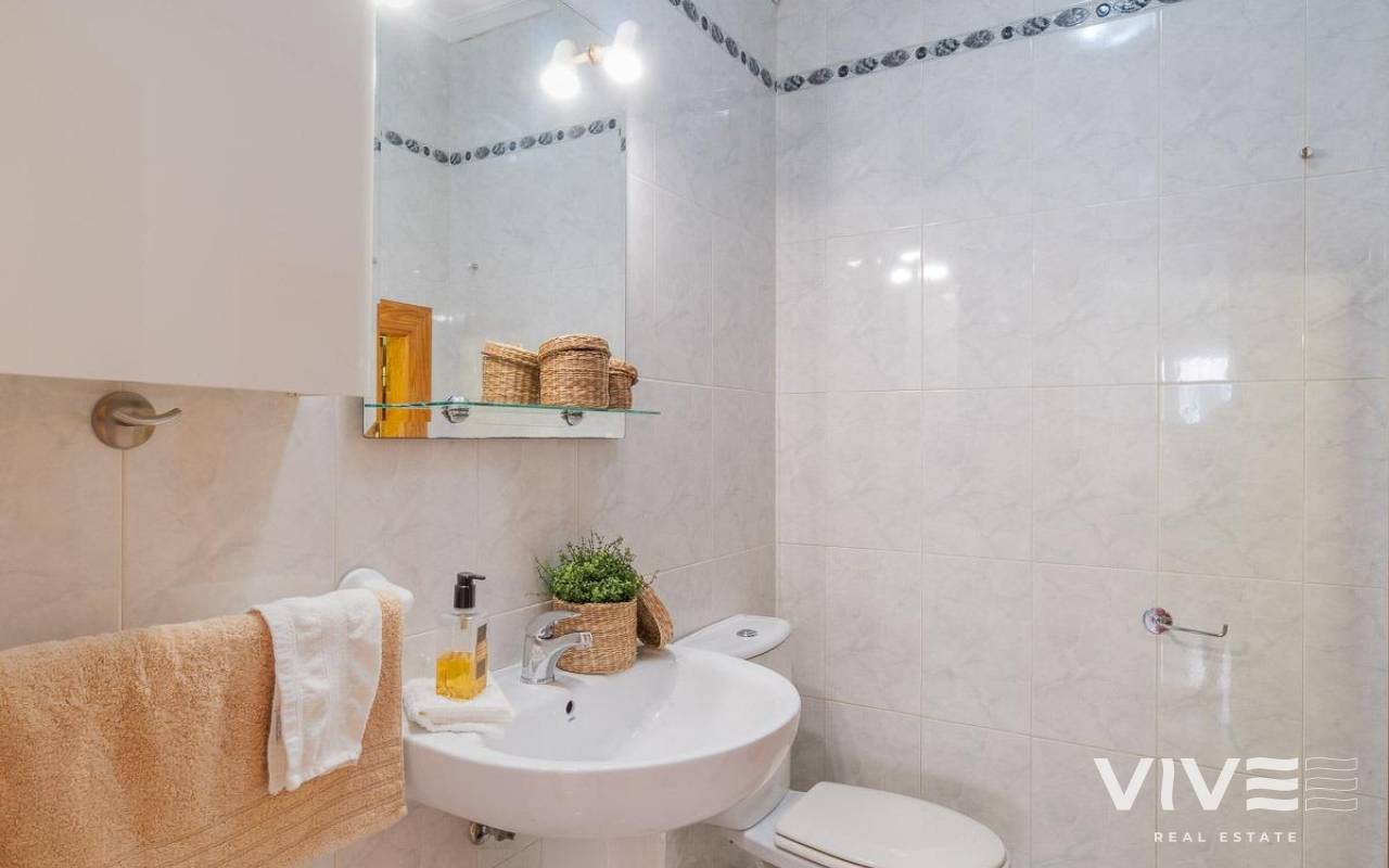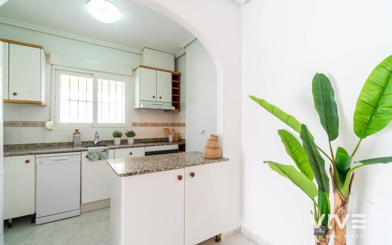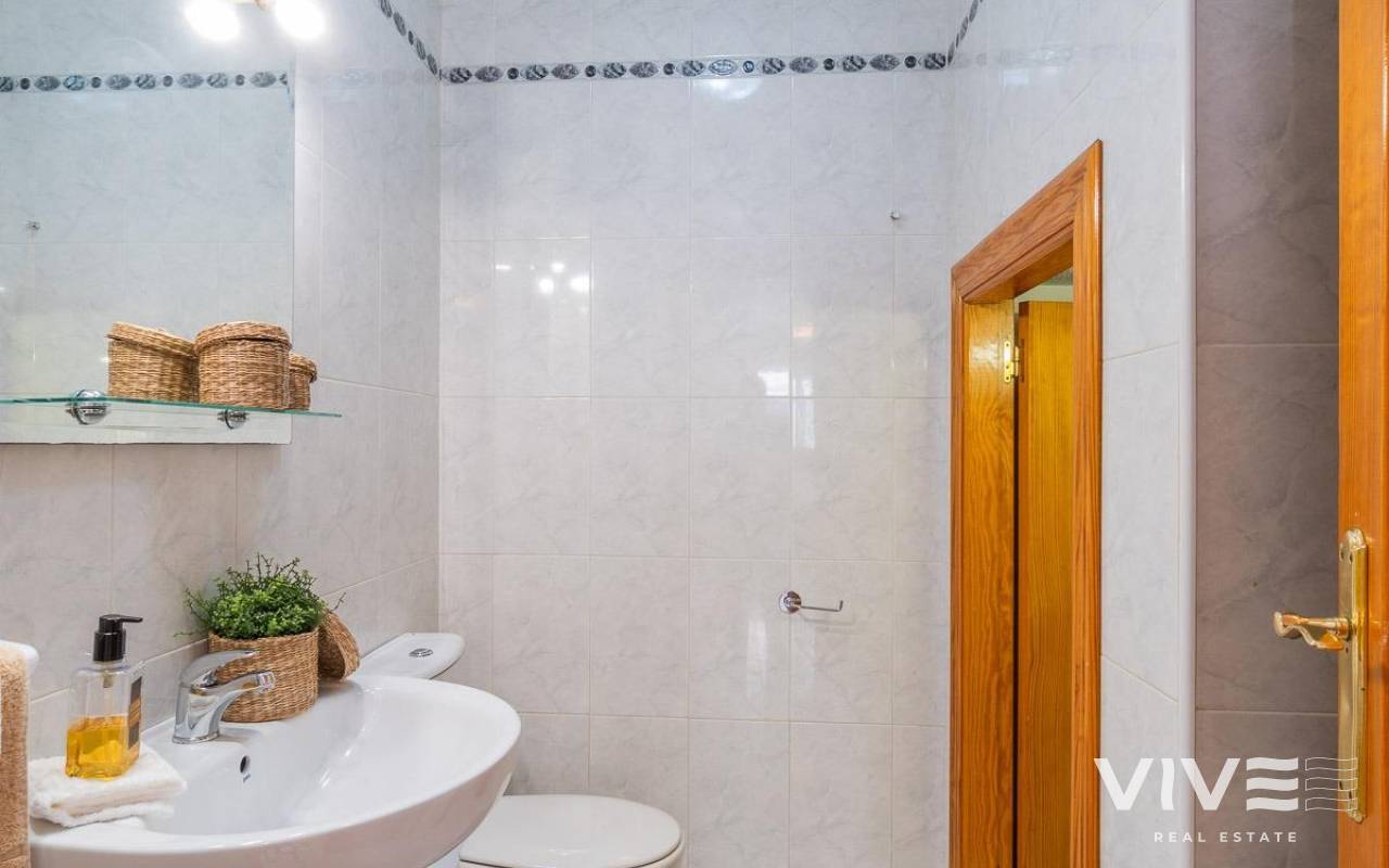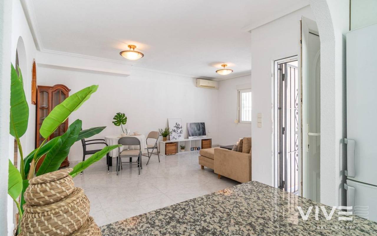 Geräumiges Doppelhaus mit vier Eckhäusern in einer Wohnanlage mit Gemeinschaftspool im Zentrum von Playa Flamenca.. Ganz in der Nähe von Sport- und Freizeitbereichen, dem Einkaufszentrum Zenia Boulevard und anderen Einkaufsmöglichkeiten. Die Strände von Playa Flamenca, die örtlichen öffentlichen Schulen, der Samstagsmarkt sowie Bars und Restaurants sind nur einen kurzen Spaziergang entfernt. Dennoch befindet sich das Haus in einer ruhigen, geschlossenen Anlage mit Gemeinschaftspool und -gärten, privaten Straßen, die nur von Anwohnern genutzt werden, und Parkplätzen am Fuße der Häuser, sodass Sie mit Ihrer Familie, Ihren Koffern und anderen Gegenständen in nur wenigen Schritten von Ihrem Fahrzeug zu Ihrem Haus gelangen.. . Das Haus verfügt über eine geflieste Eckterrasse mit Pflanzenflächen und bietet ausreichend Platz für einen Grillplatz, eine Leseecke, einen Ruhebereich oder wie auch immer Sie die über 30 m² große Fläche nutzen möchten. Es gibt außerdem einen Aluminium-Abstellraum für Koffer, Werkzeuge und mehr.. Die Eingangsveranda des Hauses ist mit einer Aluminium-Glas-Einhausung ausgestattet und eignet sich dank der unschlagbaren Süd-Südwest-Lage des Hauses ideal als Winterwohnzimmer. Dies sorgt das ganze Jahr über für Sonnenschein. Im Winter genießen Sie dank der Einhausung einen warmen Raum, der gleichzeitig den Rest des Hauses beheizt. Im Sommer lassen sich alle Glasfenster öffnen, um frische Luft hereinzulassen.. . Das Haus verfügt über drei Schlafzimmer, eines davon im Erdgeschoss, und ein Badezimmer mit Dusche auf derselben Etage. Dadurch müssen ältere Menschen mit eingeschränkter Mobilität oder Menschen mit Behinderung keine Treppen steigen, was die Wohnung für Familien aller Art sehr praktisch macht.. . Die Beschreibung beginnt mit dem Betreten der bereits erwähnten verglasten Veranda durch die Sicherheitseingangstür in das L-förmige Wohn- und Esszimmer mit großen Fenstern, die für maximalen Raumkomfort sorgen und viel Licht und Sonnenlicht in das gesamte Erdgeschoss lassen. Das Wohnzimmer bietet Platz für eine Leseecke, einen Fernsehbereich und einen Essbereich sowie eine offene Küche mit Frühstückstresen, ausgestattet mit Schränken und Geräten. Im Erdgeschoss befindet sich ein Badezimmer mit Dusche, das auf der gesamten Etage genutzt werden kann, sowie ein geräumiger Abstellraum unter dem Treppenhaus für alle Haushaltsgegenstände, die nicht in den oben genannten Abstellraum auf der Außenterrasse passten.. . Im ersten Stock befinden sich die beiden Hauptschlafzimmer, beide mit Einbauschränken, eines davon mit Frühstücksbalkon, und ein komplettes Badezimmer sowie eine Waschküche mit Waschmaschine und einem 80-Liter-Elektroboiler.. . Auf dem Dach des Hauses befindet sich eine 30 Quadratmeter große Sonnenterrasse mit freiem Blick und Platz zum Entspannen, Lesen oder einfach zum Genießen der Sonne und des freien Ausblicks.. Das Haus wurde gerade gestrichen und dekoriert, und sobald es möbliert ist, können Sie es genießen.. . Ein Besuch lohnt sich, um die vielen Möglichkeiten des Anwesens zu entdecken – dank seiner sonnigen Lage, der sehr ruhigen Lage, der guten Parkmöglichkeiten und der Tatsache, dass es sich in einem perfekten Zustand befindet und sofort bezugsfertig ist.