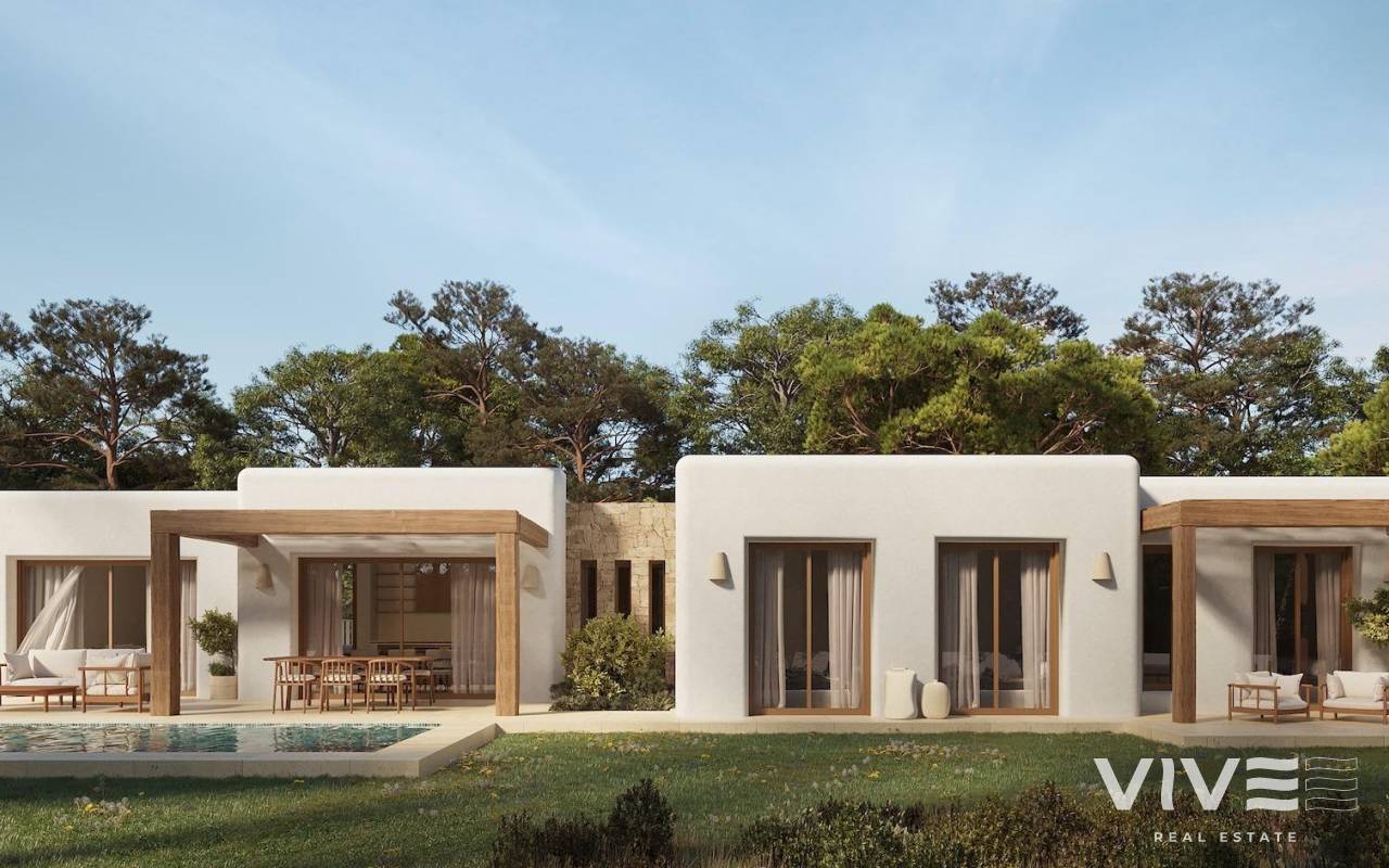 Villen im mediterranen Stil in La Fustera, Benissa Costa Exklusive Neubau-Villen an der nördlichen Costa Blanca Entdecken Sie eine außergewöhnliche Gelegenheit, eine von nur vier Einfamilienhäusern in der prestigeträchtigen Gegend von La Fustera, Benissa Costa, zu erwerben. Diese neu erbauten Villen verbinden auf perfekte Weise den Stil Ibizas mit mediterraner Eleganz und bieten ein ruhiges Leben nur 1 km vom Strand von La Fustera und eine kurze Autofahrt von Calpe, Moraira und Benissa entfernt. Ebenerdiges Wohnen auf großzügigen Grundstücken Jede Villa ist auf Komfort und Bequemlichkeit ausgelegt und verfügt über: 3 Schlafzimmer und 2 Badezimmer auf einer Ebene Wohnfläche von 139,61 m² mit offenem Grundriss Private Grundstücke von über 800 m², die viel Platz im Freien bieten Große Terrassen (68,54 m²) mit schattigen Pergolen Privater Swimmingpool (29,50 m²) ideal für sonnenverwöhnte Tage Die Häuser sind sorgfältig positioniert, um Privatsphäre und Ruhe zu gewährleisten, und von üppiger Vegetation umgeben, die einen echten Rückzugsort im Mittelmeerraum schafft. Von Ibiza inspirierte Architektur Mit klaren Linien, kubischen Volumen und der Verwendung natürlicher Materialien wie Holz und Stein spiegelt das Design den ruhigen und raffinierten Charakter Ibizas wider. Jedes Element wurde so gestaltet, dass es sich harmonisch in die Umgebung einfügt und sowohl innen als auch außen eine warme und zeitlose Atmosphäre schafft. Komfort und Energieeffizienz Die Villen wurden nach höchsten Standards gebaut, unter Verwendung energieeffizienter Bautechniken und hochwertiger Oberflächen. Die geräumigen und hellen Innenräume gehen nahtlos in die Außenterrassen über, sodass Sie das ganze Jahr über das mediterrane Klima genießen können. Strategische Lage in der Nähe aller wichtigen Einrichtungen Diese Wohnanlage befindet sich in einer wenig bebauten Wohngegend und bietet die perfekte Balance zwischen Natur und guter Anbindung. Sehenswürdigkeiten in der Nähe: Strand La Fustera – 1 km Stadtzentren von Calpe, Moraira und Benissa – 8 bis 10 km Club de Golf Ifach – 7 km Yachthafen von Moraira – 8 km Flughafen Alicante – 84 km Einkaufszentrum La Marina (Ondara) – 35 km Ihr ideales Zuhause am Mittelmeer erwartet Sie Ob Sie einen dauerhaften Wohnsitz, einen Urlaubsort oder eine Investitionsimmobilie suchen, diese Villen in La Fustera bieten eine unschlagbare Kombination aus Lage, Qualität und Design. Kontaktieren Sie uns noch heute, um mehr zu erfahren oder eine Besichtigung dieser exklusiven Wohnanlage zu vereinbaren.