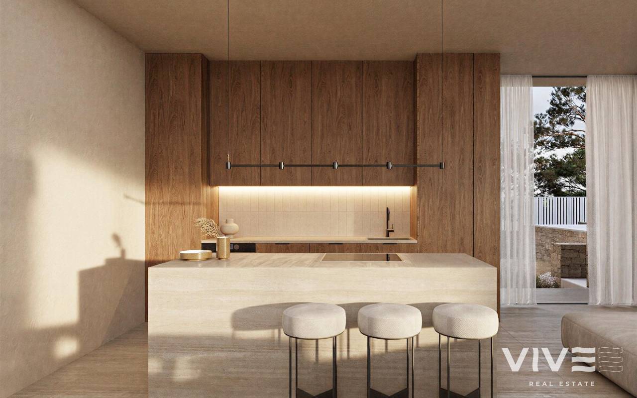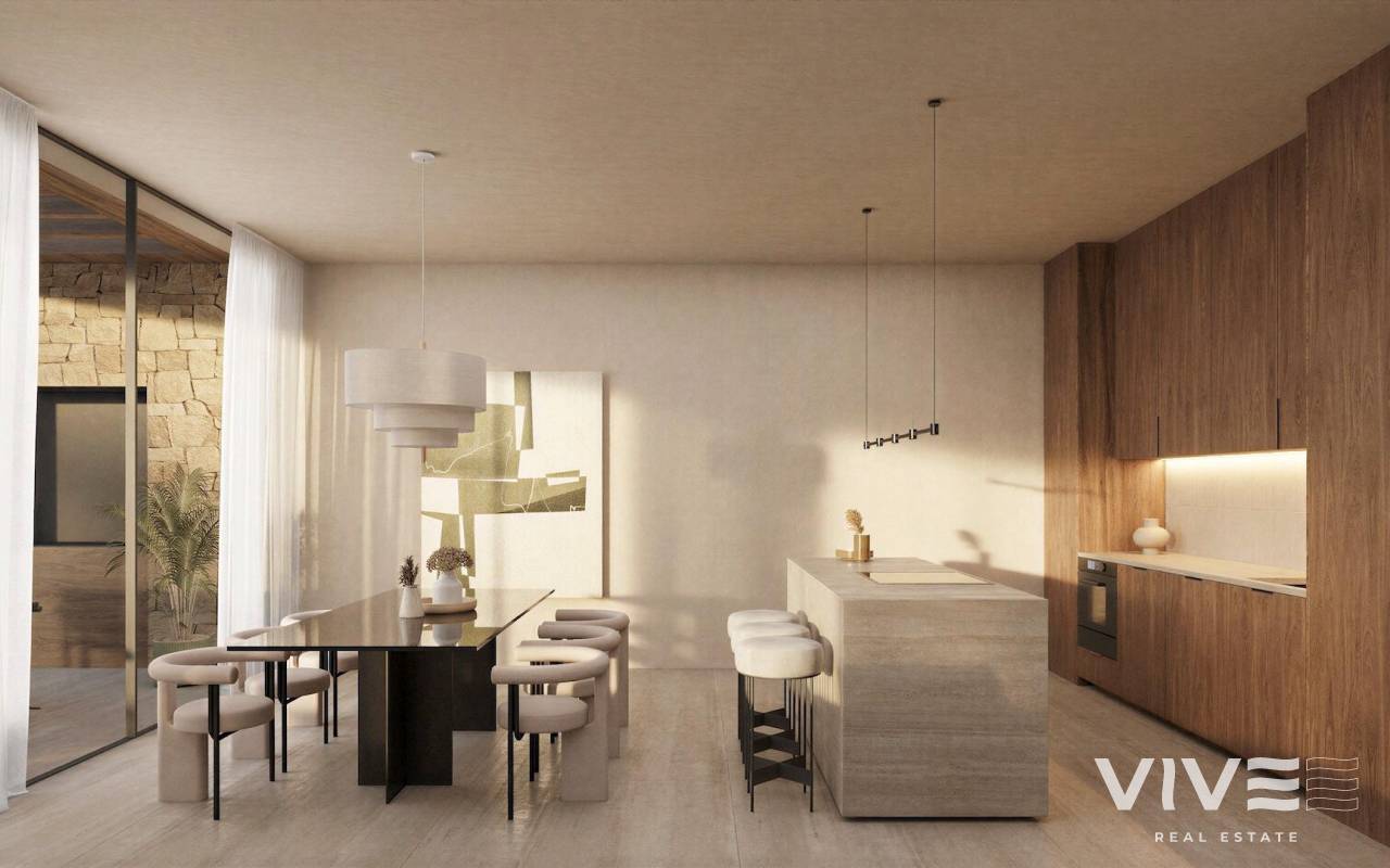 Moderne Villa mit Panoramablick auf das Meer in La Fustera, Benissa Costa Diese exklusive Neubauvilla, die von einem renommierten Architekten entworfen und von einem lokalen Bauträger mit mehr als 20 Jahren Erfahrung entwickelt wurde, befindet sich auf einem 800 m² großen Grundstück, nur wenige Schritte vom Strand La Fustera entfernt. Die Architektur verbindet mediterrane Wärme mit zeitgenössischer Eleganz und kombiniert Naturstein, Holz und sanfte, neutrale Farbtöne, die sich nahtlos in die Küstenlandschaft einfügen. Mit einer Gesamtfläche von 716 m², verteilt auf drei Ebenen – Untergeschoss, Erdgeschoss und erster Stock – bietet die Villa eine perfekte Balance zwischen Funktionalität, Design und Komfort. Untergeschoss Die untere Etage mit 105,97 m² ist sowohl auf Praktikabilität als auch auf Freizeitgestaltung ausgelegt. Sie umfasst einen voll ausgestatteten Fitnessraum, eine Waschküche und Technikräume, mit der Möglichkeit, zusätzliche Räume als Weinkeller, Kino oder Mehrzweckraum zu nutzen. Auf dieser Ebene befinden sich auch das Filtersystem und die Wassertanks des Pools, wodurch eine effiziente Verwaltung aller technischen Anlagen gewährleistet ist. Erdgeschoss Die Hauptetage mit 137,93 m² präsentiert sich in einem hellen, offenen Grundriss, der die Essenz des mediterranen Lebens einfängt. Das geräumige Wohnzimmer, der Essbereich und die Küche öffnen sich durch große, vom Boden bis zur Decke reichende Fenster zur Hauptterrasse und zum Infinity-Pool und rahmen den unglaublichen Panoramablick auf das Meer ein, der den Charakter dieses Hauses ausmacht. Zwei Doppelschlafzimmer, ein komplettes Badezimmer und eine Gästetoilette vervollständigen diese Etage und bieten Komfort und Funktionalität. Im Außenbereich spendet eine Holzpergola Schatten für den Lounge- und Essbereich, der von üppigen Gärten, Sonnenterrassen und einem 59,40 m² großen Infinity-Pool umgeben ist, der optisch mit dem Meer verschmilzt. Erste Etage Die obere Etage mit 70,19 m² ist für die Master-Suite reserviert – ein privater Rückzugsort mit begehbarem Kleiderschrank, eigenem Bad und einer großen privaten Terrasse mit atemberaubendem Blick auf das Mittelmeer. Ein zweites Schlafzimmer oder ein Büro vervollständigen diese Etage, die auch Zugang zu einem 25,02 m² großen Solarium bietet, ideal zum Entspannen unter der Sonne und zum Genießen der Ruhe der Umgebung. Außenbereich und Lage Diese Immobilie befindet sich in einer ruhigen Wohnstraße, umgeben von modernen Villen, und genießt eine außergewöhnliche Lage, nur 3 Gehminuten vom Strand La Fustera (150 m), der Mandala Beach Bar & Restaurant und wichtigen Annehmlichkeiten wie Supermärkten und lokalen Dienstleistungen entfernt. Diese Villa wurde mit Schwerpunkt auf Licht, Raum und nahtlosem Übergang zwischen Innen- und Außenbereich entworfen und verkörpert den modernen mediterranen Lebensstil – elegant, entspannt und in perfekter Harmonie mit dem spektakulären Panoramablick auf das Meer. Sichern Sie sich Ihre Traumvilla in La Fustera, Benissa Costa, und genießen Sie den ultimativen mediterranen Lebensstil mit atemberaubendem Meerblick und unvergleichlichem Komfort.
