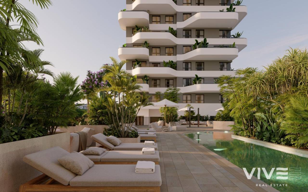 Moderne Neubauwohnungen in Calpe Nur 450 m von Playa del Cantal Roig entfernt Eine zeitgemäße Wohnanlage in Meeresnähe Diese exklusive Wohnanlage umfasst 120 Neubauwohnungen mit 2 und 3 Schlafzimmern, verteilt auf drei moderne Türme. Nur 450 m von Playa del Cantal Roig entfernt und in der ruhigen Gegend von El Saladar gelegen, bietet die Anlage die perfekte Mischung aus Leben an der Küste und urbaner Annehmlichkeit. Das Zentrum von Calpe ist nur wenige Minuten entfernt, während die atemberaubenden Salinas de Calpe und der berühmte Naturpark Peñón de Ifach eine einzigartige natürliche Kulisse bilden. Von der dritten Etage aufwärts hat man Meerblick. Erstklassige Annehmlichkeiten für einen außergewöhnlichen Lebensstil Die geschlossene Wohnanlage wurde für maximalen Komfort konzipiert und bietet eine Vielzahl von Annehmlichkeiten, darunter einen Swimmingpool für Erwachsene, ein Kinderbecken, eine Schwimmbahn, einen Paddle-Tennisplatz, einen Fitnessraum, einen Social Club, Landschaftsgärten mit Spielplätzen, Fahrradabstellplätze und digitale Paketschließfächer. Sicherheit und kontrollierter Zugang werden durch einen Concierge-Service gewährleistet. Parkplätze und Abstellräume sind im Preis inbegriffen. Elegante Wohnungen mit hochwertiger Ausstattung Jede Wohnung verbindet zeitgenössisches Design mit funktionalen Grundrissen und einer ausgezeichneten Ausrichtung. Geräumige Terrassen stehen im Mittelpunkt und bieten den idealen Rahmen, um das mediterrane Klima zu genießen. Die Wohnungen verfügen über Außenfenster und -türen mit thermischer Trennung, motorisierte Rollläden, gepanzerte Eingangstüren, voll ausgestattete Küchen mit Geräten, Klimaanlagen und aerothermische Warmwassersysteme. Entdecken Sie Calpe und seine hervorragende Umgebung Calpe ist einer der bekanntesten Küstenorte der Costa Blanca und für seine Strände, seinen maritimen Lebensstil und sein reiches valencianisches Erbe bekannt. Die Lage bietet eine unschlagbare Anbindung: ca. 80 km zum Flughafen Alicante, 12 km nach Altea, 25 km nach Benidorm und nahtlose Verbindungen über die Autobahn A7 und die Straße N332. Golfbegeisterte finden mehrere Golfplätze im Umkreis von 25 km, während der Real Club Náutico de Calpe und der Yachthafen Puerto Blanco weniger als 3 km entfernt sind. Ihr ideales Zuhause am Mittelmeer Erleben Sie eine neue Art des Wohnens in Calpe mit modernen Häusern, die auf Komfort, Natur und Entspannung ausgelegt sind. Kontaktieren Sie uns noch heute, um einen Besichtigungstermin zu vereinbaren.