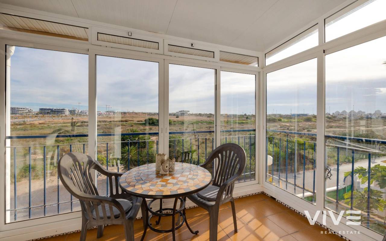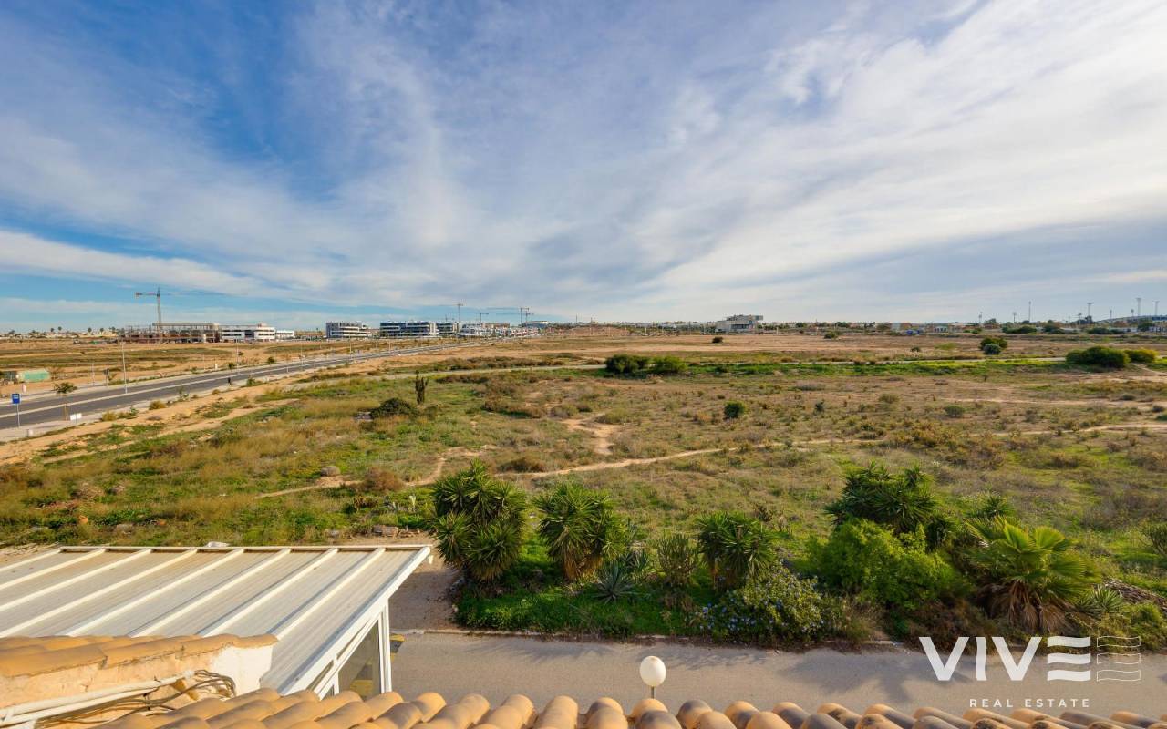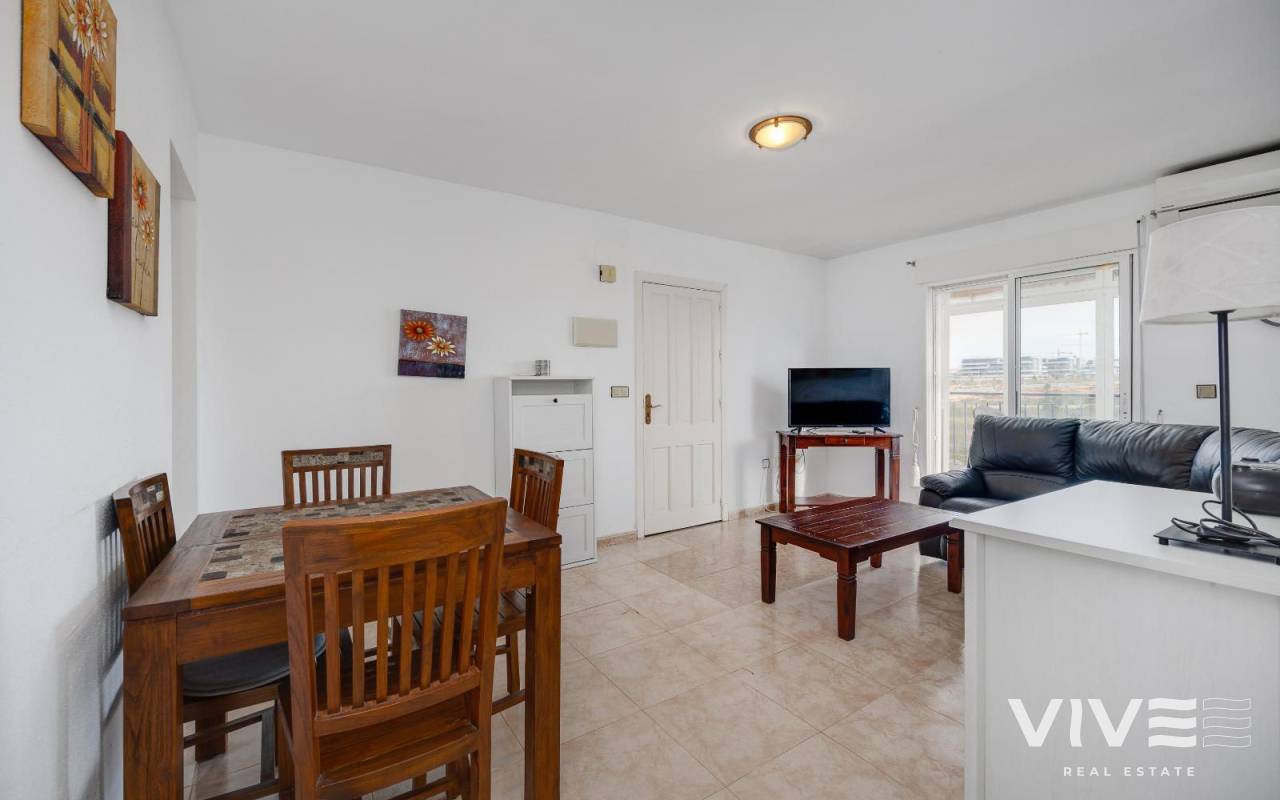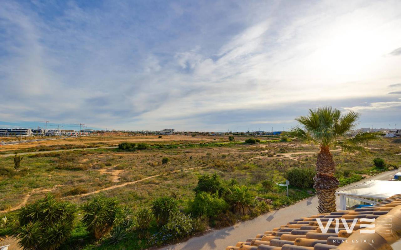 Charmante Dachgeschosswohnung in Jardín del Mar, in der Nähe von Carrefour und dem Einkaufszentrum Habaneras. Diese ruhige und gut erreichbare Wohngegend von Torrevieja zählt zu den begehrtesten in der Region. Die Wohnung verfügt über drei Schlafzimmer, ein helles Wohn-Esszimmer, eine voll ausgestattete Küche, ein Badezimmer und eine Terrasse, die sich ideal für den Alltag eignet. Das Highlight ist das großzügige private Solarium – ein vielseitiger Raum, in dem Sie das ganze Jahr über die Sonne genießen, eine gemütliche Chill-out-Ecke (mit Grill oder Whirlpool) einrichten und sich so perfekt zum Entspannen in privater Atmosphäre oder zum Empfangen von Freunden einrichten können. Die Wohnung befindet sich in einem gepflegten Wohngebiet, in der Nähe von Supermärkten, Parks und öffentlichen Verkehrsmitteln und nur wenige Minuten vom Stadtzentrum und den Stränden entfernt. Sie bietet Komfort, eine großartige Lage und einen wirklich außergewöhnlichen Außenbereich.