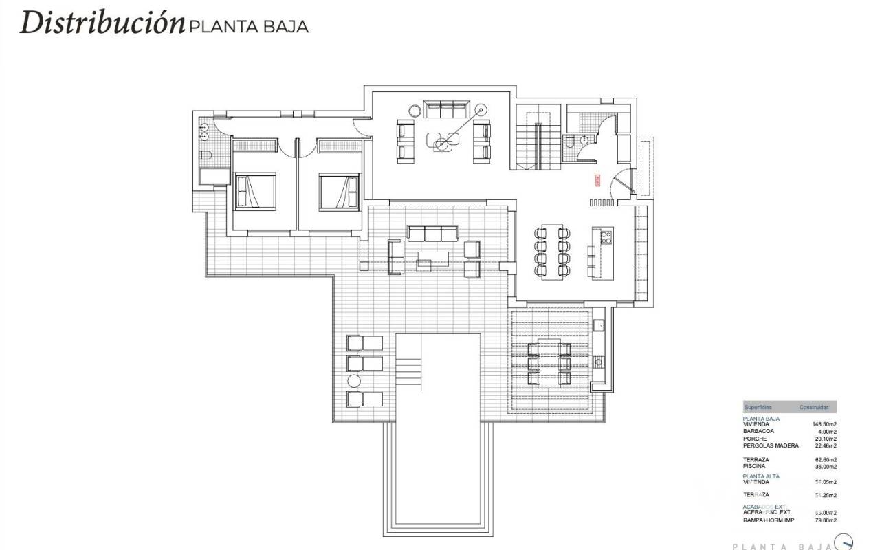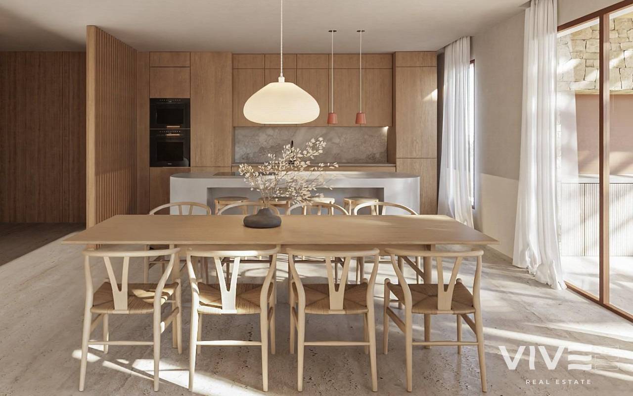 Luxuriöse Villa im ibizenkischen Stil in La Fustera (Benissa Costa) Nur 1 km vom Strand entfernt Mediterranes Refugium an der nördlichen Costa Blanca Diese exklusive Kollektion von vier Einfamilienvillen befindet sich in La Fustera, einer prestigeträchtigen Wohngegend von Benissa an der nördlichen Costa Blanca. Diese Häuser verbinden den Charme der ibizenkischen Architektur mit zeitgenössischer mediterraner Eleganz und bieten Privatsphäre, Meerblick und einen raffinierten Lebensstil in einer der begehrtesten Küstenenklaven der Region. La Fustera ist bekannt für seine kristallklaren Buchten, seine natürliche Umgebung und seine Wohnatmosphäre mit geringer Bevölkerungsdichte. Die Villen liegen nur 1 km vom Strand von La Fustera entfernt und bieten einfachen Zugang zu einem der schönsten Strände der Gegend mit Strandrestaurants und malerischen Wanderwegen entlang der Küste. Erstklassige Lage in der Nähe von Calpe und Moraira Die Wohnanlage genießt eine strategisch günstige Lage, nur 10 Autominuten von Calpe, Moraira und dem Zentrum von Benissa entfernt, und bietet Zugang zu Supermärkten, Yachthäfen, Golfplätzen, internationalen Schulen und medizinischen Dienstleistungen. Die Gegend verbindet Ruhe mit einer hervorragenden Anbindung an die wichtigsten Ziele der Costa Blanca. Modernes Layout mit Meerblick und Infinity-Pool Diese Villa erstreckt sich über zwei Ebenen auf einem großzügigen 876 m² großen Grundstück mit doppeltem Privatparkplatz. Das Erdgeschoss verfügt über zwei Schlafzimmer, die sich ein Badezimmer teilen, ein Gäste-WC mit Waschküche und ein helles Wohnzimmer mit offener Küche. Große Schiebetüren verbinden den Innenbereich mit einer großzügigen Terrasse und einem privaten Infinity-Pool mit Blick auf das Meer. Im Obergeschoss verfügt das Hauptschlafzimmer über ein eigenes Badezimmer, ein Ankleidezimmer und Zugang zu einer beeindruckenden 54 m² großen offenen Terrasse mit Panoramablick auf das Meer. Ibizenkisches Design und hochwertige Ausstattung Inspiriert von den klaren Linien und natürlichen Materialien Ibizas, kombiniert die Architektur kubische Volumen, Holz und Stein, um warme und zeitlose Räume zu schaffen. Große Fenster maximieren das natürliche Licht und schaffen einen nahtlosen Übergang zwischen Innen- und Außenbereich. Die Villen werden mit hochwertiger Ausstattung geliefert, darunter: Voll ausgestattete Küche mit Geräten Designer-Badezimmer mit Möbeln Elektrische Jalousien Video-Gegensprechanlage und Alarmanlage Aerothermisches System für Warmwasser und Fußbodenheizung Voll installierte Klimaanlage Entfernungen zu wichtigen Sehenswürdigkeiten Strand La Fustera 1 km Calpe 7 km Moraira 8 km Ifach Golf Club 6 km Flughafen Alicante 80 km Flughafen Valencia 110 km Erleben Sie die Essenz des mediterranen Lebens Wenn Sie auf der Suche nach einer modernen Villa sind, in der Design, Komfort und Natur in perfekter Harmonie miteinander verschmelzen, ist dies Ihre Gelegenheit. Kontaktieren Sie uns noch heute, um weitere Informationen zu erhalten oder eine private Besichtigung dieser exklusiven Villen in La Fustera, Benissa Costa, zu vereinbaren. 278