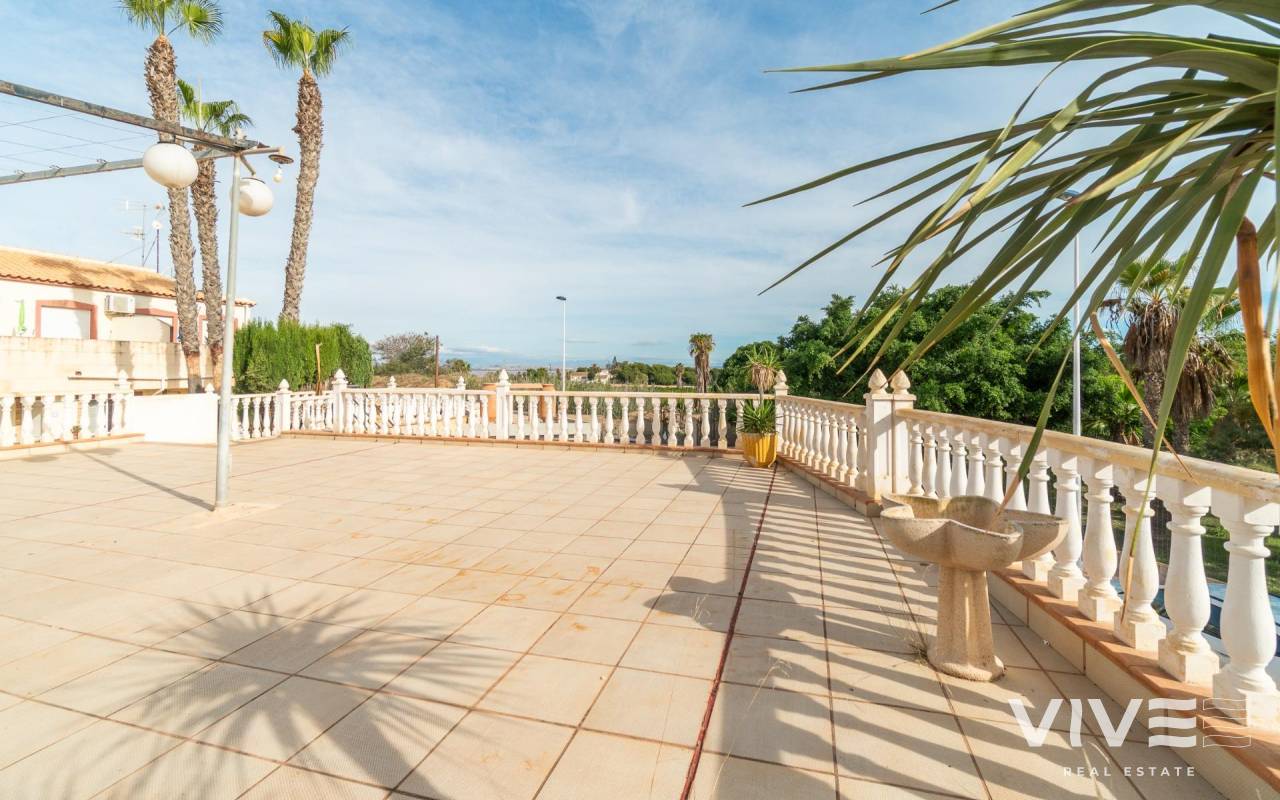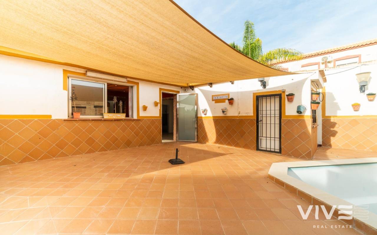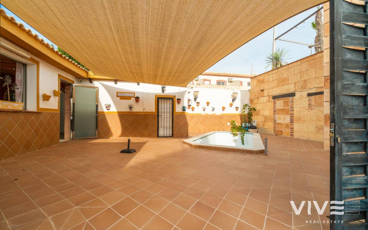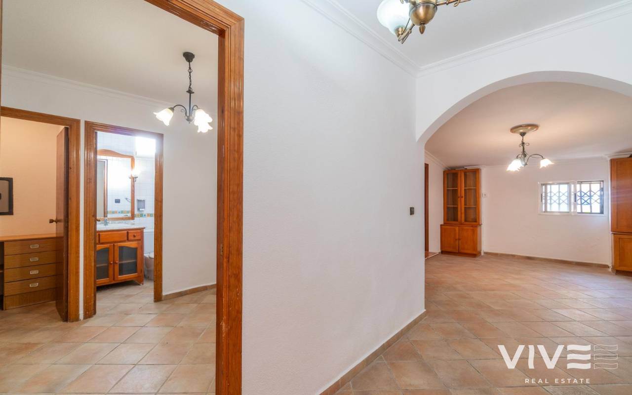 Es wird eine exklusive Immobilie mit großem Potenzial vorgestellt, die sich am Stadtrand von Torrevieja, in der prestigeträchtigen Urbanisation Los Altos, gegenüber dem Hotel Atlas, in einer Gegend mit hoher touristischer und residentialer Aktivität das ganze Jahr über befindet.. Das Haus ist perfekt für ganzjährige Nutzung, und die angrenzenden Gebäude bieten Potenzial, den Wohnraum zu erweitern oder sogar Einnahmen zu erzielen, indem die Nutzfläche erhöht wird, z. B. für Langzeitvermietung.. . Das Anwesen besteht aus zwei unabhängigen Immobilien auf einem Grundstück von etwa 440 m2 mit einer Gesamtbaufläche von ca. 310 m2, was zahlreiche Möglichkeiten für große Familien oder diejenigen bietet, die zusätzlichen Platz für Gäste, Vermietung oder private Nutzung suchen, wie oben erwähnt.. . Das Hauptgebäude im Erdgeschoss besticht durch Geräumigkeit, Charakter und Komfort. Es verfügt über 4 große Schlafzimmer und 2 Badezimmer, eines davon angepasst für Menschen mit Behinderung oder ältere Personen, ein großes Wohn-Esszimmer mit Kamin und eine separate Küche. Alle Räume sind hell und komfortabel, auf das Familienleben ausgelegt, wobei das Herzstück des Hauses ein großes Salon im kastilischen Stil mit traditionellem Kamin ist, das Wärme und Persönlichkeit verleiht.. Das Anwesen hat keinen Wasseranschluss. Beide Immobilien werden vollständig leer übergeben, ohne Möbel oder Geräte.. . Vom Hauptgebäude aus gelangt man direkt zum gemeinschaftlichen Innenhof, in dem sich der private Pool befindet, was eine perfekte Umgebung für Entspannung, Freizeit und Treffen im Freien schafft.. . Die zweite Immobilie ist ein unabhängiger Bereich, der früher intern über das zentrale Grundstück mit dem Hauptgebäude verbunden war, derzeit jedoch getrennt ist, sodass zwischen den beiden Bereichen vollständige Privatsphäre besteht oder eine einfache Wiederintegration möglich ist.. . Dieser zweite Bereich bietet vielfältige Nutzungsmöglichkeiten, sobald die erforderlichen Umnutzungsarbeiten durchgeführt wurden: Er kann in ein zweites Wohnhaus, Gästeapartment, zusätzlichen Familienbereich oder unabhängigen Bereich innerhalb derselben Immobilie umgewandelt werden. Außerdem verfügt er über eine Terrassen-Solarium über dieser zweiten Immobilie, ideal für den Sommer, zum Grillen oder als Chill-out-Bereich für Familie und Freunde.. . Lage. In einer strategischen Lage von Los Altos, umgeben von Wohnanlagen und sehr nah an allen Dienstleistungen, liegt die Immobilie nur wenige Minuten von Stränden, Einkaufszentren, Restaurants, Golfplätzen und den wichtigsten Verkehrsverbindungen entfernt.. . Eine einzigartige Immobilie mit Charakter und Vielseitigkeit, ideal für diejenigen, die Platz, Privatsphäre und eine privilegierte Lage an der Costa Blanca suchen, mit vielen Erweiterungsmöglichkeiten, um den Wert der bestehenden Immobilie zu steigern.. Preis: 449.000 €. Steuern und Kaufnebenkosten nicht inbegriffen (gemäß geltender Gesetzgebung). Eine Aufstellung der zusätzlichen Kosten wird vor der Reservierung zur Verfügung gestellt..