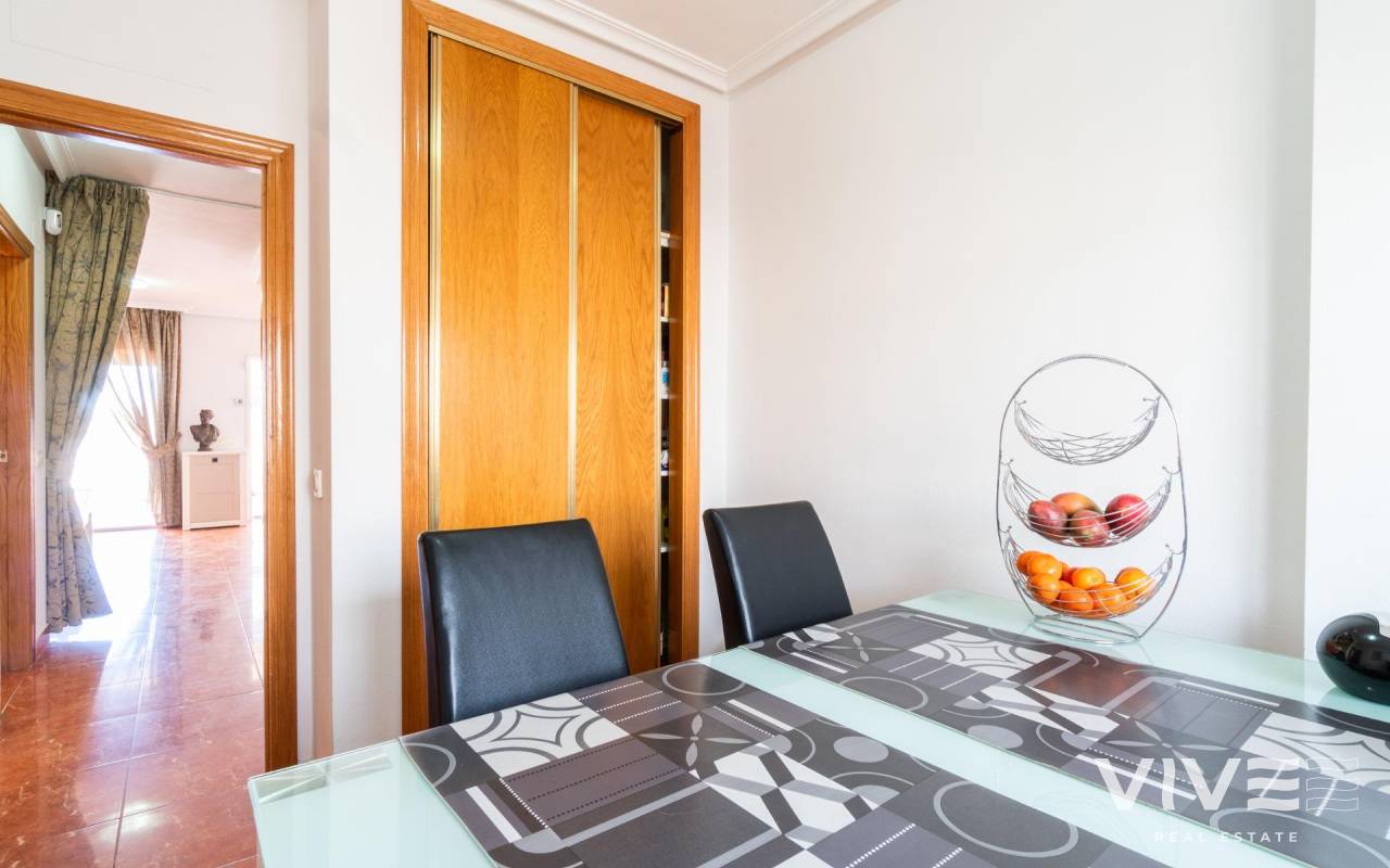 Wir präsentieren Ihnen dieses fantastische Reihenhaus mit 3 Schlafzimmern in der exklusiven Gegend von Villamartín, einem idealen Ort, um die Sonne und Ruhe der Costa Blanca zu genießen. Mit 104 m2 Wohnfläche und einem 130 m2 großen Grundstück bietet Ihnen diese Immobilie alles, was Sie für ein komfortables Leben in unmittelbarer Nähe zu allem, was Ihnen wichtig ist, benötigen.. . Im Erdgeschoss befinden sich ein geräumiges und helles Wohn-Esszimmer, eine voll ausgestattete separate Küche mit Zugang zur nach Westen ausgerichteten Terrasse, ein Schlafzimmer und ein Badezimmer mit Dusche.. . Im ersten Obergeschoss erwarten Sie zwei weitere Schlafzimmer, jeweils mit eigener Terrasse, sowie ein weiteres Badezimmer mit Badewanne.. . Im zweiten und obersten Obergeschoss befindet sich ein 15 m2 großes Solarium, auf dem Sie den ganzen Tag die Sonne genießen können.. . Genießen Sie Ihre eigene Oase der Ruhe mit einer großzügigen 30 m2 großen Terrasse, die sich perfekt zum Entspannen oder für gesellige Stunden eignet, und einem Solarium, um die Aussicht und das herrliche Wetter optimal zu nutzen. Die Ostausrichtung garantiert zudem den ganzen Tag über hervorragendes Tageslicht.. . Zu den besonderen Merkmalen dieser Immobilie gehören Klimaanlage, Einbauschränke, ein praktischer Hauswirtschaftsraum und eine geschlossene Terrasse im ersten Stock, die den Wohnraum erweitert und für mehr Komfort sorgt. Außerdem bietet sie einen großen und attraktiven Gemeinschaftspool – ideal, um warme Tage zu genießen und die Freizeit optimal zu nutzen.. . Die Lage ist hervorragend: Nur 3,7 km von den wunderschönen Stränden von La Zenia und Playa Flamenca entfernt und umgeben von allen wichtigen Annehmlichkeiten: Das Einkaufszentrum La Zenia Boulevard ist nur 3 Fahrminuten entfernt, und Supermärkte, Schulen, Krankenhäuser, Parks und Spielplätze befinden sich in unmittelbarer Nähe. Auch die Nähe zum Golfplatz Villamartín und die gute Anbindung an den öffentlichen Nahverkehr sind ein Pluspunkt.. . Dieses Haus wird komplett möbliert verkauft und beinhaltet einen Parkplatz auf dem Grundstück.. . Es ist die perfekte Wahl für alle, die ein funktionales, gut gelegenes Zuhause suchen, in das man sofort einziehen kann.. . Lassen Sie sich diese Gelegenheit nicht entgehen! Kontaktieren Sie uns für weitere Informationen und zur Vereinbarung Ihres Besuchs.. . Preis: 219.000 €. Steuern und Nebenkosten sind nicht enthalten (gemäß den geltenden Bestimmungen). Eine detaillierte Aufstellung der Nebenkosten erhalten Sie vor der Buchung.. . Bei einer Transaktion mit zwei Vermittlern betragen die Maklergebühren des Käufers 1,5 % des endgültigen Kaufpreises, mindestens jedoch 3.000 €, zuzüglich 21 % MwSt., sofern nicht ausdrücklich anders vereinbart. Diese Gebühren sind nicht im angegebenen Preis enthalten.
