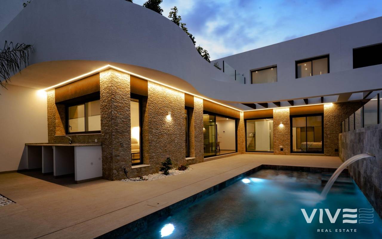 NEUBAU-VILLEN BEI ROJALES Neubauprojekt von 4 modernen Villen in Las Heredades, in der Nähe von Rojales. Villen bauen über 2 Etagen, hat 3 Schlafzimmer, 3 Bäder, offene Küche mit Wohnzimmer, Einbauschränke, Terrasse. Optional privaten Pool. Rojales ist ein schönes Dorf mit allen Dienstleistungen wie Supermärkte, Apotheken, Banken, Restaurants und Naturpark befindet sich ganz in der Nähe der Villen. Es gibt mehrere Golfplätze in der Nähe sowie Wasserparks in der Nähe Rojales und Torrevieja. Die Flughäfen von Alicante und Murcia sind 45 Autominuten entfernt.
