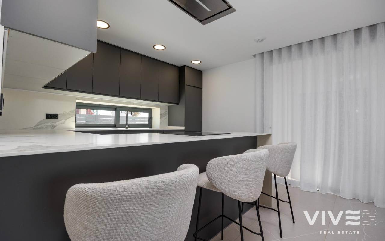 Neue Villen zum Verkauf in Torrevieja - 2 km vom Meer entfernt Entdecken Sie diese atemberaubenden neuen Villen in der begehrten Gegend von Torrevieja, nur 2 km von der Mittelmeerküste entfernt. Diese Häuser mit 3 Schlafzimmern und 2 Bädern bieten die perfekte Mischung aus Luxus, Komfort und Zweckmäßigkeit und sind für all diejenigen gedacht, die einen anspruchsvollen Lebensstil mit allen Vorteilen des Lebens an der Küste suchen. Geräumiges Design und hohe Qualität der Ausstattung Diese einstöckigen Villen wurden mit Bedacht für maximalen Komfort und einfaches Wohnen entworfen. Mit ihrem offenen Grundriss bieten sie reichlich Platz für Entspannung und Unterhaltung. Die Villen verfügen über eine hochwertige Ausstattung, darunter Aluminiumfenster mit Wärmeschutzverglasung, Climalit-Doppelverglasung und eine vorinstallierte Klimaanlage. Für zusätzlichen Komfort sorgen elektrische Rollläden, moderne Bäder mit Harzduschwannen und eingebauten schwarzen Armaturen sowie ein privater Parkplatz in der Tiefgarage mit zusätzlichem Stauraum. Privater Pool und Solarium mit atemberaubender Aussicht Treten Sie hinaus in Ihre private Oase, wo Sie den Luxus eines privaten Pools in Ihrem eigenen Garten genießen können. Von der Sonnenterrasse auf dem Dach haben Sie einen atemberaubenden Blick auf die Salzlagune La Mata und die Umgebung und können jeden Abend spektakuläre Sonnenuntergänge genießen. Die Immobilie befindet sich im höchstgelegenen Teil von Torrevieja, was sowohl Privatsphäre als auch beeindruckende Ausblicke garantiert. Exklusive Gemeinschaftseinrichtungen Die Anlage verfügt über mehrere Gemeinschaftseinrichtungen, wie z. B. eine Gartenlandschaft, einen Sportplatz und eine Boulebahn, die zum Entspannen und Erholen einladen. Ganz gleich, ob Sie Ihre Zeit allein genießen oder sich mit Ihren Nachbarn treffen möchten, diese Villa bietet die perfekte Umgebung für ein friedliches Leben und ein lebendiges Gemeinschaftsleben. Beste Lage in Torrevieja Diese Villen sind von wichtigen Dienstleistungen und Freizeitangeboten umgeben. Der Flughafen Alicante-Elche ist nur 45 Autominuten (43 km) entfernt, was internationale Reisen bequem macht. Zum Einkaufen und Essengehen ist das Habaneras Shopping Center nur 3 km entfernt und bietet eine Vielzahl von Einzelhandelsgeschäften, Restaurants und Unterhaltungsmöglichkeiten. Erleben Sie den mediterranen Lebensstil Torrevieja, an der Südküste Alicantes gelegen, bietet über 300 Sonnentage im Jahr und eine angenehme Jahresdurchschnittstemperatur von 20°C. Die Stadt ist bekannt für ihre schönen Strände, lebhaften Promenaden und die köstliche mediterrane Küche und damit der perfekte Ort für Entspannung und Abenteuer. Mit seinen familienfreundlichen Aktivitäten und seinem reichen kulturellen Erbe verspricht Torrevieja das ganze Jahr über einen erfüllten Lebensstil. Ihr Traumhaus erwartet Sie Verpassen Sie nicht die Chance, eine Luxusvilla in einer der begehrtesten Küstenstädte Spaniens zu besitzen. Ganz gleich, ob Sie auf der Suche nach einem dauerhaften Wohnsitz oder einem Urlaubsdomizil sind, diese exklusive Anlage bietet den idealen Rahmen, um das Beste des mediterranen Lebens zu erleben. Vereinbaren Sie noch heute einen Besichtigungstermin und machen Sie den ersten Schritt zur Verwirklichung Ihres Wohntraums!