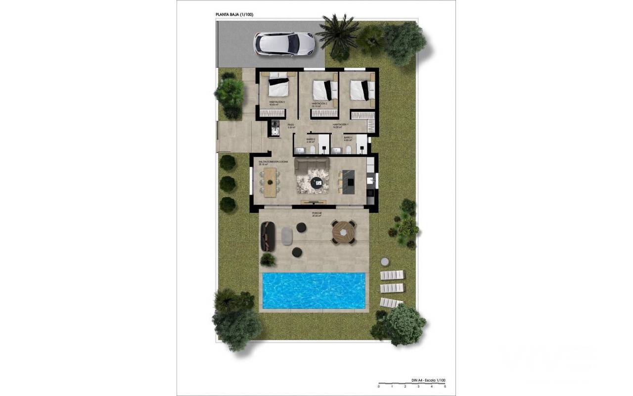 NEUE VILLEN MIT POOL IN HONDON DE LAS NIEVES Entdecken Sie die Eleganz und den Komfort dieser wunderschönen freistehenden Villen mit einer Fläche zwischen 108 und 128 m², die Ihnen einen außergewöhnlichen Lebensstil bieten und alle ebenerdig sind. Genießen Sie die Privatsphäre dieser Villa, in der Sie sich in Ihrem eigenen Garten entspannen, eine Oase der Ruhe schaffen oder sich in Ihrem privaten Pool erfrischen können, um die warmen Sommertage zu genießen. Das Anwesen ist in zwei große Bereiche unterteilt: Wohnbereich: Hier finden wir ein geräumiges Wohn-Esszimmer mit offener Küche (Küchenmöbel inklusive), das durch zwei große Fenster mit der großen modernen Veranda verbunden ist, die zum Gartenbereich und zum Pool führt. Als zusätzlicher Raum verfügt das Haus über einen strategisch günstig gelegenen Waschraum, der von jedem Punkt des Hauses aus leicht zu erreichen ist. Ruhebereich: In diesem Bereich befinden sich 3 Schlafzimmer. Das Hauptschlafzimmer verfügt über einen großen begehbaren Kleiderschrank und ein eigenes Bad. Es gibt auch ein zweites Badezimmer für die übrigen Schlafzimmer und den Rest des Hauses. In einer ruhigen Wohnlage gelegen, bietet Ihnen diese Villa die gewünschte Privatsphäre und Ruhe, während Sie gleichzeitig nur wenige Minuten von Dienstleistungen, Geschäften, Supermärkten und Restaurants entfernt sind. Es ist die perfekte Balance zwischen ruhiger Abgeschiedenheit und dem Komfort des modernen Lebens. In dieser Urbanisation in Hondón de las Nieves ist jeder Tag eine Gelegenheit, sich mit der Welt zu verbinden. Hondón de las Nieves ist eine Gemeinde in der Autonomen Gemeinschaft Valencia, Spanien. Sie liegt im Südwesten der Provinz Alicante, in der Region Vinalopó Medio. Die Strände und der Flughafen von Alicante sind nur 30 Autominuten entfernt.