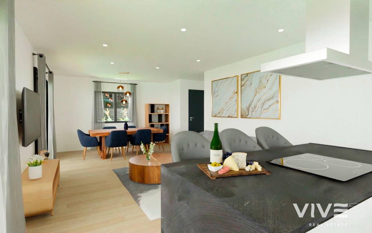 NEUE VILLEN MIT POOL IN HONDON DE LAS NIEVES Entdecken Sie die Eleganz und den Komfort dieser wunderschönen freistehenden Villen mit einer Fläche zwischen 108 und 128 m², die Ihnen einen außergewöhnlichen Lebensstil bieten und alle ebenerdig sind. Genießen Sie die Privatsphäre dieser Villa, in der Sie sich in Ihrem eigenen Garten entspannen, eine Oase der Ruhe schaffen oder sich in Ihrem privaten Pool erfrischen können, um die warmen Sommertage zu genießen. Das Anwesen ist in zwei große Bereiche unterteilt: Wohnbereich: Hier finden wir ein geräumiges Wohn-Esszimmer mit offener Küche (Küchenmöbel inklusive), das durch zwei große Fenster mit der großen modernen Veranda verbunden ist, die zum Gartenbereich und zum Pool führt. Als zusätzlicher Raum verfügt die Villa über einen Waschraum, der strategisch günstig in der Aufteilung des Hauses liegt und von jedem Punkt des Hauses aus leicht zu erreichen ist. Ruhebereich: In diesem Bereich befinden sich 3 Schlafzimmer. Das Hauptschlafzimmer verfügt über einen großen begehbaren Kleiderschrank und ein eigenes Bad. Es gibt auch ein zweites Badezimmer für die übrigen Schlafzimmer und den Rest des Hauses. In einer ruhigen Wohnlage gelegen, bietet Ihnen diese Villa die gewünschte Privatsphäre und Ruhe, während Sie gleichzeitig nur wenige Minuten von Dienstleistungen, Geschäften, Supermärkten und Restaurants entfernt sind. Es ist die perfekte Balance zwischen ruhiger Abgeschiedenheit und dem Komfort des modernen Lebens. In dieser Urbanisation in Hondón de las Nieves ist jeder Tag eine Gelegenheit, sich mit der Welt zu verbinden. Hondón de las Nieves ist eine Gemeinde in der Autonomen Gemeinschaft Valencia, Spanien. Sie liegt im Südwesten der Provinz Alicante, in der Region Vinalopó Medio. Die Strände und der Flughafen von Alicante sind nur 30 Autominuten entfernt.
