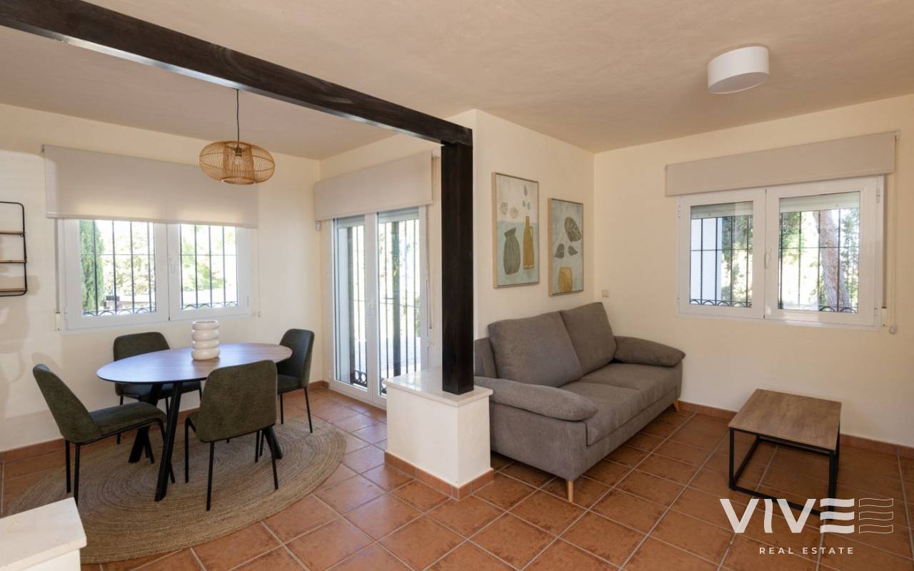SCHLÜSSELFERTIGE HALB-FREISTEHENDE VILLA IN FUENTE ALAMO, MURCIA Wohnanlage mit Reihenhäusern, freistehenden Villen und Doppelhaushälften in Fuente Álamo, Murcia. Es gibt sieben verschiedene Modelle von Häusern zur Auswahl, die für jeden Geschmack geeignet sind. Rustikales Design, kombiniert mit hochwertigen Materialien und einem Schwerpunkt auf komfortablem Wohnraum, bietet für jeden etwas. Die Bewohner dieser privaten Wohnanlage mit schönen, geräumigen Häusern können auch ihre eigenen Gemeinschaftsgärten und Swimmingpools genießen. Diese ungewöhnlich gestaltete Doppelhaushälfte verfügt über 2 Schlafzimmer und 1 Badezimmer, eine separate Küche, ein Wohnzimmer mit Terrassentüren, die auf die überdachte Veranda und die halb überdachte Dachterrasse führen. Ein privater Pool ist gegen Aufpreis möglich. Fuente Álamo de Murcia ist eine Stadt und Gemeinde in der Region Murcia, Südspanien. Sie befindet sich 22 km nordwestlich von Cartagena und 35 km südwestlich von Murcia. Die Stadt liegt im Becken des Mar Menor, umgeben von den Bergen Algarrobo, Los Gómez, Los Victorias und dem Carrascoy. Das Wasser aus diesen Bergen fließt in die Rambla de Fuente Álamo und von dort in das Mar Menor. Fuente Álamo liegt 30 Minuten vom Flughafen Murcia - Corvera entfernt.