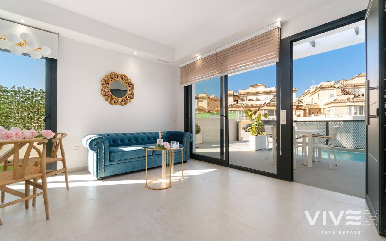 NEU GEBAUTE VILLEN IN LOS MONTESINOS Neubauprojekt in La Herrada (Los Montesinos), in einer privilegierten Lage in der Nähe der besten Strände von Guardamar und mit allen Annehmlichkeiten, die eine große Gemeinde wie Los Montesinos bietet. Dieses Projekt besteht aus 32 Villen, einige als Doppelhaushälften auf 2 Etagen und andere als unabhängige Villen auf einer Etage, die mit der besten Ausstattung geliefert werden, einschließlich Solarium, Badewannenabtrennung, Garten mit Kunstrasen von bester Qualität, dekorativen Gartenelementen und Vorinstallation für Sonnenkollektoren, Steckdose und Türmotor für Fahrzeuge. Villa hat 3 Schlafzimmer, 3 Bäder, offene Küche mit Wohnzimmer, Einbauschränke, Terrasse. Das typische Dorf Los Montesinos ist strategisch günstig gelegen, 10 Autominuten von den Stränden und dem Freizeitangebot von Torrevieja (mit allen Dienstleistungen einer Großstadt: Theater, 2 Krankenhäuser, internationale Schulen, etc.), mehrere Golfplätze und mit einfachem Zugang zur Autobahn A7, um den Flughafen Alicante in 20 Minuten zu erreichen. In der Urbanisation gibt es Supermärkte und Bars für den täglichen Bedarf, es ist eine ländliche und ruhige Umgebung. Das Klima dieser Gegend garantiert 300 Sonnentage im Jahr mit einer Durchschnittstemperatur von 20ºC, was zusammen mit der reichhaltigen Gastronomie und dem kulturellen und sportlichen Angebot der Umgebung diese Gegend zu einem idealen Ort macht, um ein zweites Feriendomizil zu errichten oder einen ruhigen Ort, um dauerhaft zu leben.