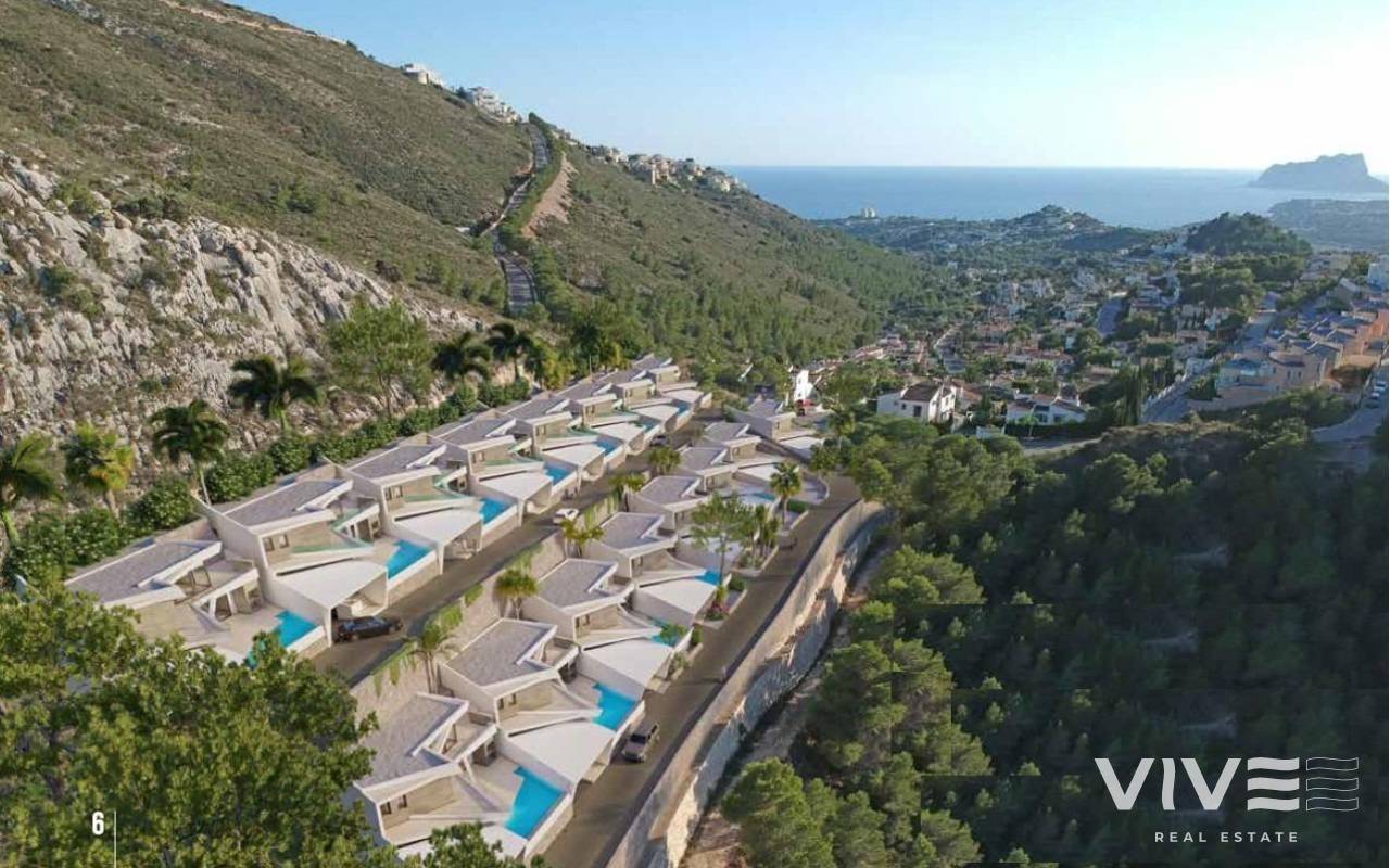 Luxuriöse Neubau-Villen mit Meerblick in Benitachell Exklusive Villen in Golden Valley, Poble Nou de Benitachell Entdecken Sie diese herausragende Neubau-Siedlung mit 16 unabhängigen Villen mit atemberaubendem Meerblick in der prestigeträchtigen Urbanisation Golden Valley in Poble Nou de Benitachell, Alicante. Diese privilegierte Gegend liegt zwischen den beliebten Küstenstädten Moraira und Javea und bietet eine ruhige Wohnumgebung inmitten der Natur, dennoch in der Nähe von Stränden, Restaurants und wichtigen Dienstleistungen. Die erhöhte Lage garantiert einen Panoramablick auf das Mittelmeer und einen ruhigen Lebensstil an der Costa Blanca. Moderne Architektur und elegantes Design Diese modernen Villen zeichnen sich durch avantgardistische Architektur in Kombination mit geräumigen, lichtdurchfluteten Innenräumen aus. Jedes Haus wurde sorgfältig entworfen, um Komfort, Privatsphäre und Funktionalität zu bieten und den Innen- und Außenbereich nahtlos miteinander zu verbinden. Klare Linien, große Fenster und offene Räume schaffen eine Atmosphäre von Licht, Raffinesse und mediterranem Charme. Großzügige Grundrisse mit privaten Gärten und Pools Jede Villa bietet ca. 290 m² Wohnfläche auf einem privaten Grundstück von über 300 m². Die Häuser verfügen über 3 oder 4 Schlafzimmer mit eigenem Bad sowie eine Gästetoilette. Die auf drei Ebenen verteilte Aufteilung umfasst ein Untergeschoss mit einer privaten Garage für zwei Autos und in einigen Einheiten zusätzlichen Platz für einen Fitnessraum, ein zusätzliches Schlafzimmer, eine Waschküche oder einen Abstellraum. Im Erdgeschoss befinden sich der offene Wohn- und Essbereich mit einer voll ausgestatteten Küche, direkter Zugang zur Terrasse und zum privaten Swimmingpool, ein Schlafzimmer mit eigenem Bad und eine Gästetoilette. Im Obergeschoss befinden sich zwei weitere Schlafzimmer mit eigenem Bad und eine große offene Terrasse, von der aus man den Meerblick genießen kann. Hochwertige Ausstattung und Energieeffizienz Alle Villen verfügen über einen privaten Swimmingpool, einen Grillbereich und eine Chill-out-Zone. Zur Ausstattung gehören elektrische Rollläden, eine gepanzerte Eingangstür, voll ausgestattete Küchen mit Bosch-Geräten, ein aerothermisches System für Warmwasser und eine vollständig installierte Klimaanlage. Die Anlage verfügt über die Energieeffizienzklasse A, die Effizienz, Komfort und einen reduzierten Energieverbrauch gewährleistet. Erstklassige Lage an der Costa Blanca Poble Nou de Benitachell ist ein charmantes Städtchen, das für seine authentische spanische Atmosphäre, seine wunderschöne Landschaft und die Nähe zu einigen der besten Strände der Costa Blanca bekannt ist. In der Umgebung gibt es Supermärkte, Restaurants, medizinische Versorgung und internationale Schulen. Wichtige Entfernungen: Strand von Moraira 6 km Strand von Javea 8 km Stadtzentrum von Benitachell 2 km La Sella Golf 12 km Marina de Moraira 7 km Flughafen Alicante 95 km Flughafen Valencia 120 km Ihr Traumhaus mit Meerblick Diese exklusiven Neubauvillen in Golden Valley verbinden Luxus, Design und eine privilegierte Lage mit atemberaubendem Meerblick. Kontaktieren Sie uns noch heute, um eine private Besichtigung zu vereinbaren und sich Ihr neues mediterranes Zuhause in Benitachell zu sichern.