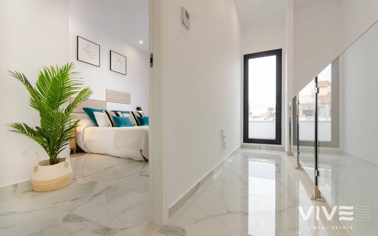NEU GEBAUTE VILLEN IN TORREVIEJA Neubau Villen in Torreta, Torrevieja. Schöne New Build Villen bauen über 2 Etagen mit 3 Schlafzimmern, 3 Bädern, offene Küche mit Wohnbereich, Einbauschränke, Terrasse und private Solarium in einigen Einheiten. Villa comming mit Garten mit privatem Pool und Parkplatz auf dem Grundstück. Torrevieja ist eine spanische Stadt in der Provinz Alicante, an der Costa Blanca. Sie ist bekannt für ihr typisch mediterranes Klima und ihre Küstenlinie. Entlang der Sandstrände gibt es Strandpromenaden mit Ferienanlagen. Das kleine Meeres- und Salzmuseum beherbergt Ausstellungen über die Fischerei- und Salzgeschichte der Stadt. Im Landesinneren befindet sich der Naturpark Lagunas de La Mata-Torrevieja mit Wanderwegen und zwei salzhaltigen Lagunen, von denen eine rosa und die andere grün ist. Der Flughafen Alicante ist 40 Minuten und der Flughafen Murcia etwa 1 Stunde entfernt.