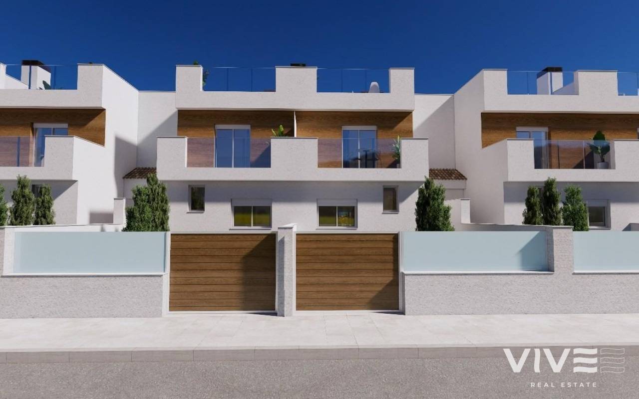 Neubau-Reihenhäuser in erster Linie am La Serena Golf in Los Alcázares Premium-Lage am Golfplatz und am Meer Entdecken Sie eine exklusive Wohnanlage mit 31 Neubau-Reihenhäusern in erster Linie am La Serena Golf in Los Alcázares, nur 600 m vom Mar Menor entfernt. Im Herzen der Costa Cálida gelegen, vereint dieser privilegierte Standort Golf, Strand und mediterranen Lebensstil. Mit allen Annehmlichkeiten in unmittelbarer Nähe und hervorragender Verkehrsanbindung ist dies der ideale Ort sowohl für den Urlaub als auch für das ganzjährige Wohnen. Moderne Häuser mit privatem Pool und Dachsolarium Jedes Haus bietet ein stilvolles, zeitgemäßes Design und helle Innenräume. Die Immobilien verteilen sich auf drei Ebenen plus Dachsolarium und bieten maximalen Komfort und Privatsphäre: Untergeschoss mit privater Garage für 2 Autos und Zugang zu einem Hof. Erdgeschoss mit offenem Wohn-/Essbereich und Küche mit Zugang zum Garten und privatem Pool, 1 Schlafzimmer und 1 Badezimmer Erster Stock mit 2 Schlafzimmern, 1 Badezimmer und 2 Terrassen Dachsolarium mit Sommerküche, ideal zum Entspannen und Genießen der Panoramablicke Ost- und Westausrichtung sorgen für hervorragendes Tageslicht und ein angenehmes Outdoor-Wohngefühl den ganzen Tag über. Hochwertige Ausstattung und Komfort Diese Häuser werden nach höchsten Standards gebaut und bieten Premium-Ausstattung, darunter: Privater Swimmingpool Tiefgarage für 2 Autos mit motorisiertem Tor Aerothermie-System für Warmwasser Vollständig installierte, kanalisierte Klimaanlage Möblierte und ausgestattete Küche Voll ausgestattete Badezimmer mit Möbeln, Spiegeln und Duschabtrennungen Sicherheitseingangstür Wohnen zwischen Meer und Fairway Umgeben von mediterraner Landschaft bietet diese exklusive Anlage ein ruhiges Wohnambiente direkt am Serena Golf, einem renommierten 18-Loch-Golfplatz, umgeben von Natur und ruhigen Seen. Die warmen, flachen Gewässer des Mar Menor eignen sich perfekt zum Schwimmen sowie für Wassersportarten wie Segeln, Stand-Up-Paddling und Kajakfahren – das ganze Jahr über. Entfernungen: Strand (Mar Menor): 600 m La Serena Golf: direkt am Komplex Zentrum von Los Alcázares: 2 km Cartagena: 22 km Stadt Murcia: 40 km Flughafen Murcia: 30 km Flughafen Alicante: 90 km Sichern Sie sich Ihren mediterranen Lebensstil Ganz gleich, ob Sie einen Hauptwohnsitz, ein Ferienhaus oder eine rentable Investitionsmöglichkeit suchen – diese Häuser bieten Luxus, Komfort und einen exklusiven Küsten-Lifestyle. Kontaktieren Sie uns noch heute, um einen Besichtigungstermin zu vereinbaren und Ihr neues Zuhause in Los Alcázares zu sichern.
