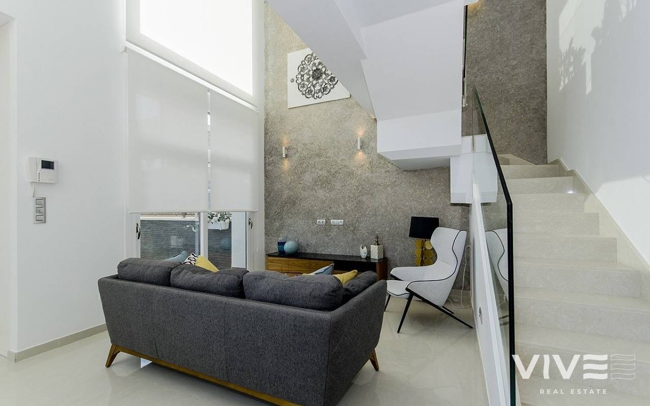 NEUBAU VON VILLEN IN LOS MONTESINOS Neubauvillen mit 3 Schlafzimmern und 3 Bädern, offener Küche mit Wohn-Esszimmer. Alle Villen haben eine Terrasse, einen privaten Swimmingpool, einen privaten Garten und eine Auffahrt. Gegen Aufpreis ist auch ein Untergeschoss möglich. Alle Villen sind aus hochwertigen Materialien und mit fortschrittlicher Technologie gebaut, um den Komfort und die Bequemlichkeit unserer Kunden zu gewährleisten. Der typische Ort Los Montesinos ist strategisch günstig gelegen, nur 10 Autominuten von den Stränden und dem Freizeitangebot von Torrevieja (mit allen Dienstleistungen einer Großstadt: Theater, 2 Krankenhäuser, internationale Schulen, usw.), von mehreren Golfplätzen und mit einfachem Zugang zur Autobahn A7, um den Flughafen Alicante in 20 Minuten zu erreichen. In der Urbanisation gibt es Supermärkte und Bars für den täglichen Bedarf, es ist eine ländliche und ruhige Umgebung. Das Klima in dieser Gegend garantiert 300 Sonnentage im Jahr mit einer Durchschnittstemperatur von 20ºC, was zusammen mit der reichhaltigen Gastronomie und den kulturellen und sportlichen Aktivitäten in der Umgebung diese Gegend zu einem idealen Ort macht, um einen Zweitwohnsitz für den Urlaub oder einen ruhigen Ort zum dauerhaften Leben einzurichten.