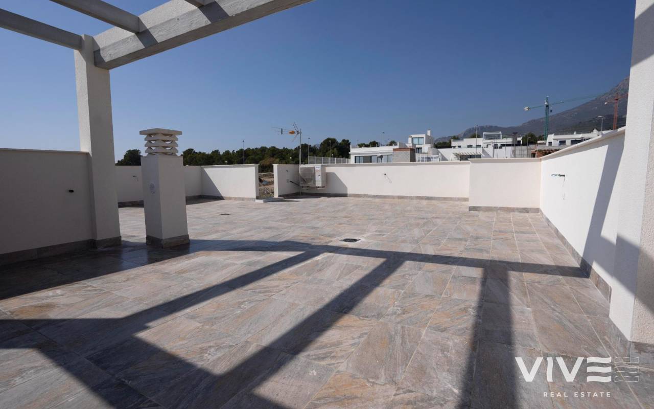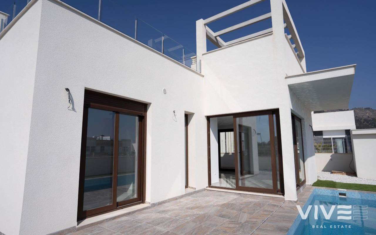 NEUBAU VILLEN IN POLOP !!! Diese Villa wurde entworfen, um eine VILLA mit großen Grundstücken von 420 bis 480 m2 auf 120 m2 Wohnfläche zu genießen. Der Preis beinhaltet: - Unabhängiges Grundstück - Geschlossener Perimeterbereich - Privater Pool - Parkplatz mit motorisiertem Zugang. - Fertiger Garten mit Kies und Zierpflanzen - Grill Die VILLA ist auf zwei Etagen verteilt - Erdgeschoss mit offener Küche, Wohnzimmer, zwei Schlafzimmern und einem Badezimmer. - Erster Stock mit Hauptschlafzimmer, Badezimmer en suite und Sonnenterrasse. Polop ist eine typisch spanische Stadt, 8 km von Benidorm und seinen Stränden und 4 km von La Nucía entfernt, die als Sportstadt gilt. Der Berg Ponoig hinter diesen Häusern schafft nicht nur ein sehr günstiges Mikroklima in der Umgebung, sondern bietet Ihnen auch die Möglichkeit, schöne Bergausflüge zu unternehmen.
