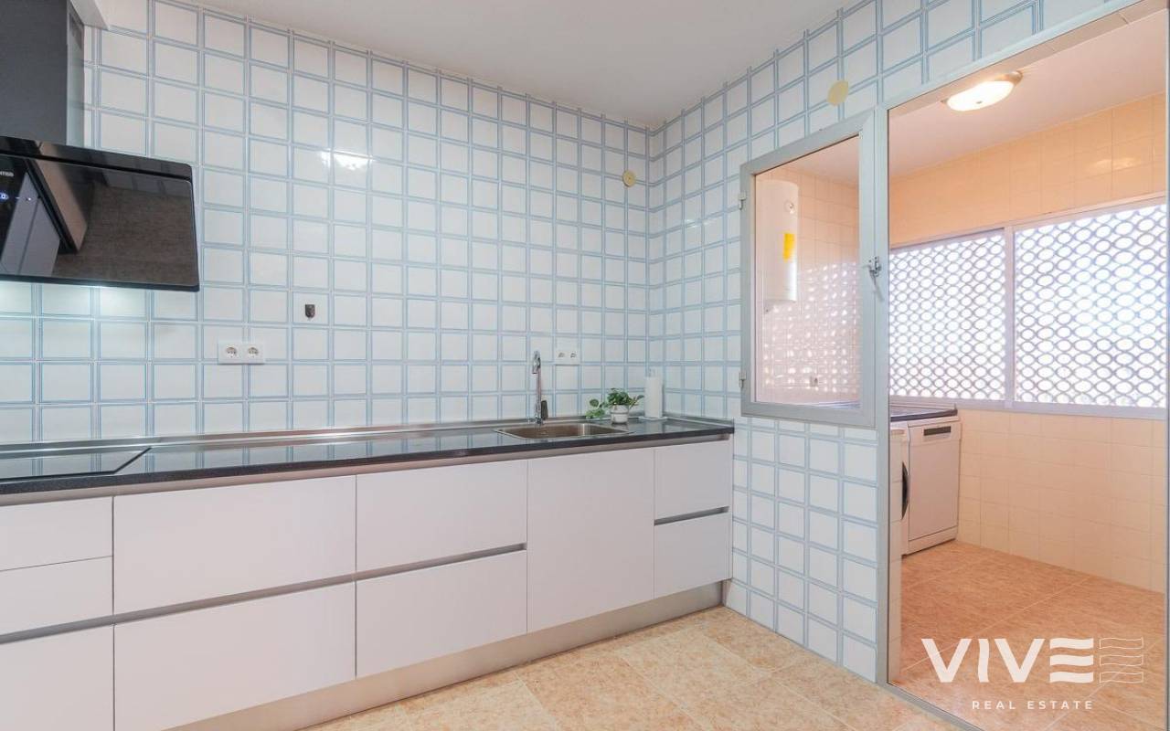 Entdecken Sie dieses charmante Apartment in Orihuela Costa, idyllisch gelegen in La Zenia. Es befindet sich nur 300 Meter von einem der schönsten Strände des Mittelmeers entfernt und ist nur wenige Gehminuten vom Einkaufszentrum Zenia Boulevard mit seinen Geschäften, einer Apotheke, Bars und Restaurants entfernt.. . Die Wohnung liegt in einem Apartmentgebäude mit Gemeinschaftspool und Gartenanlage. Ein Parkplatz im Gemeinschaftsbereich sowie eine private, abgeschlossene Garage/ein Abstellraum im Untergeschoss gehören ebenfalls dazu. Dies ist besonders in den Sommermonaten von Vorteil, wenn die Parkplatzsuche schwieriger und die Lage voller ist. So können Sie Ihr Fahrzeug bequem parken und haben in Ihrer privaten Garage Platz für Auto, Koffer, Fahrräder und andere persönliche Gegenstände.. . Dieses Refugium, ideal zum ganzjährigen Wohnen oder für Ferien, ist nach Süd-Südwesten ausgerichtet und verfügt über eine verglaste Terrasse mit Morgensonne und eine weitere mit Nachmittagssonne. Im Winter können Sie diese als Solarium nutzen, und die Wärme der verglasten Außenbereiche sorgt für ein angenehmes Raumklima im restlichen Haus. Im Sommer lassen sich die Glaspaneele der Anbauten öffnen, um die Meeresbrise für optimale Belüftung ins Haus zu lassen.. . Das Haus selbst bietet drei komfortable Doppelzimmer, alle geräumig und mit Einbauschränken ausgestattet, sowie zwei Badezimmer mit Dusche für mehr Komfort und barrierefreien Zugang.. . Die neu renovierte und voll ausgestattete Küche lädt zu kulinarischen Abenteuern ein und verfügt über einen separaten, geschlossenen Hauswirtschaftsraum, in dem Sie die Waschmaschine benutzen können, ohne die anderen Bewohner zu stören. All dies öffnet sich zu einem großen Wohn-Esszimmer neben der bereits erwähnten, geräumigen und hellen Hauptterrasse mit Glasfront.. . Die weißen PVC-Fenster mit Doppelverglasung sorgen für Komfort sowie Wärme- und Schalldämmung und ermöglichen Ihnen so, das Haus das ganze Jahr über unbeschwert zu genießen.. . Dieses charmante Apartment verfügt über eine Klimaanlage in den Schlafzimmern für einen angenehmen Schlaf an warmen Tagen, Einbauschränke für zusätzlichen Komfort und zwei Balkone, die sich perfekt eignen, um bei Sonnenuntergang ein Glas Wein zu genießen.. . In einer ruhigen Ecke gelegen, bietet dieses Apartment einen unverbaubaren Ausblick, der zum Entspannen einlädt. Nur wenige Schritte entfernt finden Sie alles, was Sie für einen gelungenen Urlaub brauchen: Busse, Geschäfte, Ärztezentren, Schulen, Golfplätze, Krankenhäuser und Parks. La Zenia ist ein lebendiger und pulsierender Ort, ideal für einen unvergesslichen Urlaub.. . Dieses Apartment ist die perfekte Wahl für alle, die einen festen Wohnsitz für ihre Familie oder ein Feriendomizil suchen, wo Komfort und Bequemlichkeit auf den Charme und die Schönheit des Mittelmeers treffen.. . Preis: 189.900 €. Steuern und Nebenkosten sind nicht enthalten (gemäß den geltenden Bestimmungen). Eine Aufschlüsselung der zusätzlichen Kosten erhalten Sie vor der Buchung.