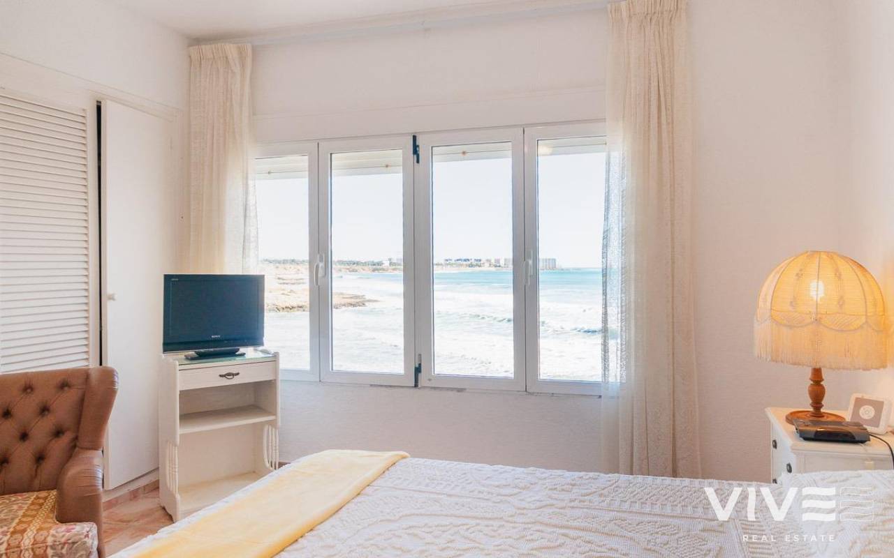 Entdecken Sie ein einzigartiges Juwel in erster Meereslinie in der prestigeträchtigen Gegend von Playa Flamenca, wo Immobilien aufgrund der privilegierten Lage an der Steilküste nur selten auf den Markt kommen.. . Dieses charmante Reihenhaus mit 90 m2 bebauter Fläche bietet einen unvergleichlichen Lebensstil am Mittelmeer. Im Erdgeschoss befindet sich ein großzügiges, lichtdurchflutetes Wohnzimmer mit einem großen Frontfenster und direktem Zugang zum Garten, von dem aus Sie den freien Blick und das beruhigende Rauschen des Meeres genießen können. Die Küche ist separat, funktional und ideal für den Alltag. Am Eingang befindet sich zudem ein gemütlicher privater Garten.. . Im Obergeschoss befinden sich zwei geräumige Doppelzimmer. Das Hauptschlafzimmer ist etwas ganz Besonderes: Genießen Sie den Meerblick direkt vom Bett aus. Diese Etage verfügt außerdem über ein komplett ausgestattetes Badezimmer.. . Die Immobilie gehört zu einer exklusiven Wohnanlage mit Gemeinschaftspool, ideal, um das mediterrane Klima das ganze Jahr über zu genießen. In dieser sehr gefragten Lage, in der Immobilien selten verfügbar sind, stellt dieses Haus eine einmalige Gelegenheit dar – sowohl als Hauptwohnsitz als auch als Investition.. . Hier zu leben bedeutet, einen Lebensstil direkt am Meer in einer der begehrtesten Lagen von Orihuela Costa zu genießen.. . Eine außergewöhnliche Immobilie, bei der das Meer Teil Ihres Zuhauses wird.. . Preis: 390.000 €. Steuern und Kaufnebenkosten nicht enthalten (gemäß geltender Vorschriften). Eine detaillierte Aufstellung der zusätzlichen Kosten wird vor der Reservierung bereitgestellt.