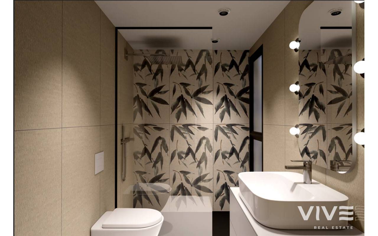 Dieses Penthouse verfügt über eine optimal aufgeteilte Innenfläche von 54,74², die großzügige, helle und funktionale Räume bietet. Ergänzt wird sie durch eine private Terrasse von 24,07 m² – ideal für Mahlzeiten im Freien, eine Chill-out-Zone oder einfach zum Genießen des mediterranen Klimas.