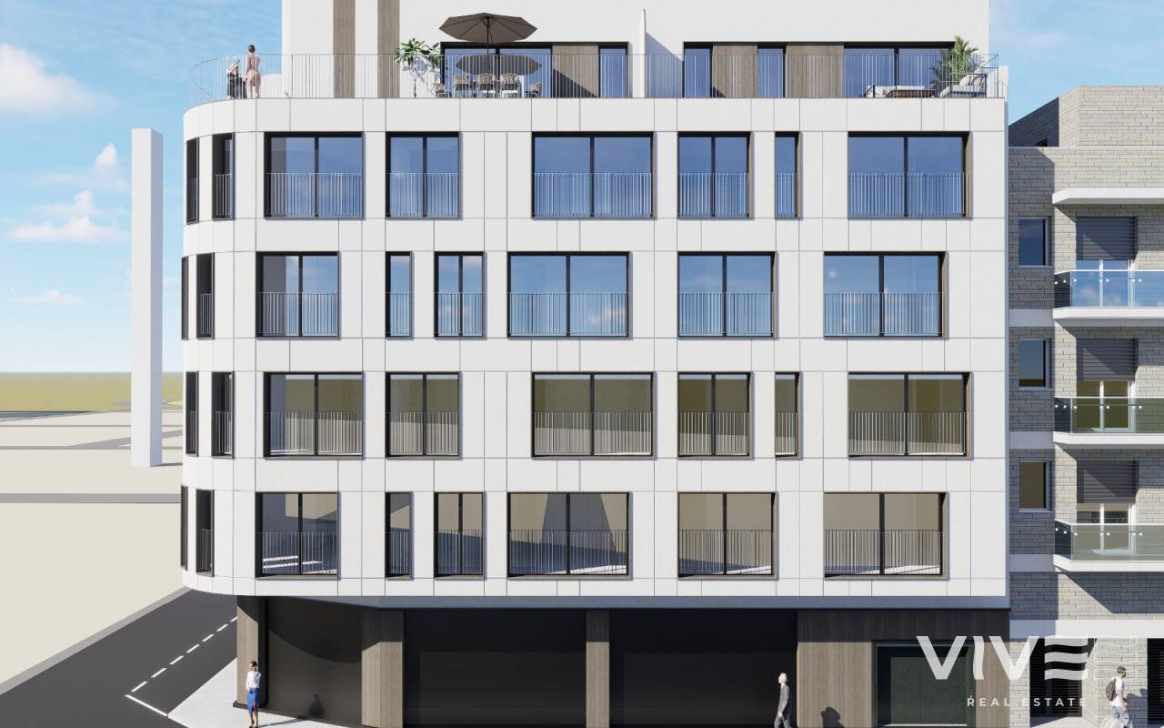 Das Gebäude verfügt über gemeinschaftliche Bereiche, die darauf ausgelegt sind, das mediterrane Klima das ganze Jahr über zu genießen. Besonders hervorzuheben ist der Gemeinschaftspool auf der Dachterrasse mit Solariumbereich und Ruhezone – perfekt zur Entspannung, ohne das Wohngebäude verlassen zu müssen.