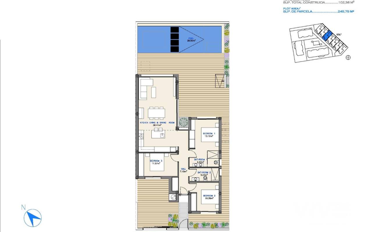 Neubauwohnungen und Villen direkt am Golfplatz in Los Alcázares an der Costa Cálida Exklusive Wohnanlage in Strand- und Golfnähe Entdecken Sie diese außergewöhnliche Neubauwohnanlage in Los Alcázares, einem der begehrtesten Küstenorte an der Costa Cálida. Dank ihrer idealen Lage, nur 1,2 km von den Stränden des Mar Menor entfernt und direkt am Golfplatz La Serena, bietet diese Anlage eine perfekte Mischung aus modernem Wohnen, Küstenflair und ruhiger Golfumgebung. Los Alcázares ist ein charmantes Küstenstädtchen, das für seine entspannte Atmosphäre, die lange Promenade, die lokalen Restaurants und das ganzjährige Angebot bekannt ist, was es sowohl für den dauerhaften Wohnsitz als auch für Ferienhäuser ideal macht. Moderne Apartments und exklusive Villen Die Anlage besteht aus 37 zeitgemäßen Apartments, die sich auf drei Flachbauten verteilen und um einen schönen Gemeinschaftspool sowie landschaftlich gestaltete Gärten herum angeordnet sind. Käufer können zwischen Apartments mit 2, 3 oder 4 Schlafzimmern wählen, darunter Erdgeschosswohnungen mit Terrassen, Wohnungen in den mittleren Etagen und Penthäuser mit privaten Sonnenterrassen, die einen freien Blick auf den Golfplatz und das Meer bieten. Darüber hinaus umfasst das Projekt 7 exklusive einstöckige Villen mit 3 Schlafzimmern, die jeweils über einen privaten Pool verfügen und sich in erstklassiger Lage direkt am Golfplatz befinden. Hochwertige Ausstattung und Komfort Alle Immobilien sind mit modernen Oberflächen ausgestattet und auf Komfort und Funktionalität ausgelegt. Jede Wohnung verfügt über voll ausgestattete Badezimmer mit Möbeln und Duschabtrennungen, Vorinstallationen für eine Kanalklimaanlage sowie motorisierte Rollläden in den Schlafzimmern. Die Wohnungen verfügen zudem über einen privaten Parkplatz und einen Abstellraum in der Tiefgarage, die mit dem Aufzug erreichbar ist und so Komfort und Sicherheit gewährleistet. Erstklassige Lage in Los Alcázares Dieser Wohnkomplex genießt eine strategisch günstige Lage mit guter Anbindung an alle Annehmlichkeiten, Golfplätze und wichtige Verkehrsverbindungen. Das Stadtzentrum ist zu Fuß erreichbar und bietet Supermärkte, Geschäfte, Restaurants und Freizeiteinrichtungen. Das Mar Menor ist bekannt für sein ruhiges und warmes Wasser, das sich perfekt zum Schwimmen, Segeln und für Wassersport eignet, während der Golfplatz La Serena Golf wegen seines einzigartigen Designs mit Wasserelementen auf dem gesamten Platz hoch geschätzt wird. Entfernungen zu wichtigen Sehenswürdigkeiten Strände am Mar Menor 1,2 km La Serena Golf direkt nebenan Roda Golf 4 km Cartagena 20 km Internationaler Flughafen Murcia 35 km Flughafen Alicante 95 km Ihr ideales Zuhause an der Costa Cálida Ob Sie nun einen ständigen Wohnsitz, einen Rückzugsort für den Urlaub oder eine kluge Investition suchen – diese Wohnanlage bietet eine unschlagbare Kombination aus Lage, Qualität und Lebensstil. Kontaktieren Sie uns noch heute, um weitere Informationen zu erhalten oder einen Besichtigungstermin zu vereinbaren und sich Ihr neues Zuhause in Los Alcázares zu sichern.