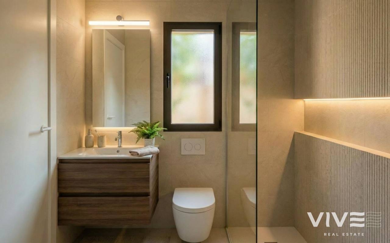 Neubauvillen im El Alba Mediterranean Resort in Torre Pacheco Modernes Wohnen in einem aufstrebenden Reiseziel Entdecken Sie diese exklusive Neubauanlage mit nur 6 freistehenden und Doppelhaushälften im El Alba Mediterranean Resort in Torre Pacheco, Murcia. Dieses aufstrebende Wohngebiet verbindet moderne Architektur, Freizeiteinrichtungen und einen entspannten mediterranen Lebensstil. Die Lage zwischen dem Golfclub Terrazas de la Torre und der Stadt Roldán bietet Ruhe, ohne dass die Nähe zu allen wichtigen Annehmlichkeiten wie Supermärkten, Restaurants, Bars und Banken beeinträchtigt wird. Moderne Villen mit privatem Außenbereich Diese modernen Villen sind einstöckig angelegt und verfügen über 2 Schlafzimmer und 2 Badezimmer, von denen eines en-suite ist. Jede Immobilie verfügt über einen offenen Küchen- und Wohnbereich, der so gestaltet ist, dass er möglichst viel Tageslicht hereinlässt und höchsten Komfort bietet. Eckgrundstücke verfügen über einen privaten Garten mit Swimmingpool und Parkplatz. Die Innenräume sind stilvoll und funktional gestaltet, wodurch sich diese Immobilien ideal als Dauerwohnsitz, Ferienhaus oder als Kapitalanlage eignen. Die Schlafzimmer sind mit Einbauschränken mit Schubladen ausgestattet, und die Badezimmer werden komplett mit Spiegelschränken und Duschwänden geliefert. Hochwertige Ausstattung und Verarbeitung Alle Villen sind nach hohen Standards gebaut und mit Materialien und Oberflächen von höchster Qualität ausgestattet. Die Küchen sind komplett eingerichtet und mit Geräten ausgestattet, während in den Küchen, Badezimmern und bei den Fliesen Porcelanosa-Oberflächen verwendet werden, die einen Hauch von Luxus verleihen. Zu den weiteren Ausstattungsmerkmalen gehören Außenfenster und -türen mit thermischer Trennung und Doppelverglasung, motorisierte Jalousien in den Schlafzimmern sowie die Vorinstallation für eine Kanal-Klimaanlage. Anlagen des Komplexes und lokale Annehmlichkeiten Das Alba Mediterranean Resort bietet ein hervorragendes Angebot an Gemeinschaftseinrichtungen für alle Altersgruppen. Die Bewohner können ein Clubhaus mit Restaurant und Chill-out-Bereich, einen Gemeinschaftspool, eine Bowlingbahn, Paddle-Tennisplätze und einen Kinderspielplatz nutzen. Derzeit entsteht innerhalb des Komplexes ein kleines Einkaufszentrum, das mit Geschäften und Dienstleistungen in unmittelbarer Nähe für noch mehr Komfort sorgen wird. Hervorragende Lage in der Nähe von Golfplätzen, Stränden und Flughäfen Der Komplex ist von mehreren preisgekrönten Golfplätzen umgeben, was ihn zu einer attraktiven Option für Golfbegeisterte macht. Die Strände des Mar Menor sind etwa 15 km entfernt und bieten ruhiges Wasser sowie ein breites Angebot an Wassersportarten. Der internationale Flughafen Murcia ist nur 20 km entfernt, während Cartagena etwa 30 km und die Stadt Murcia etwa 40 km entfernt sind. Der Flughafen Alicante ist ca. 90 km entfernt. Die gute Anbindung an das Autobahnnetz ermöglicht eine schnelle und bequeme Fortbewegung in der gesamten Region. Ihr neues Zuhause an der Costa Cálida Diese neu gebauten Villen im El Alba Mediterranean Resort bieten ein hervorragendes Preis-Leistungs-Verhältnis, ein modernes Design und eine strategisch günstige Lage in der Nähe von Golfplätzen, Stränden und Annehmlichkeiten. Kontaktieren Sie uns noch heute für weitere Informationen oder um einen Besichtigungstermin zu vereinbaren und sich Ihren Platz in dieser spannenden neuen Wohnanlage in Torre Pacheco zu sichern.